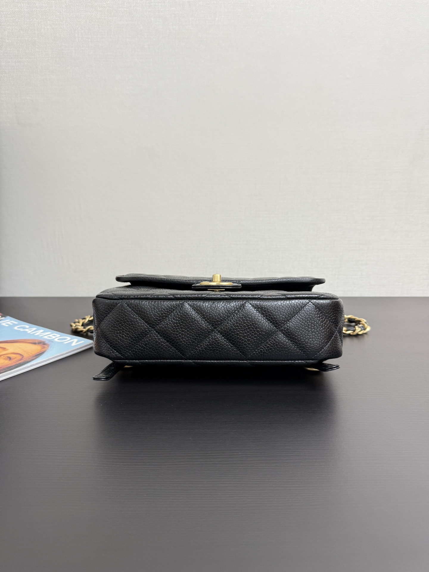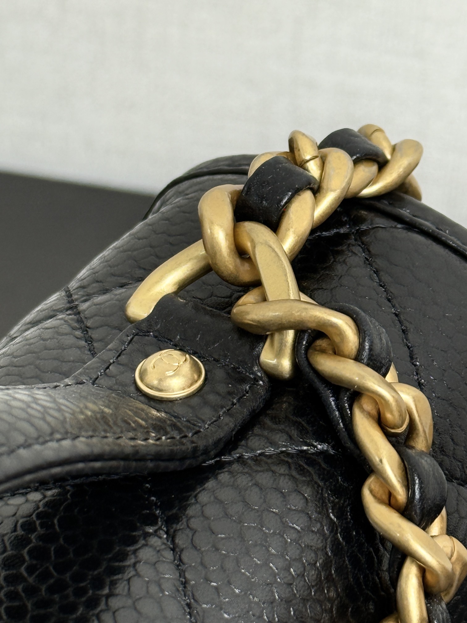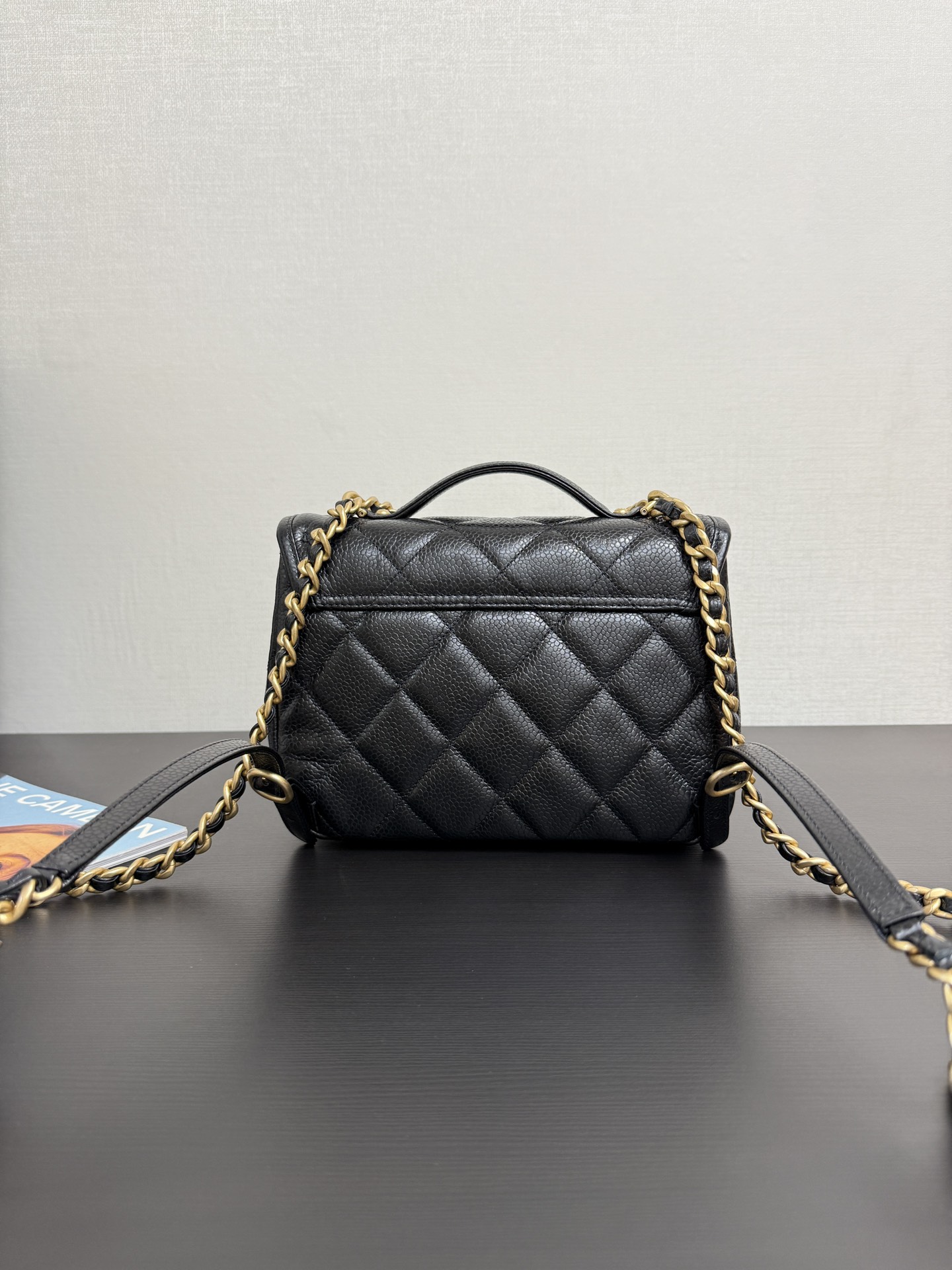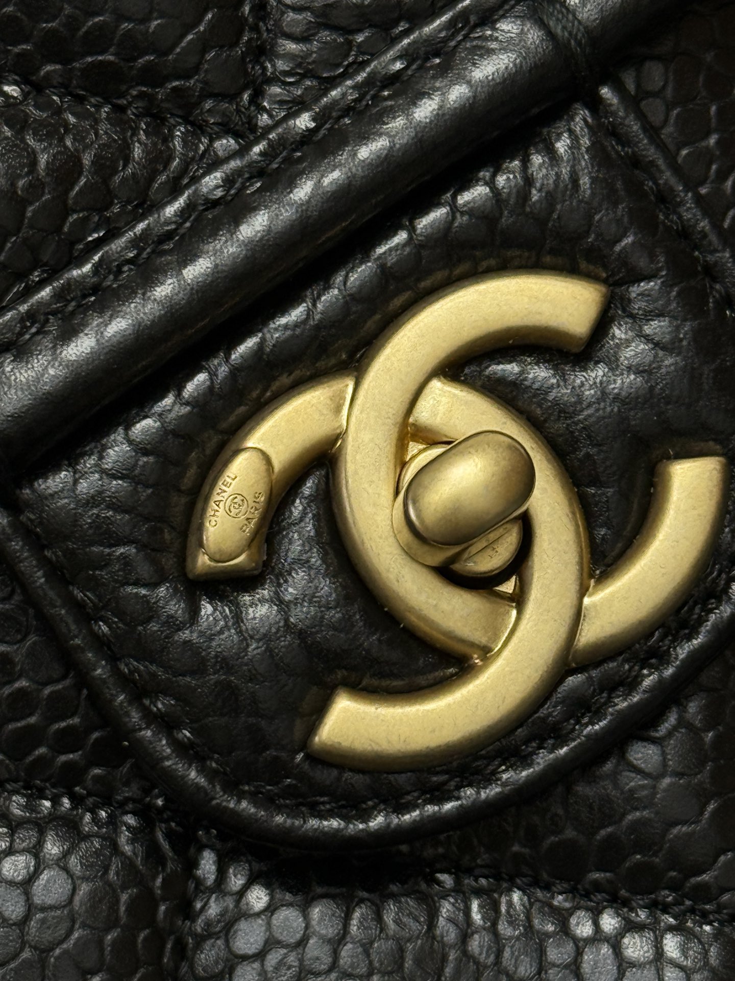 Backpack, Grained shiny calfskin & gold-tone metal,black