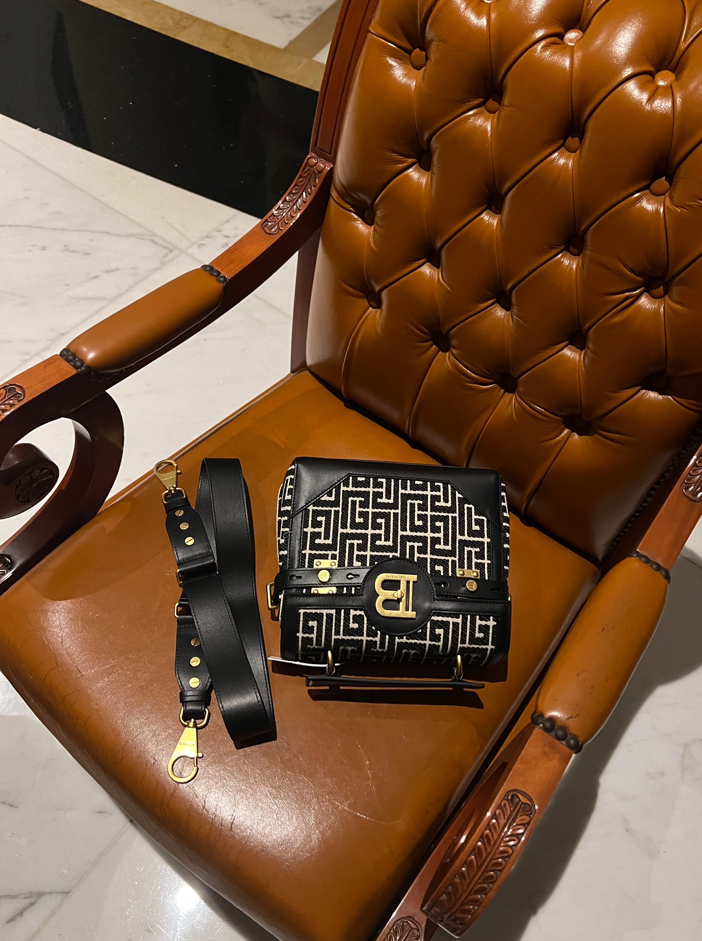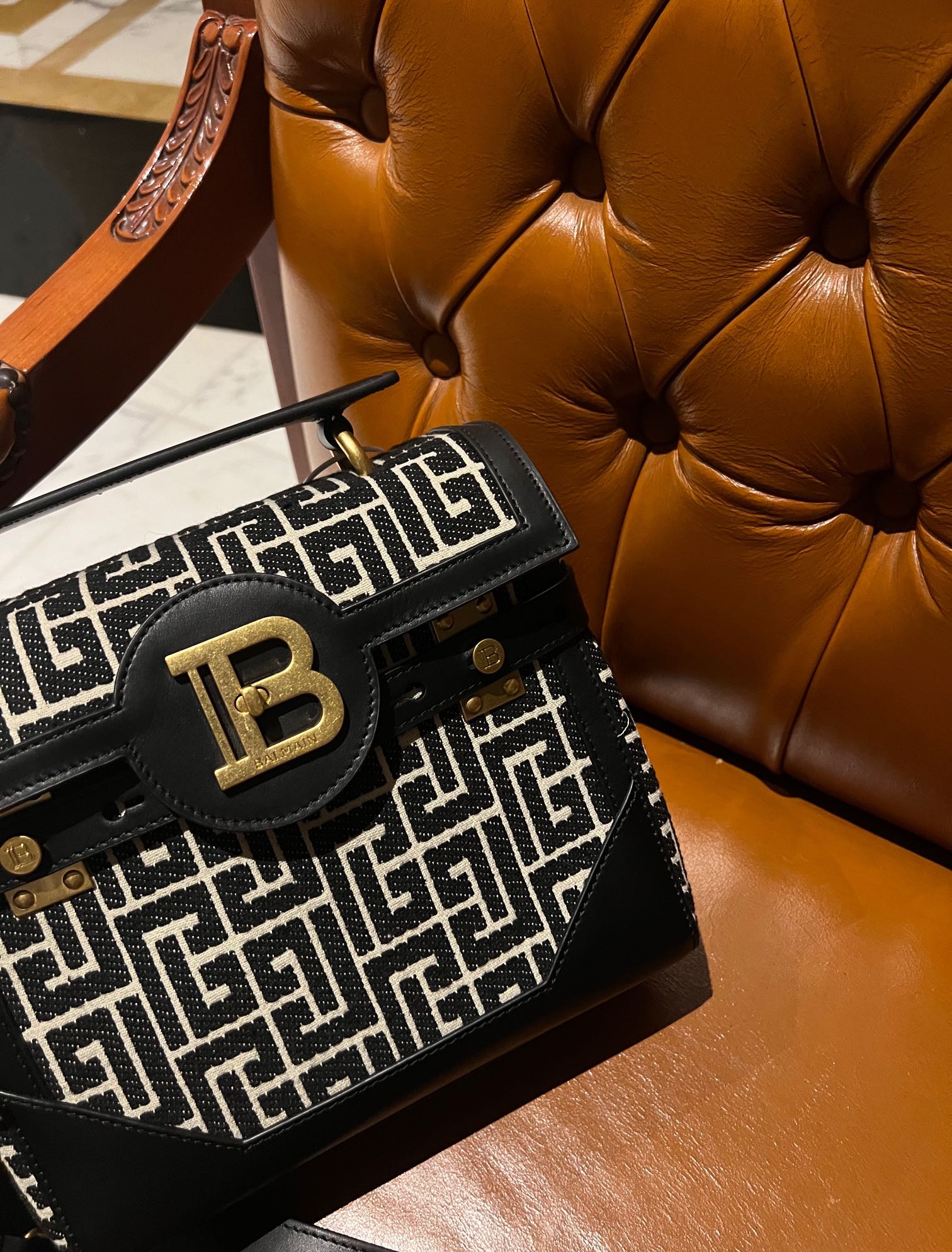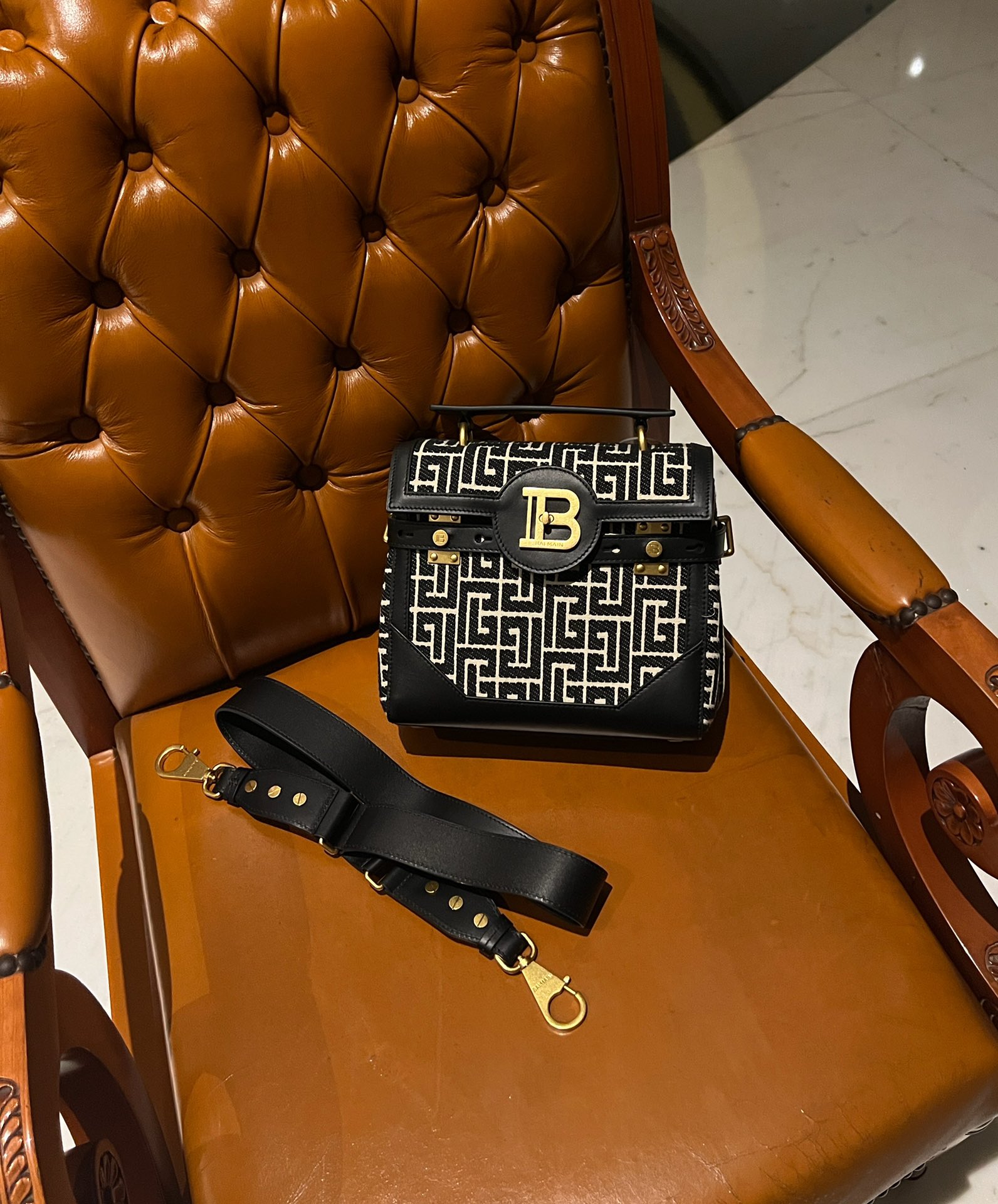Balmain B-Buzz 23 bag in jacquard and leather - Women | BALMAIN