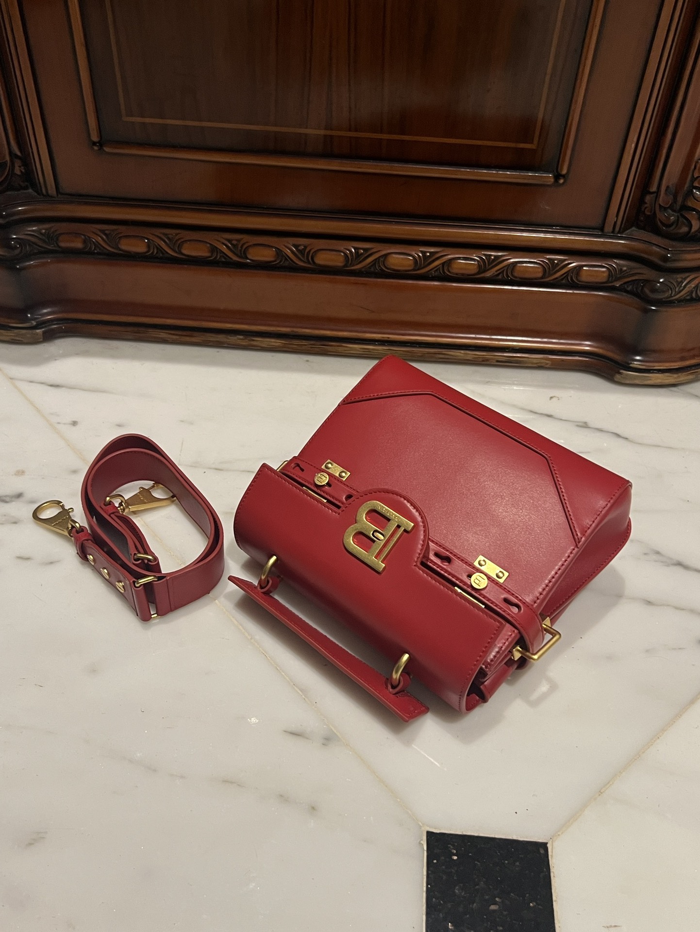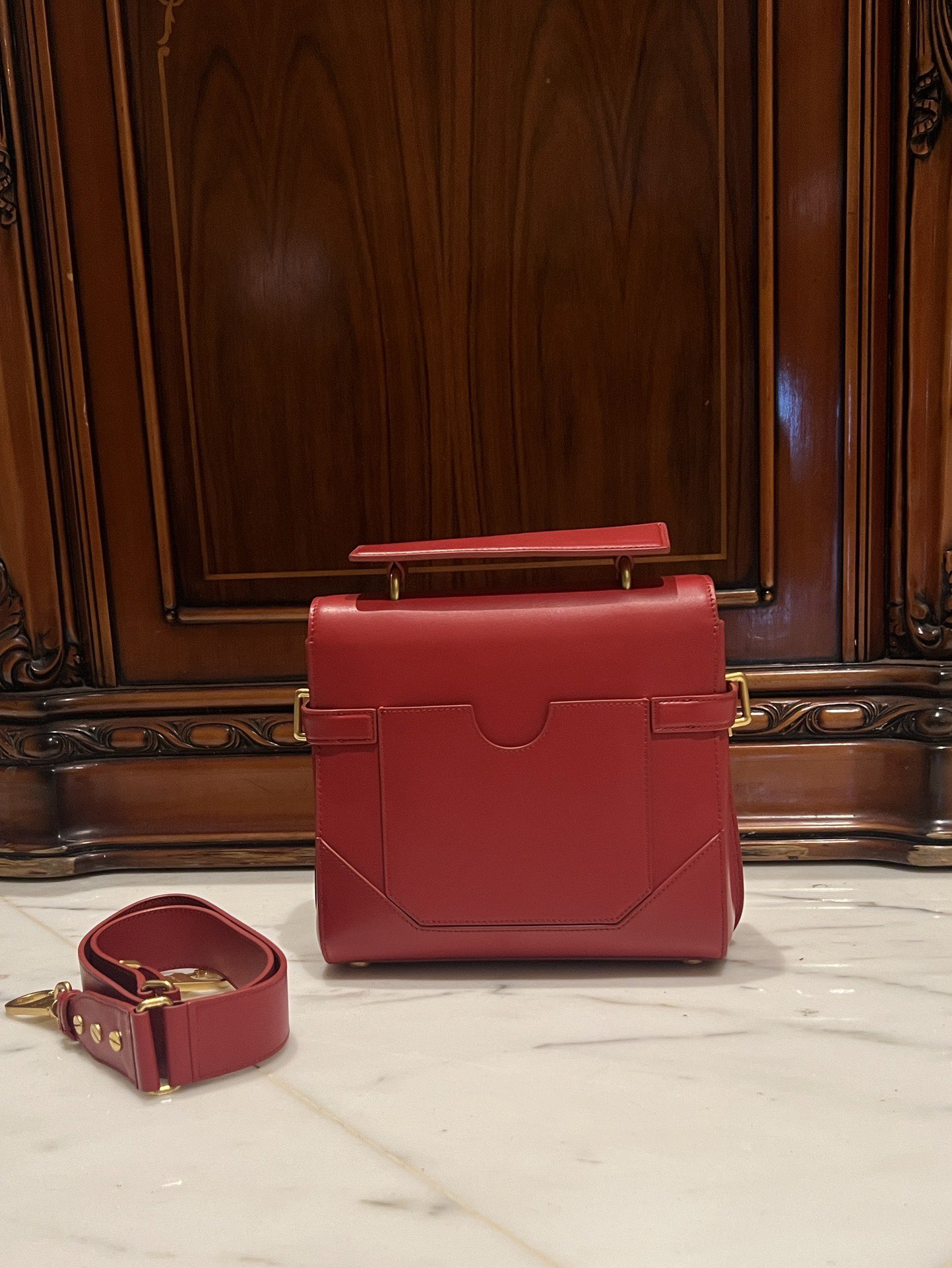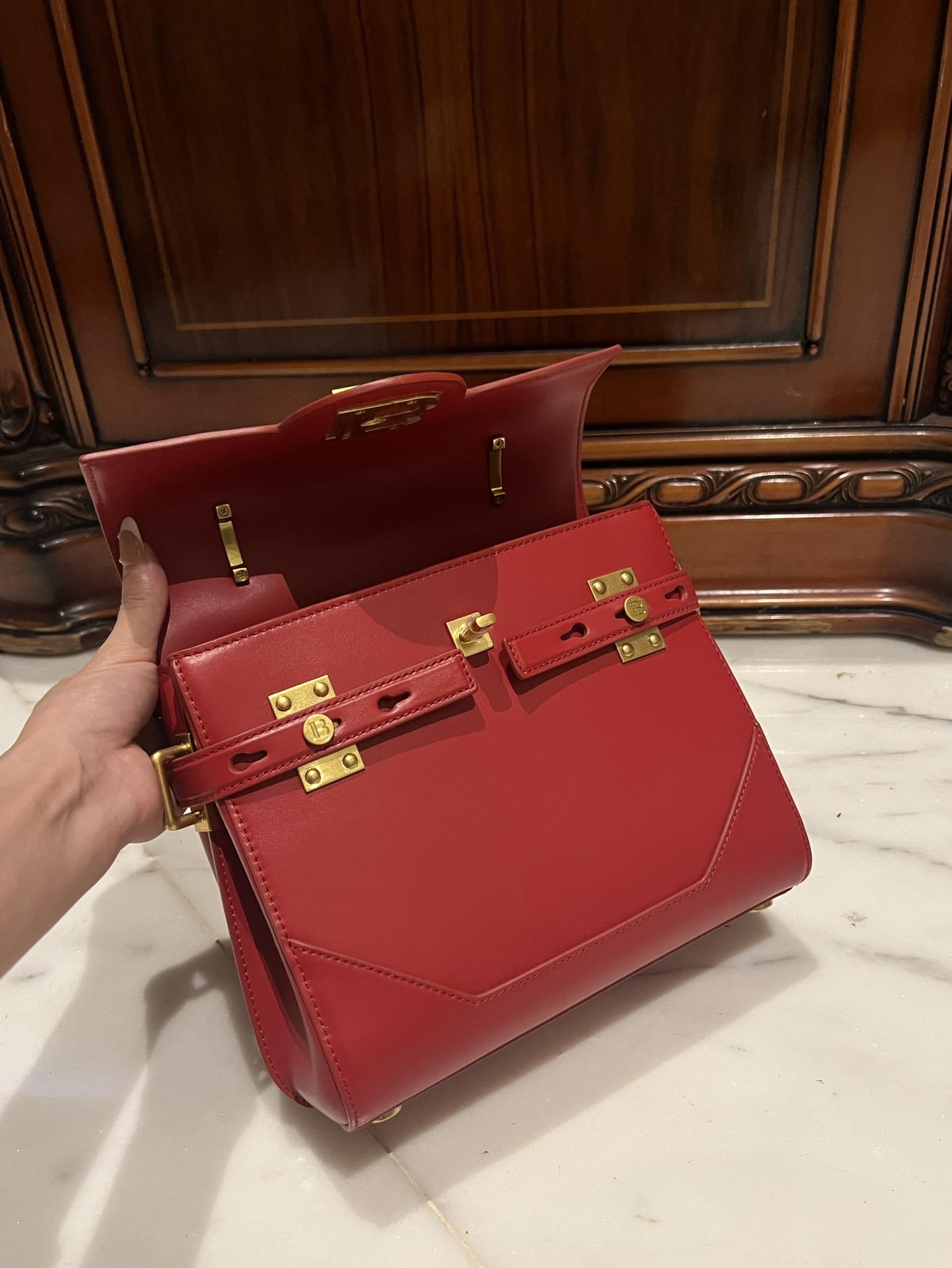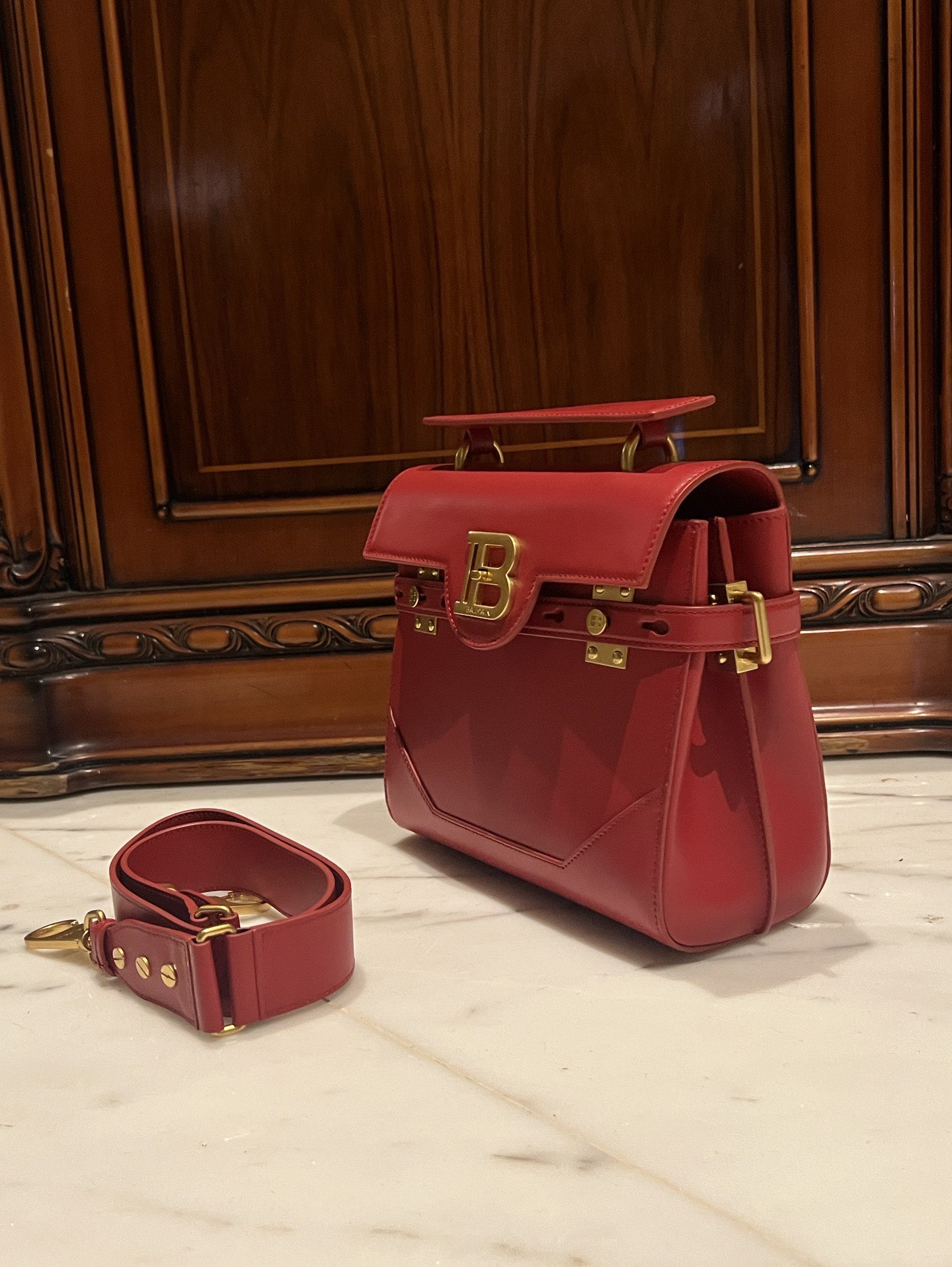 BALMAIN Bbuzz 23 Leather Shoulder Bag red Balmain BALMAIN 00279