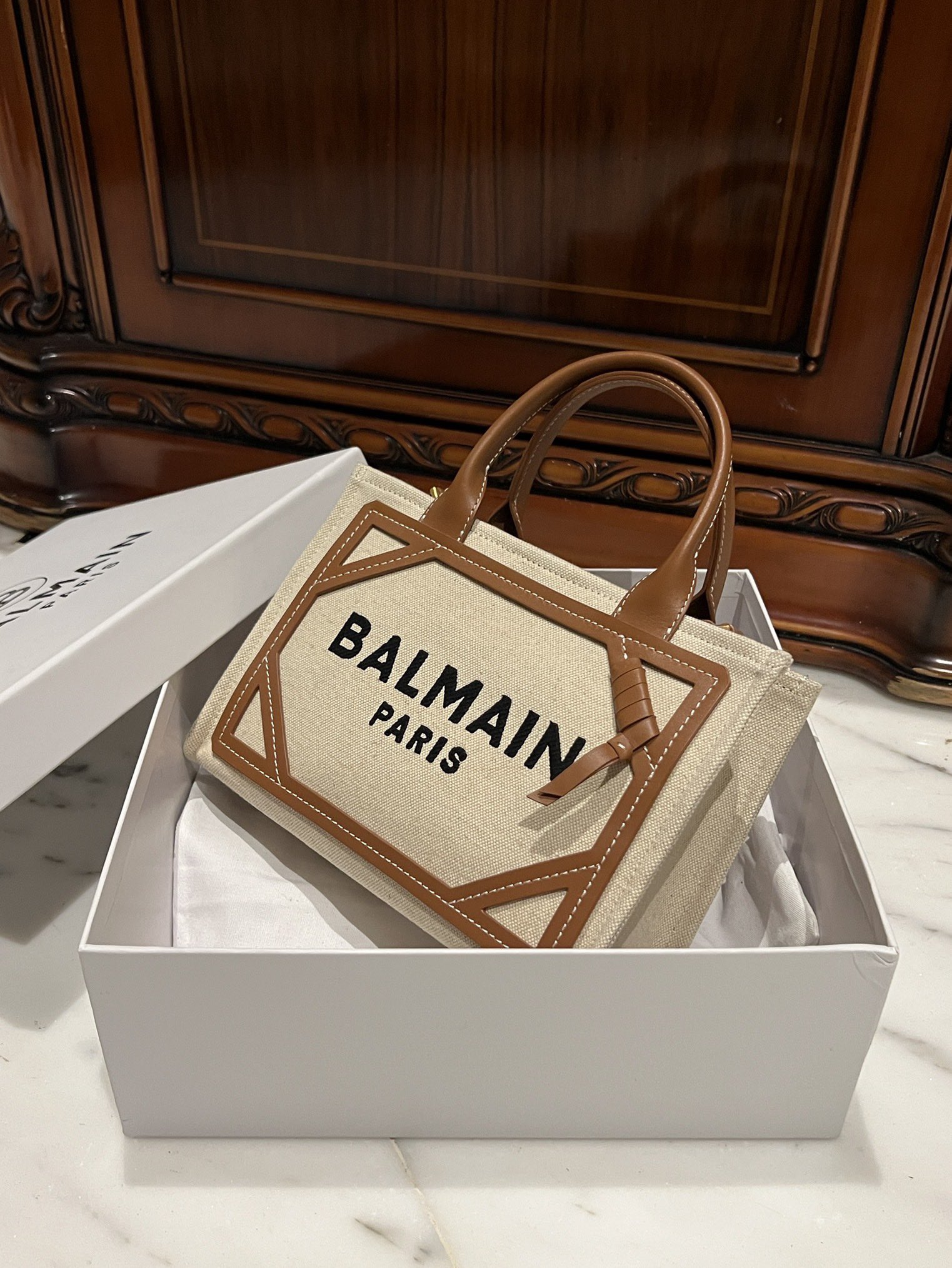 Balmain Mini B-Army Canvas Bag | Neutrals