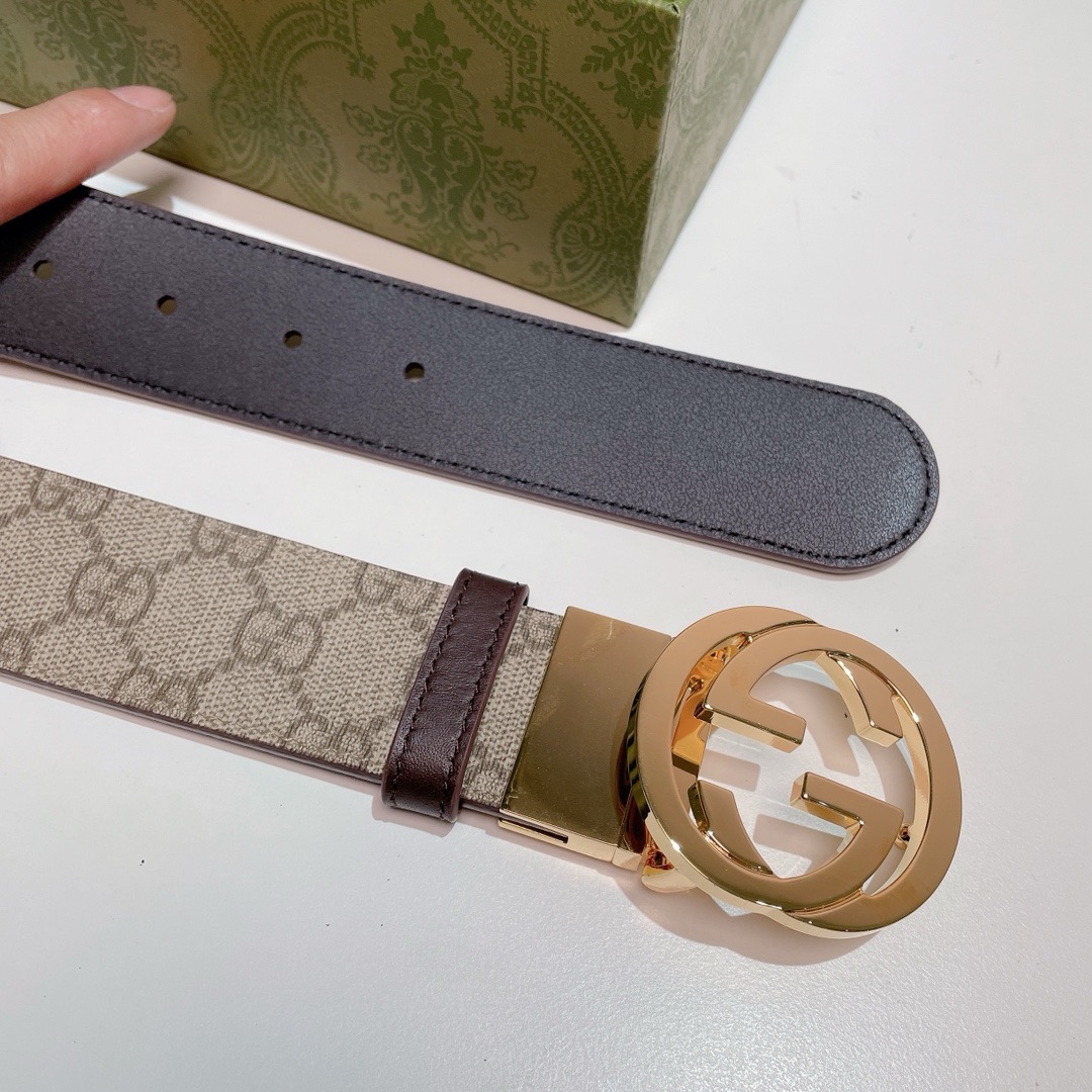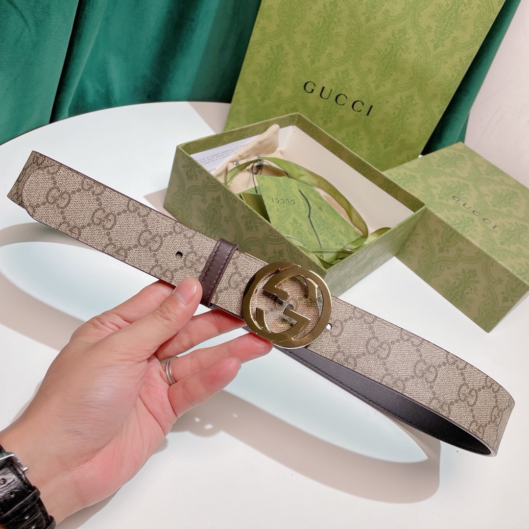 Gucci Black Guccissima Leather Gold Interlocking Buckle Belt