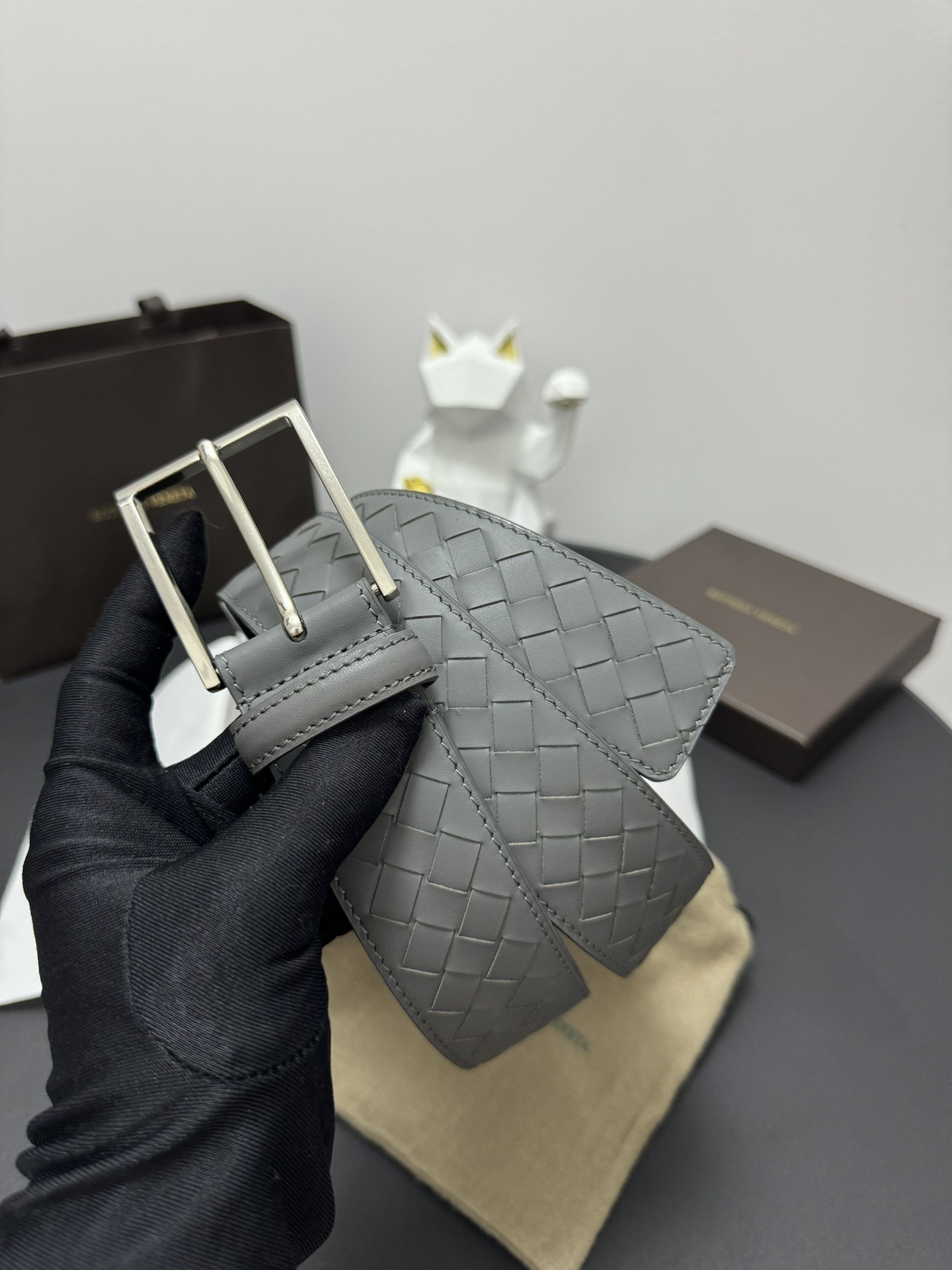 Bottega Veneta Premium Quality Woven Leather Belt - Black