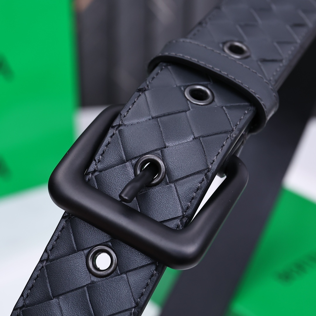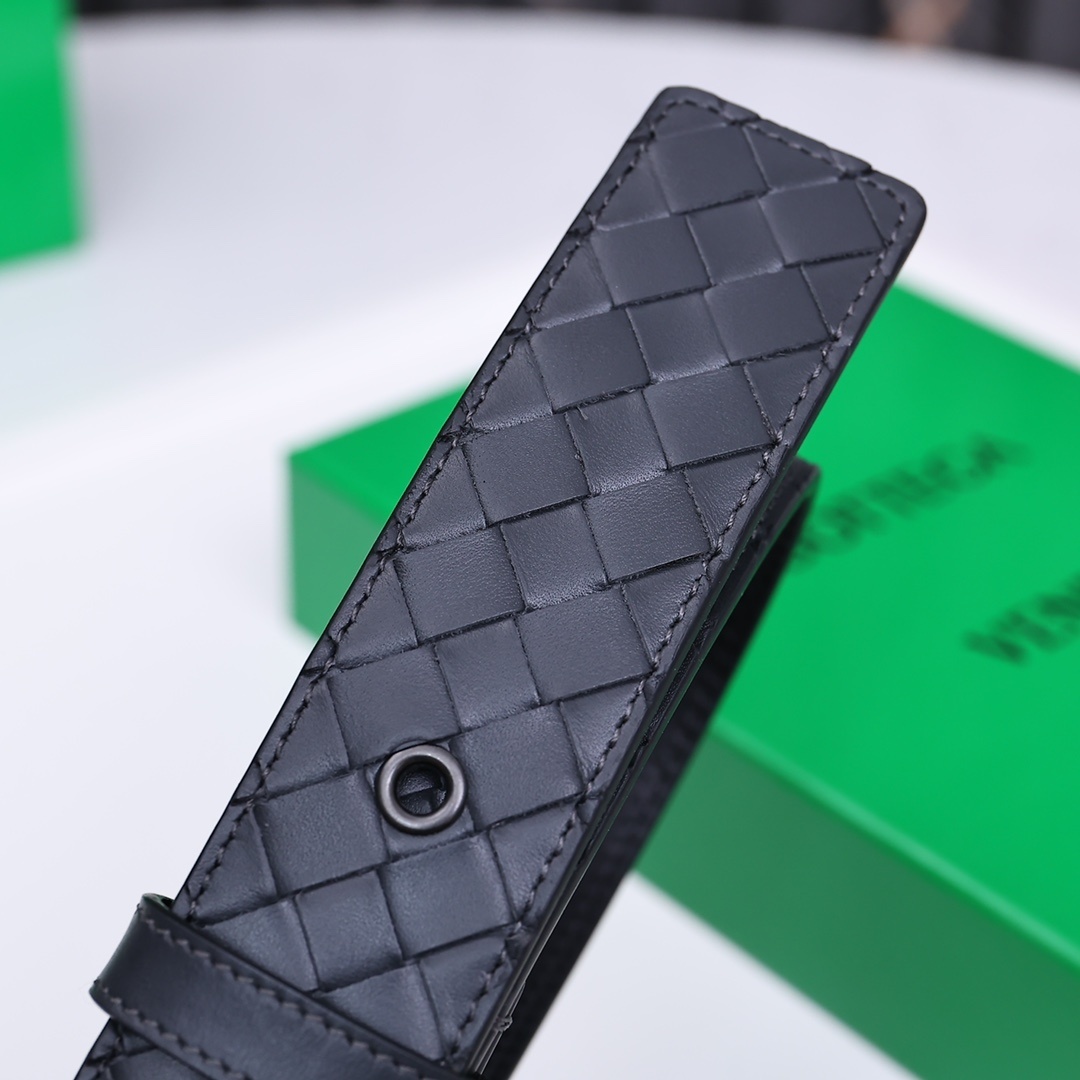 Bottega Veneta Premium Leather Woven Belt - Black