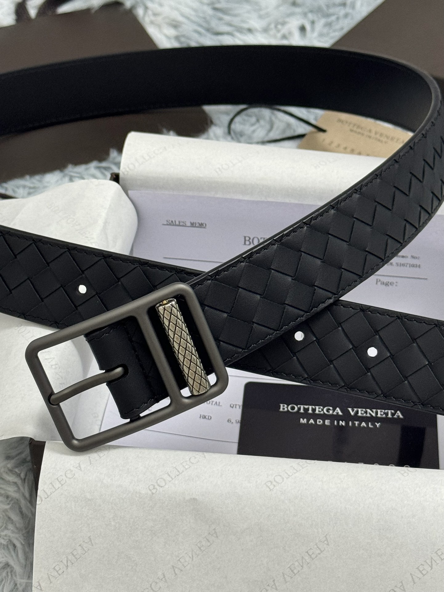 Bottega Veneta Premium Leather Woven Belt - Black