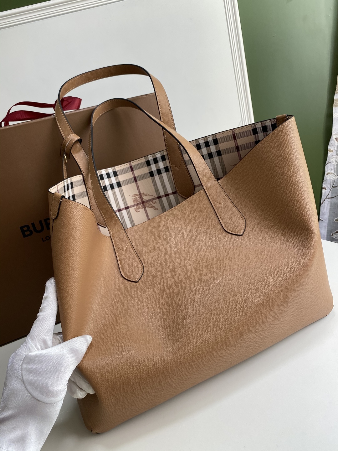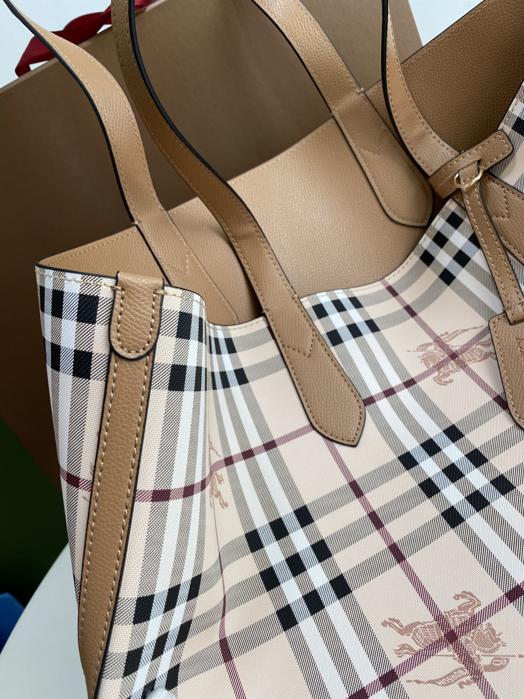 Burberry Beige Leather and Haymarket Check Coated