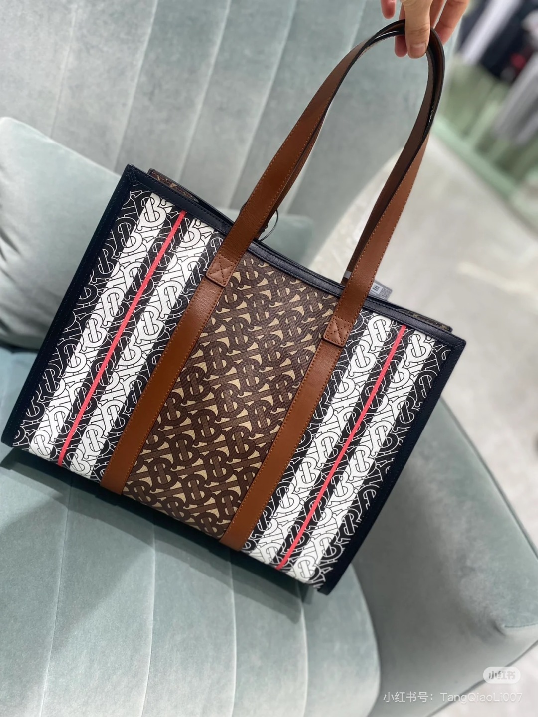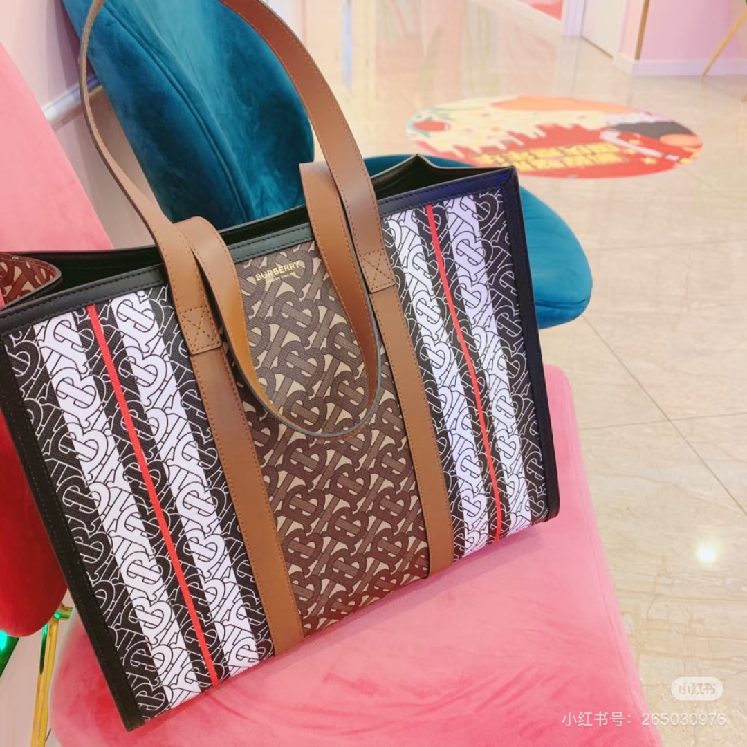 Burberry Burberry Monogram Stripe E-Canvas Tote Bag In