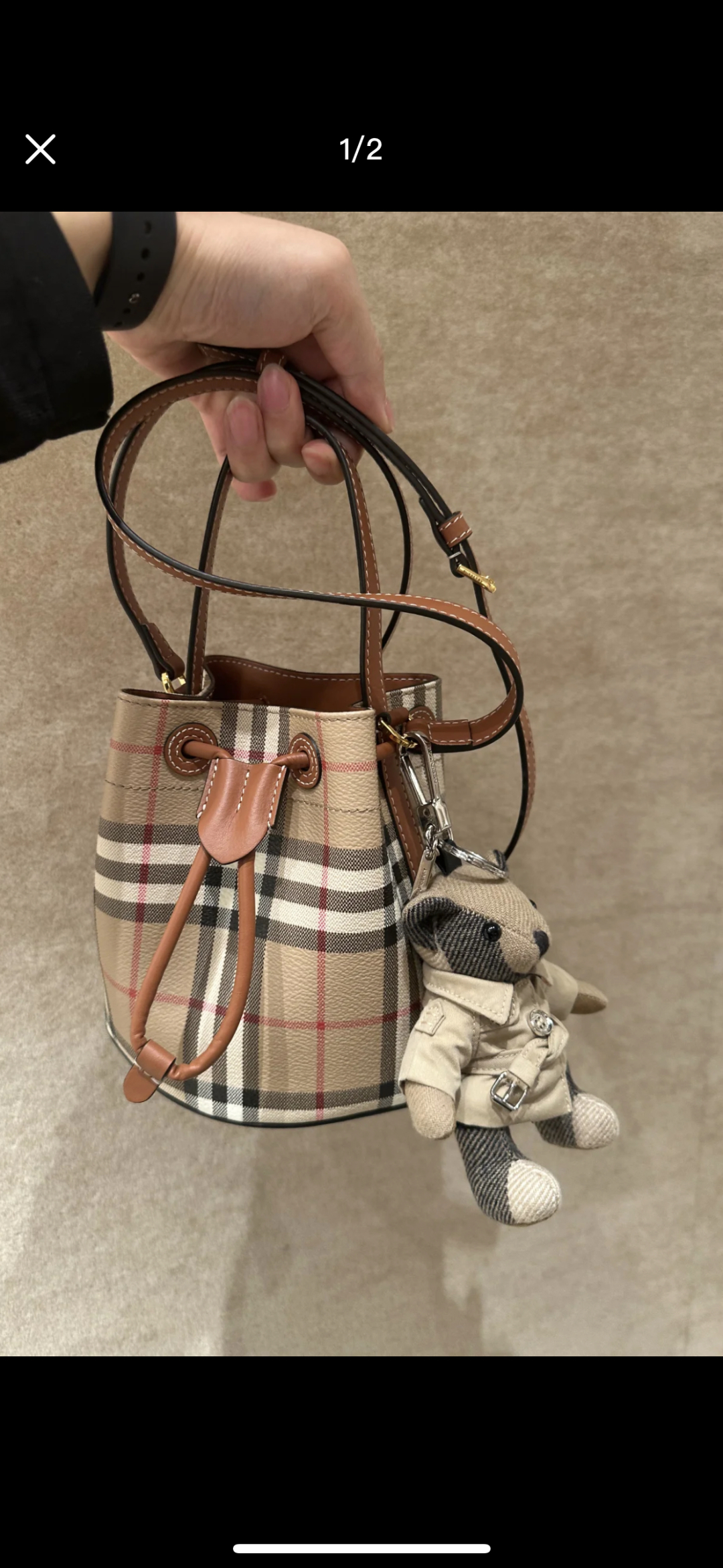 Burberry Cream Burgundy Fabric and Leather Pocket Bag