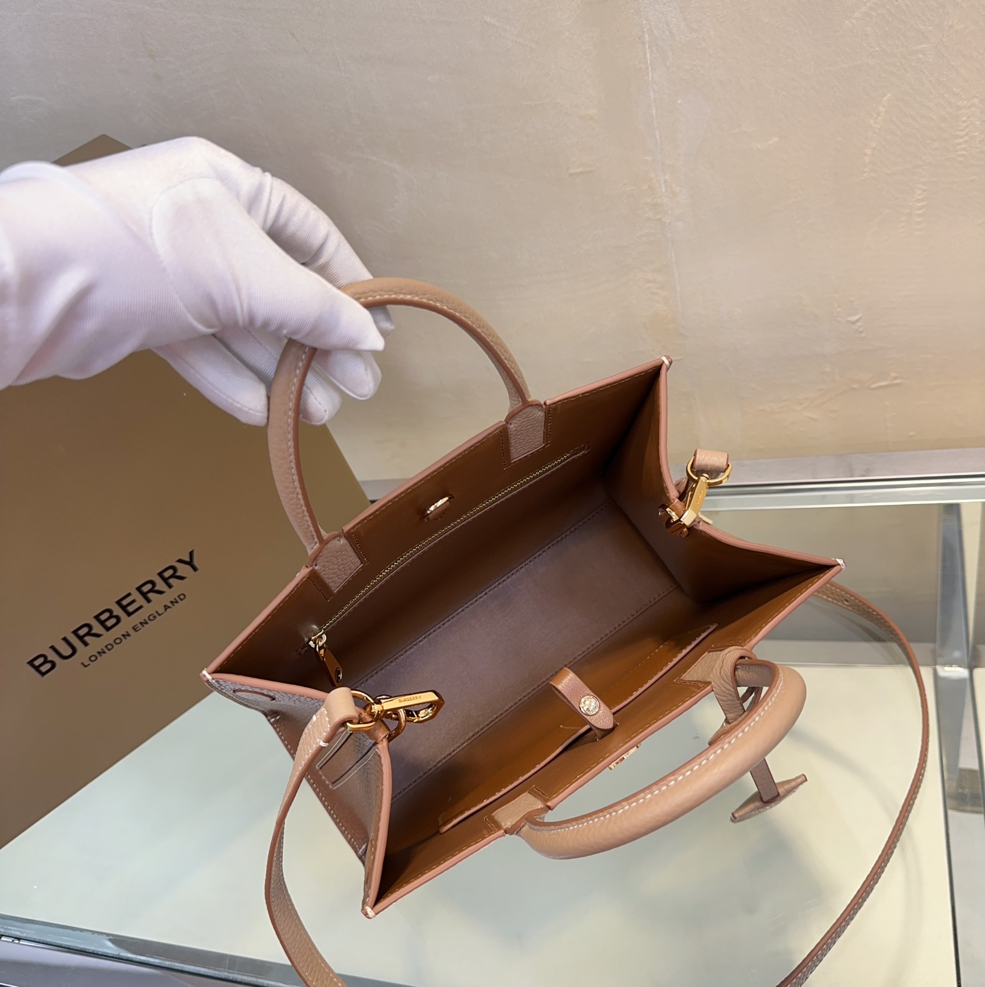 Burberry Leather Frances Handle Bag - Brown Handle