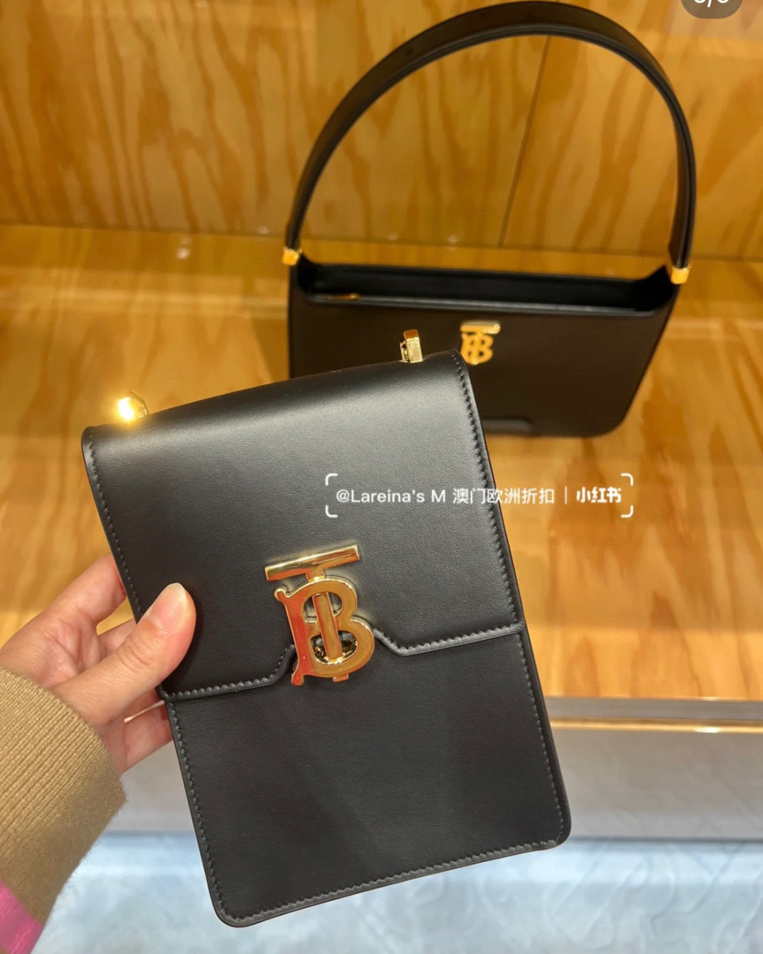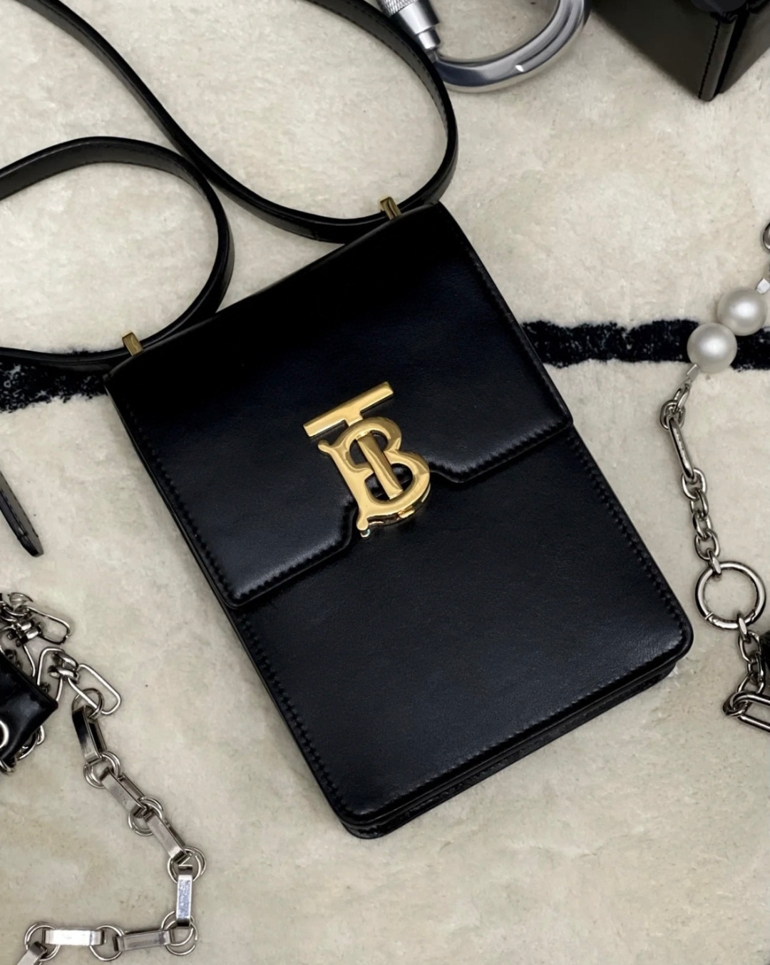 BURBERRY Smooth Calfskin TB Robin Bag Black 1347657