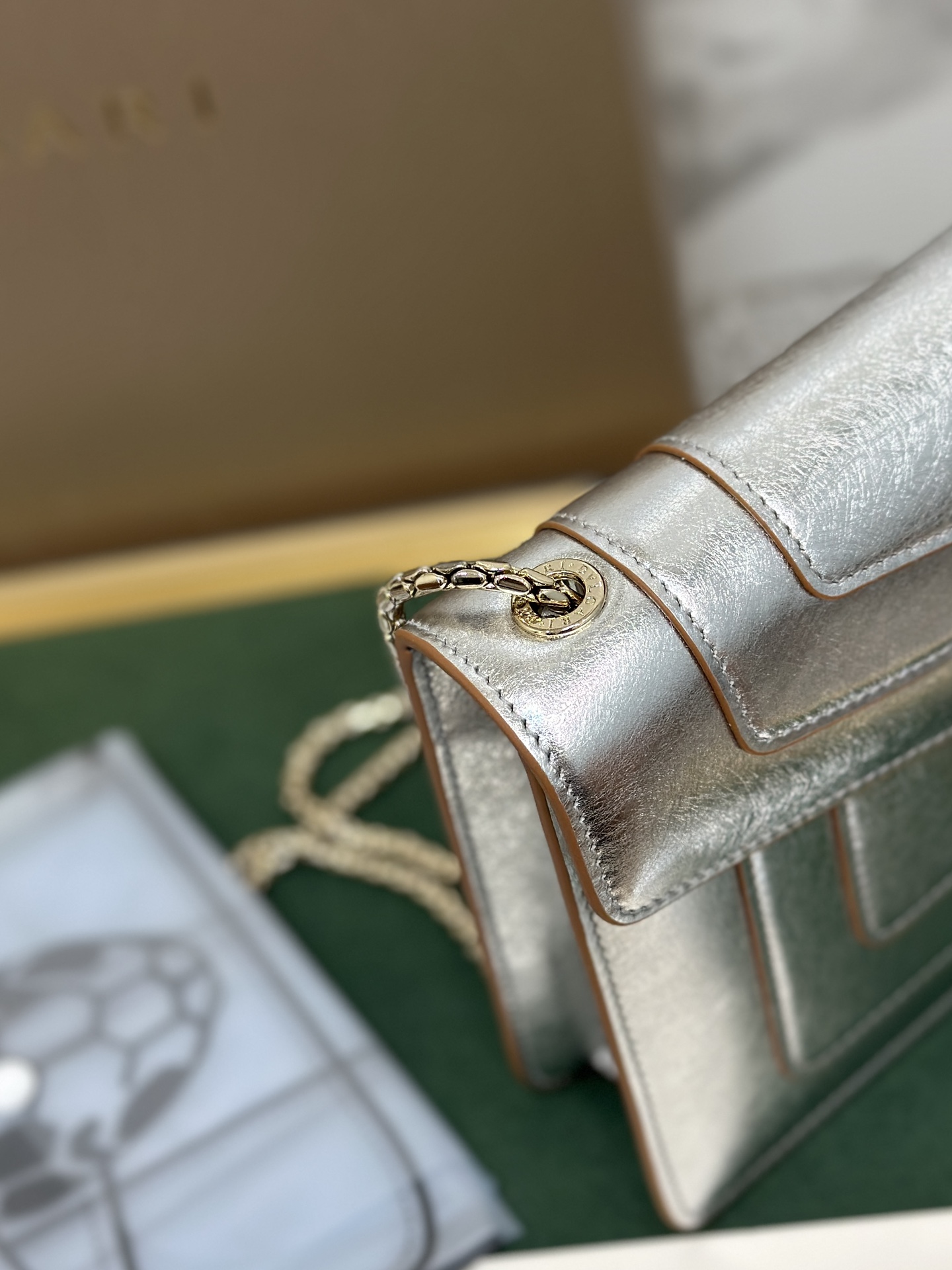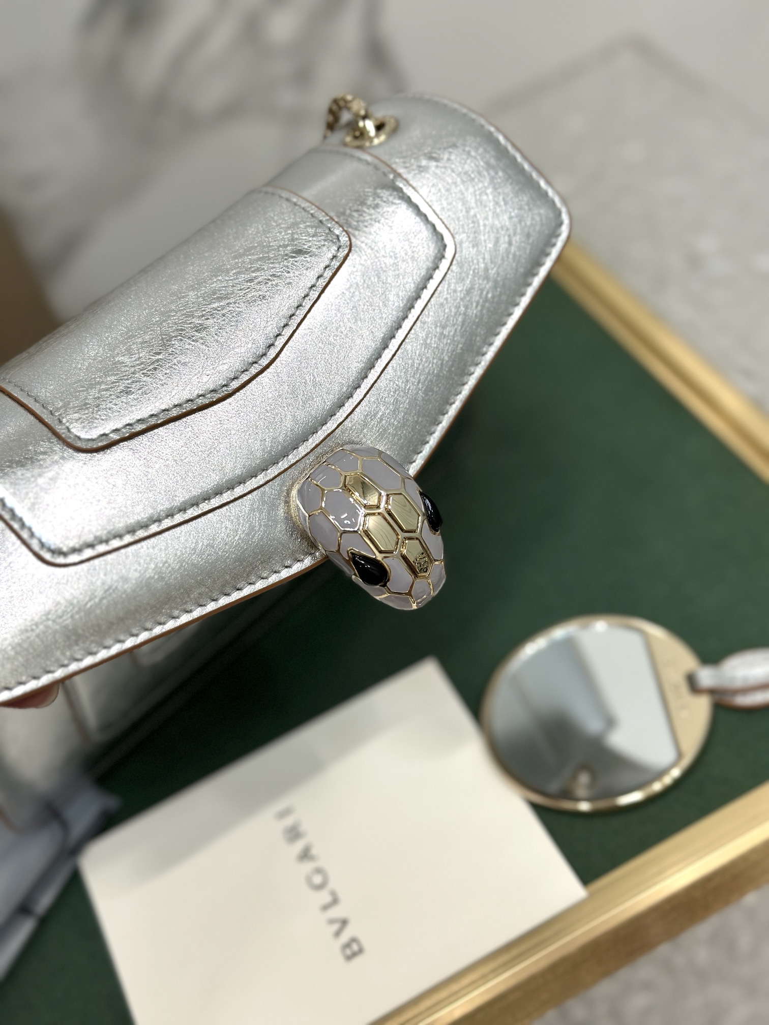 BVLGARI Silver Metallic Silver Medium Serpenti Shoulder Bag For Women