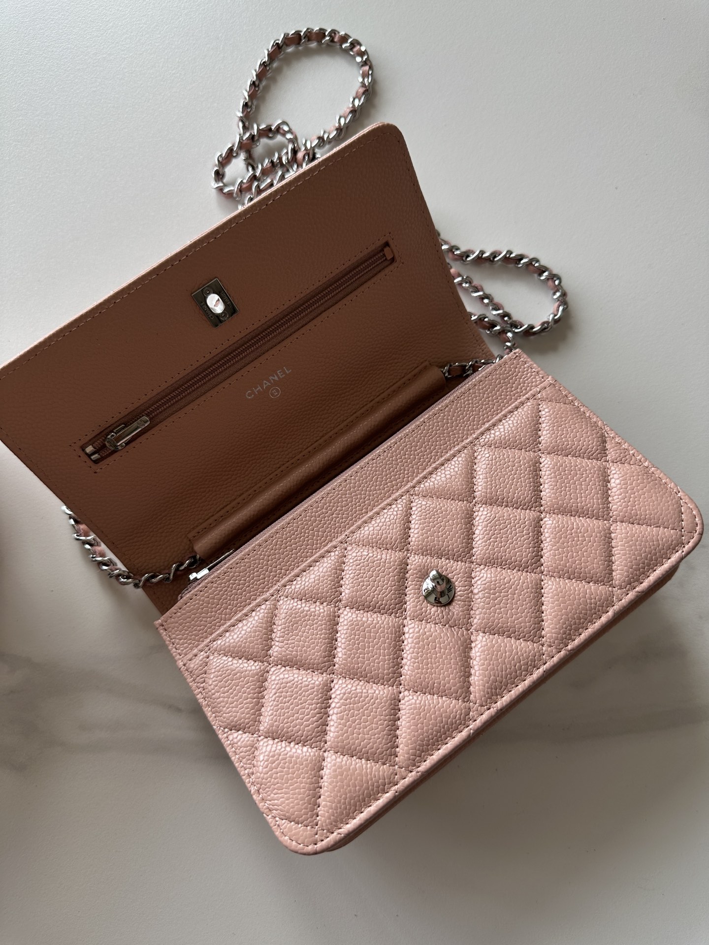 Chanel 23P Beige Caviar Wallet On Chain WOC Gold CC Logo