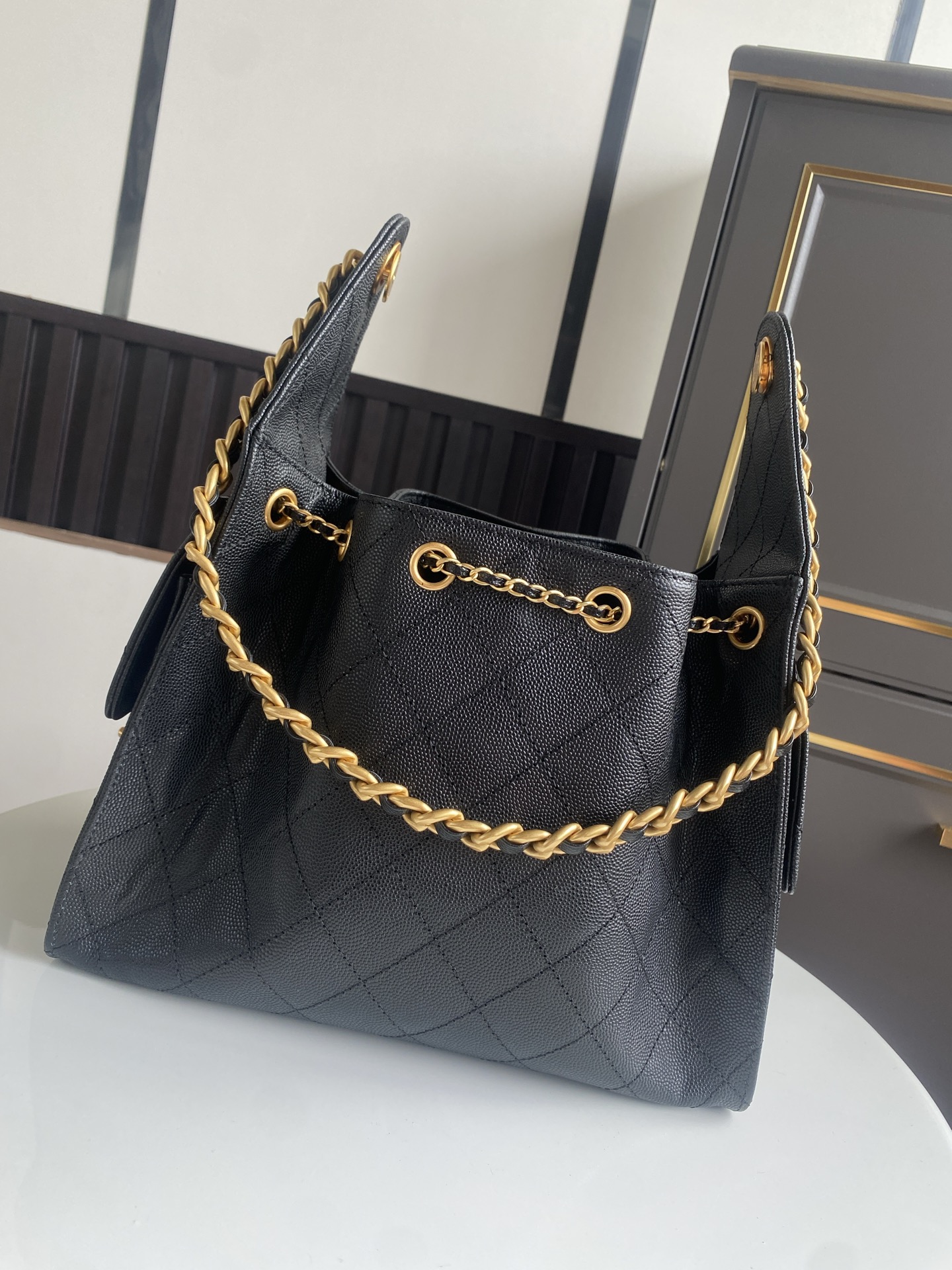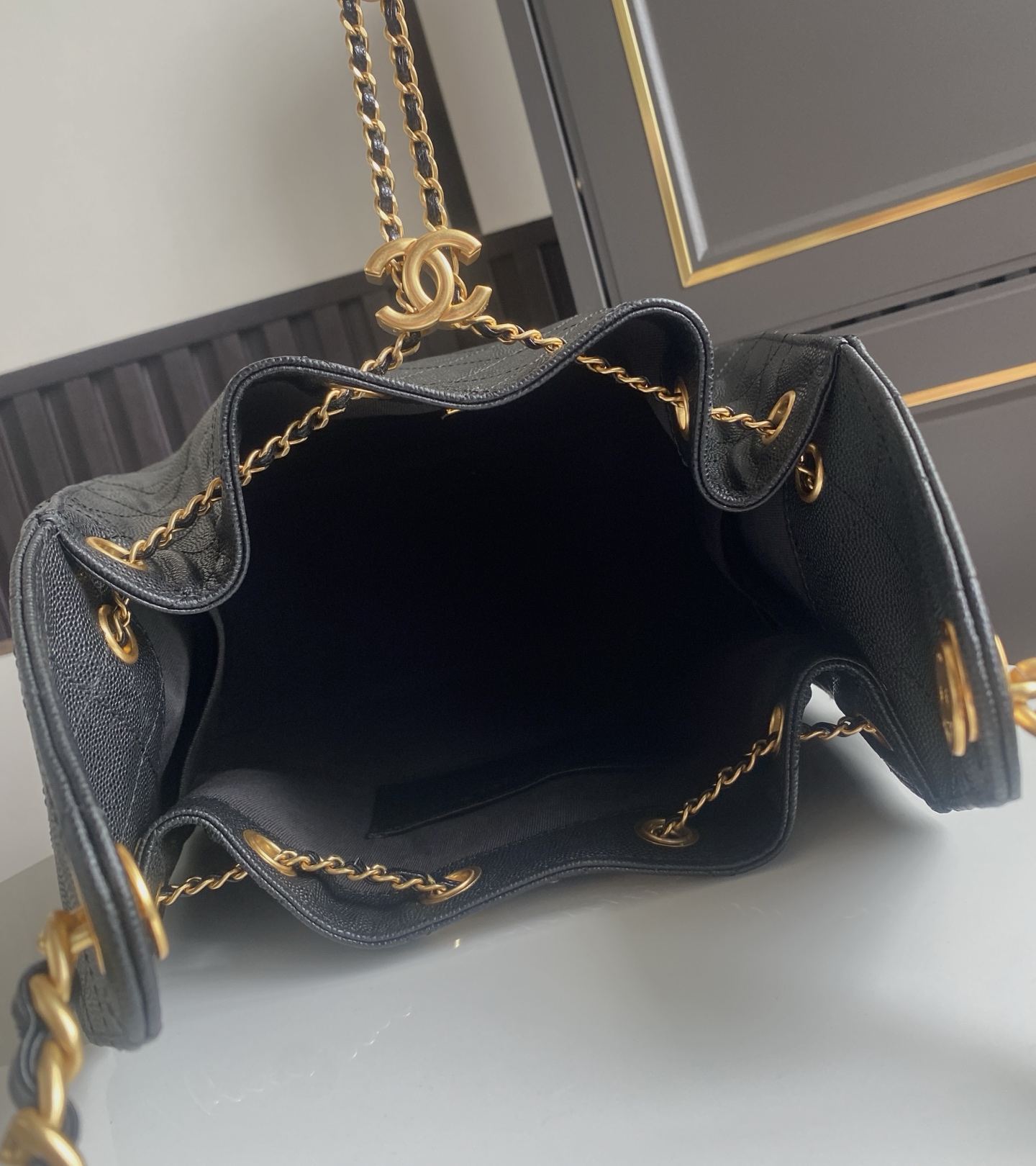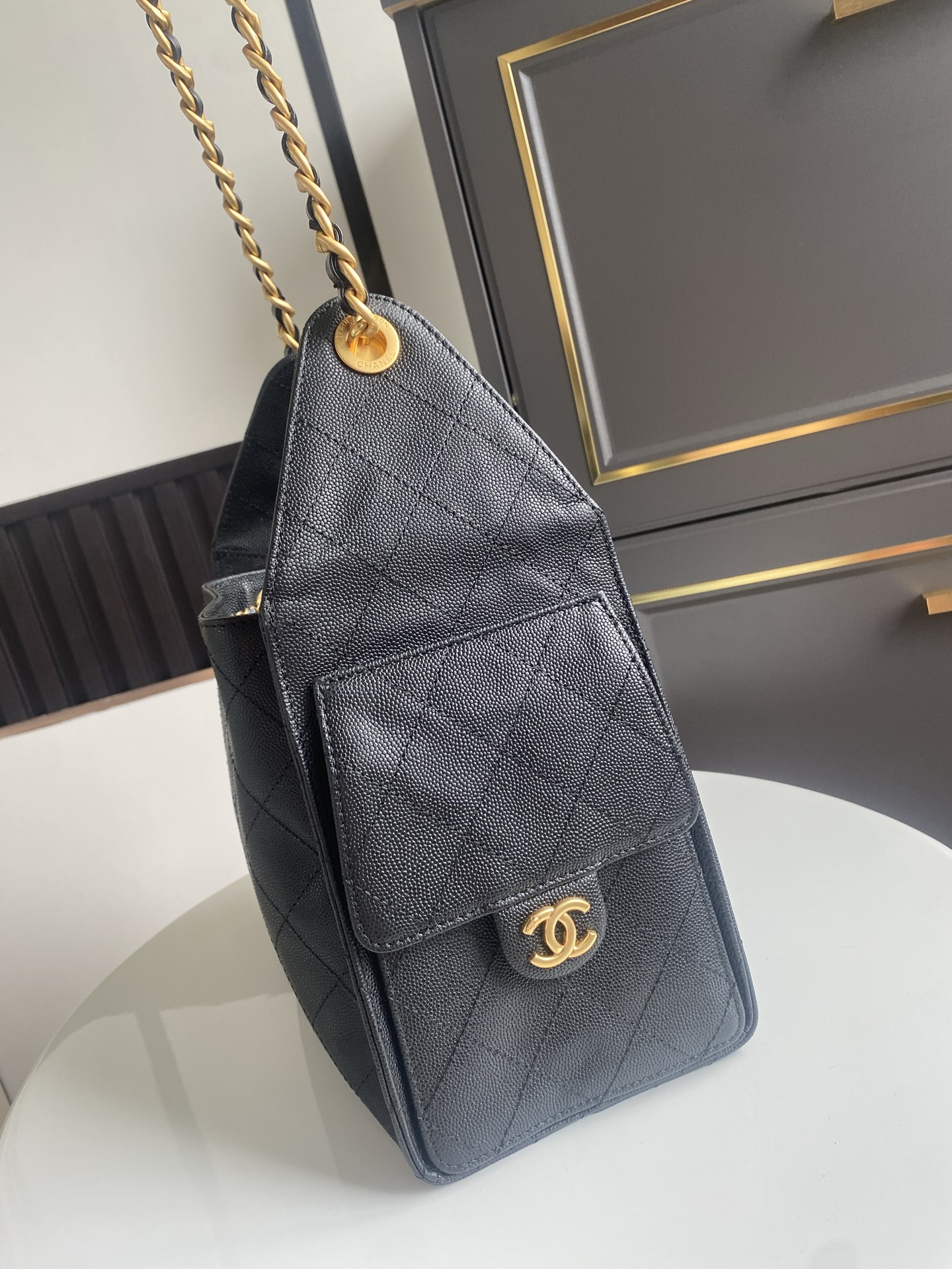 CHANEL 25 Large Backpack Grained Calfskin & Gold-Tone Metal Black