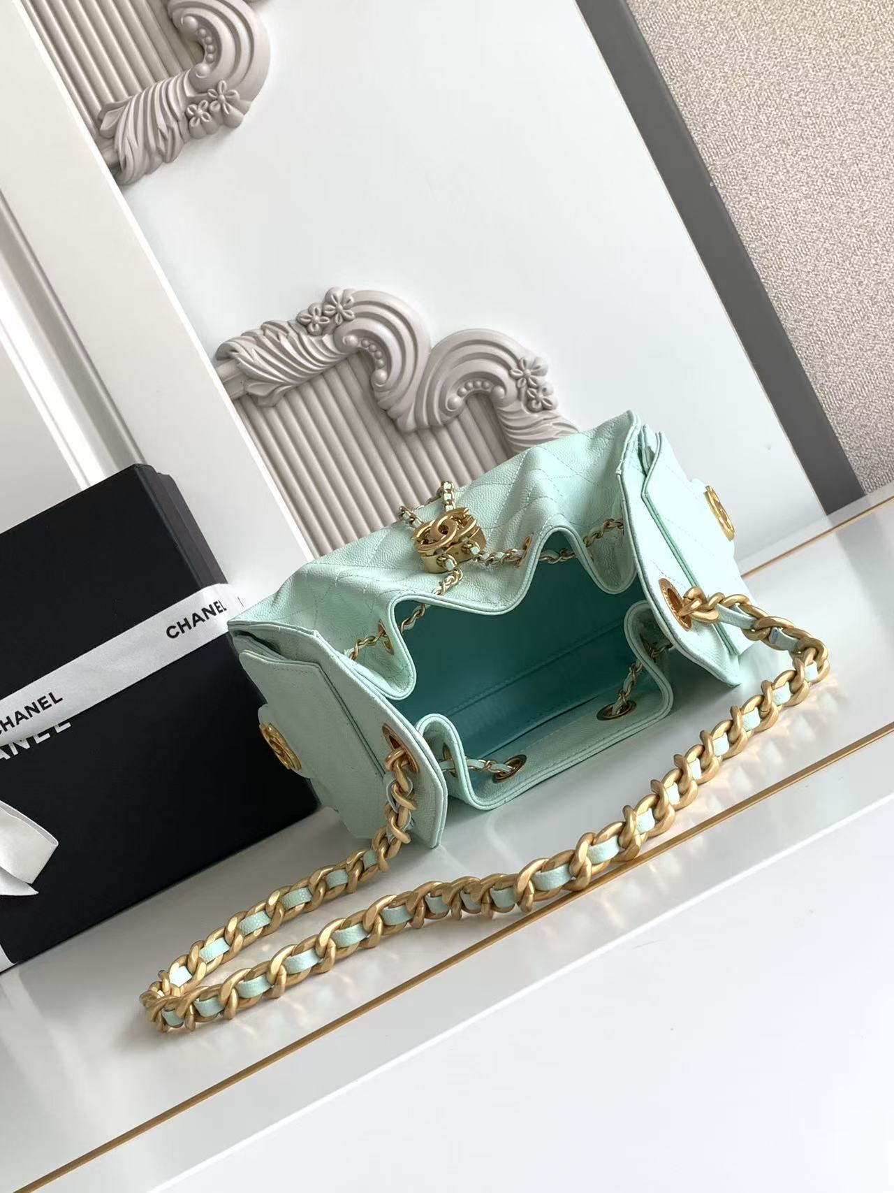 CHANEL 25 Small Handbag Grained Calfskin & Gold-Tone Metal Light Blue