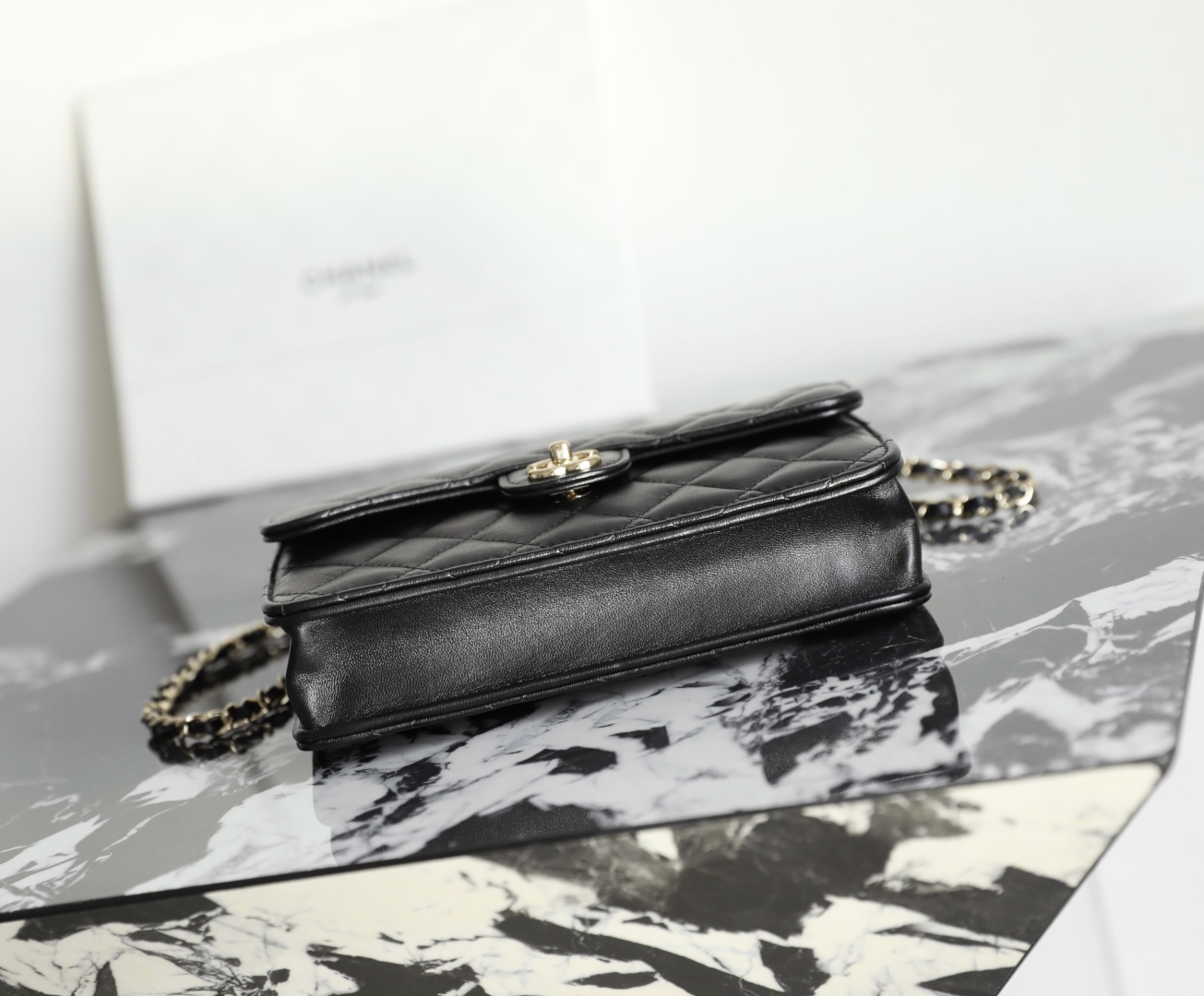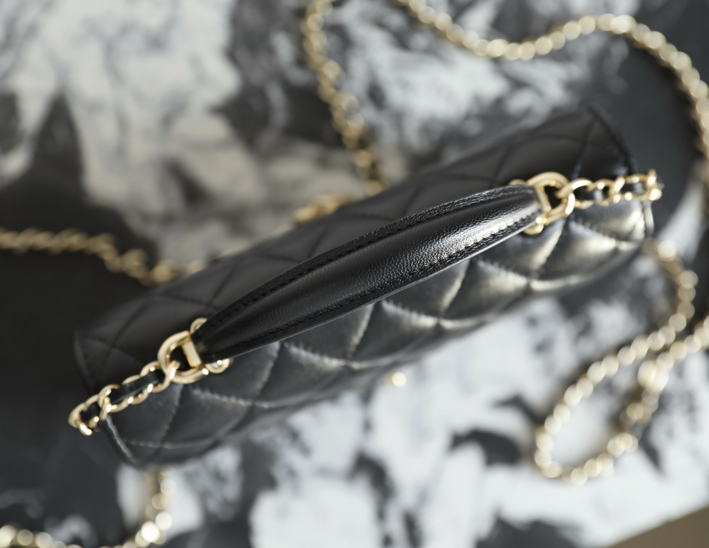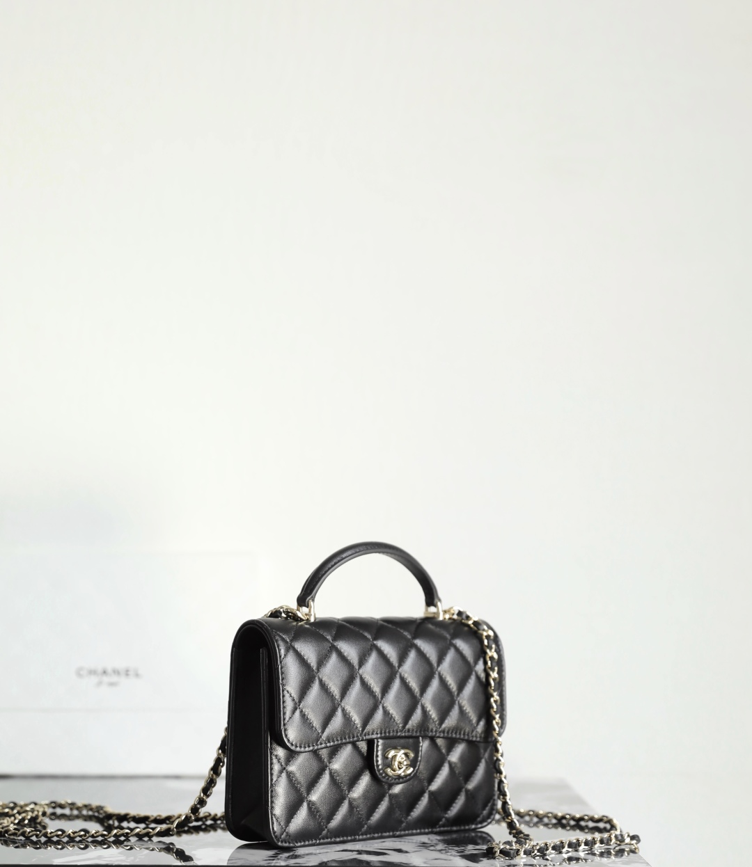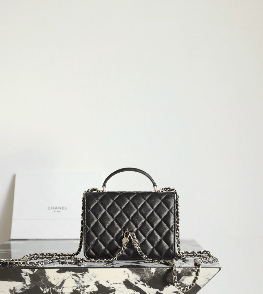 Chanel Black Quilted Lambskin Leather Top Handle Flap Bag