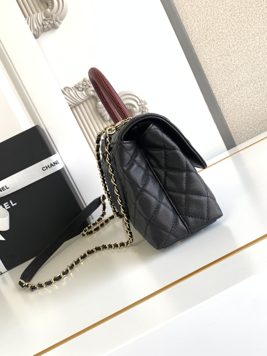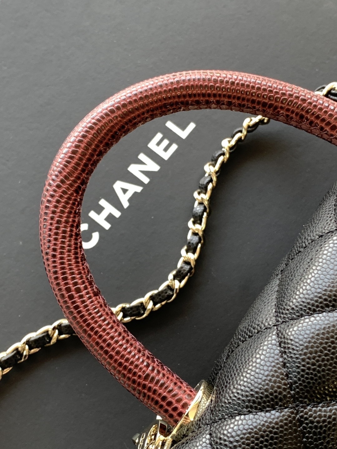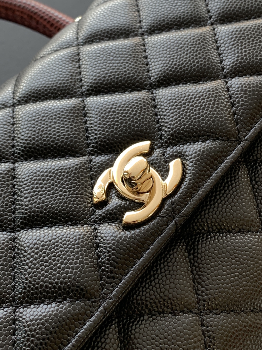CHANEL Caviar Lizard Quilted Medium Coco Handle Flap Black