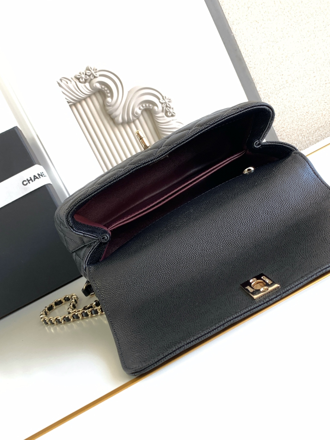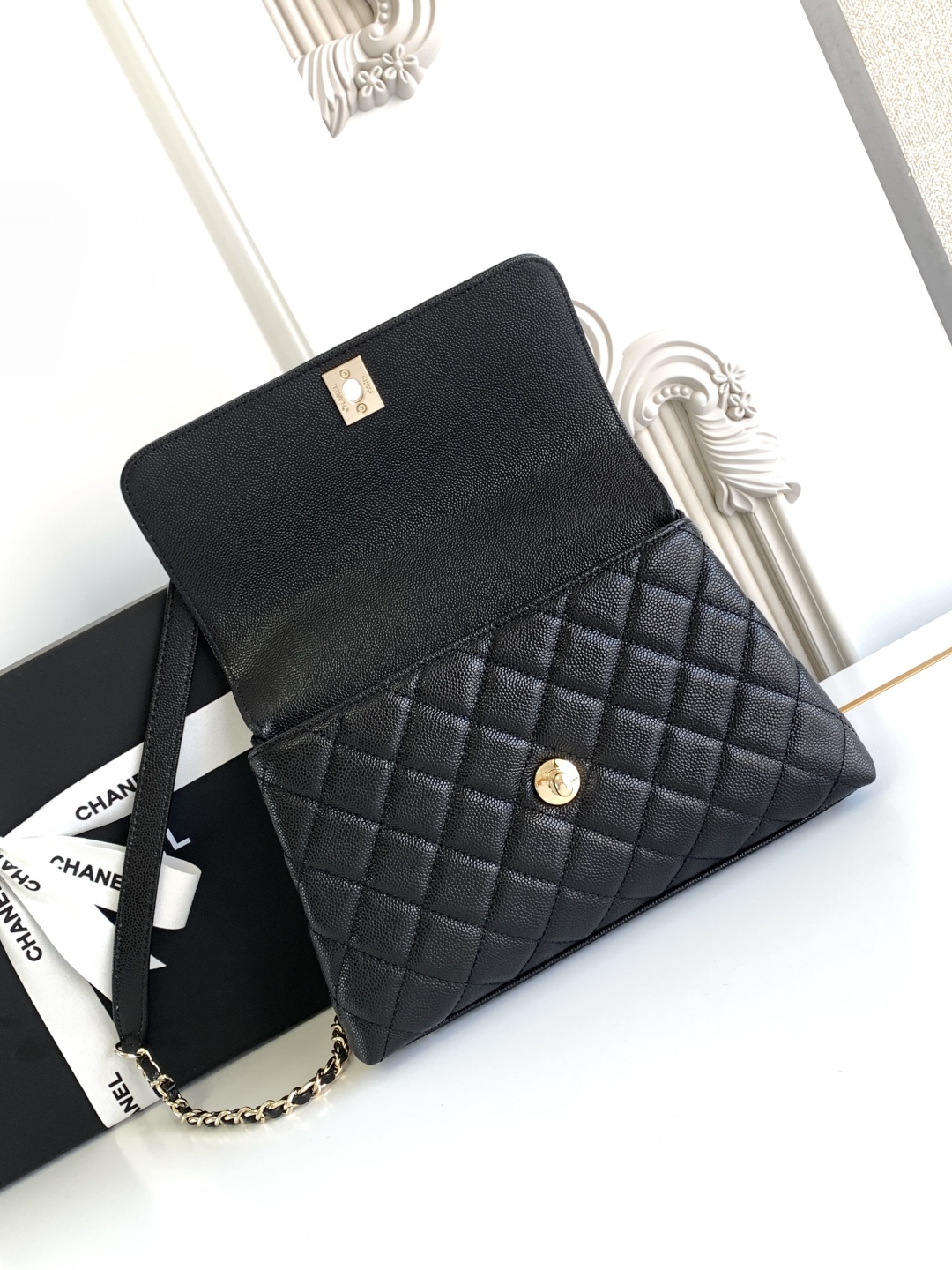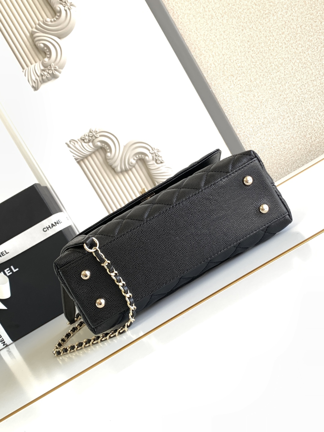 CHANEL Caviar Lizard Quilted Medium Coco Handle Flap Black
