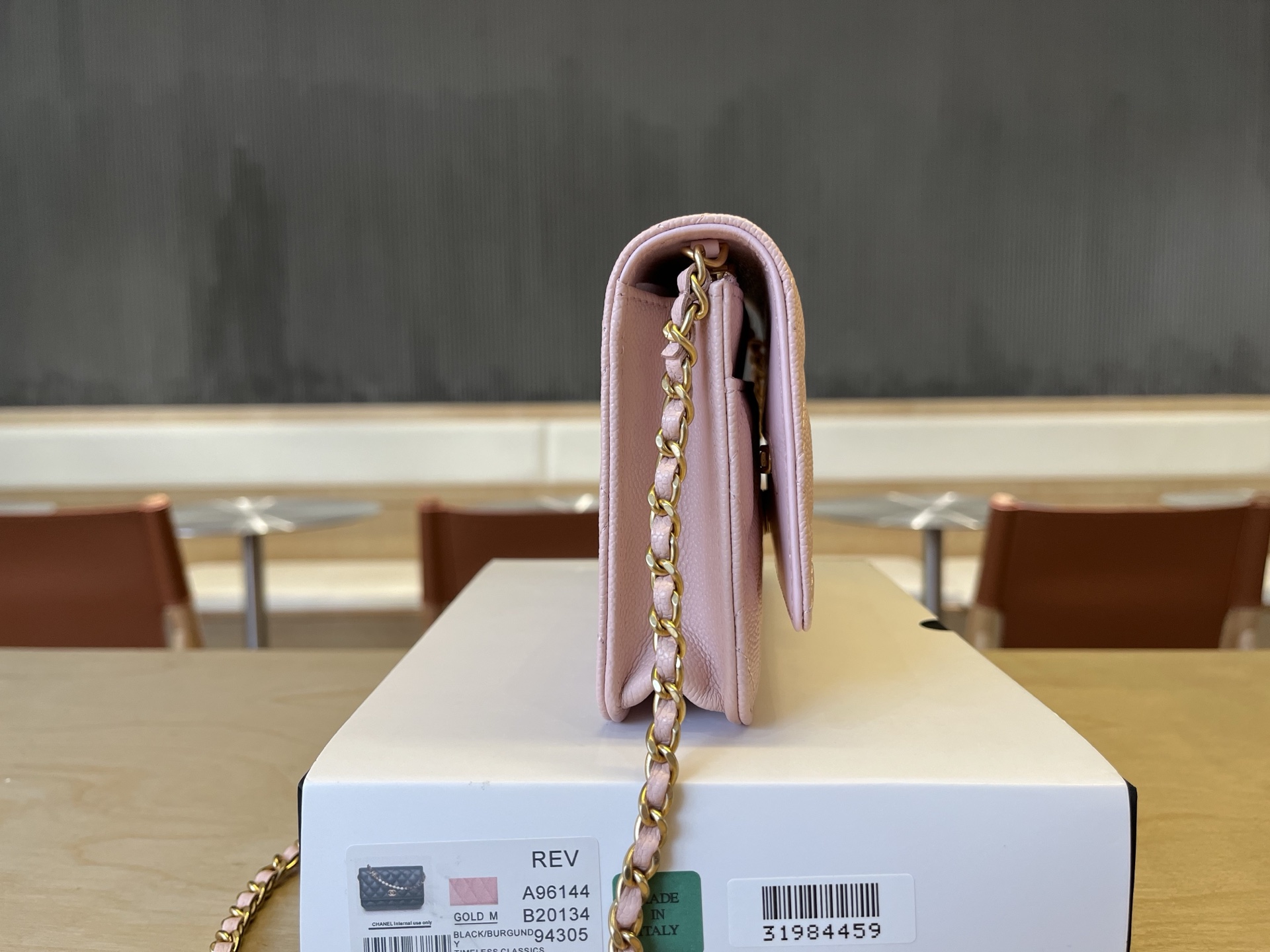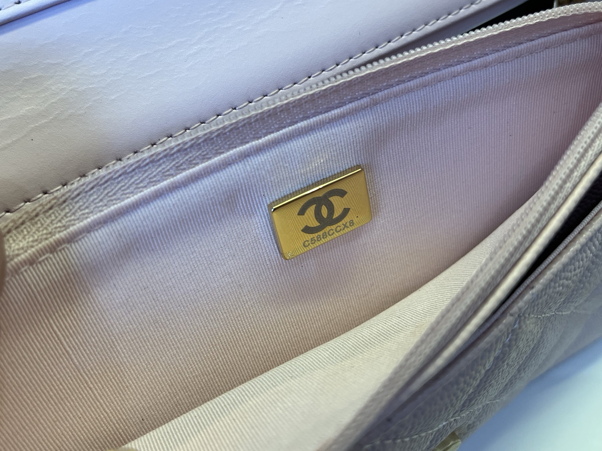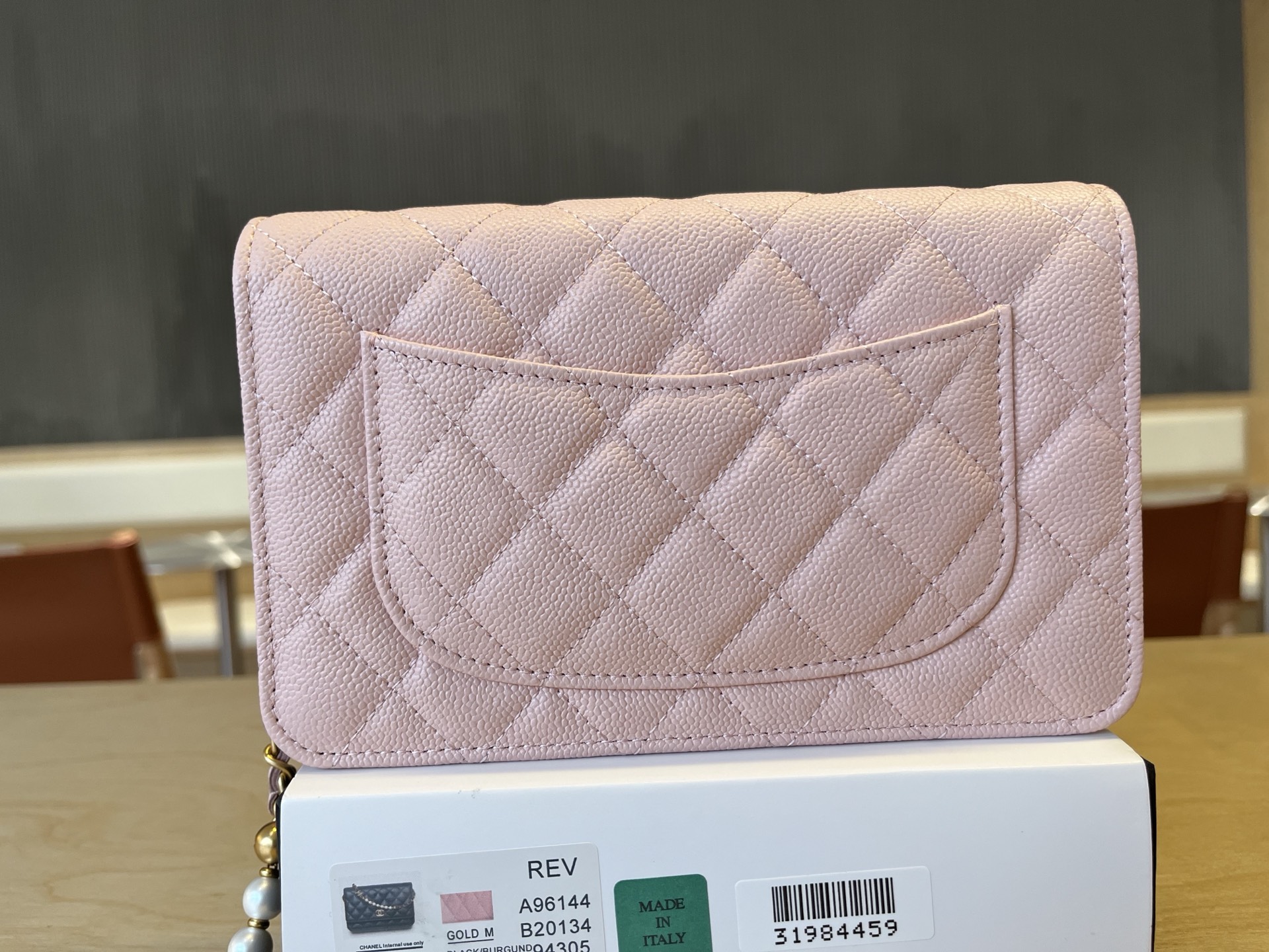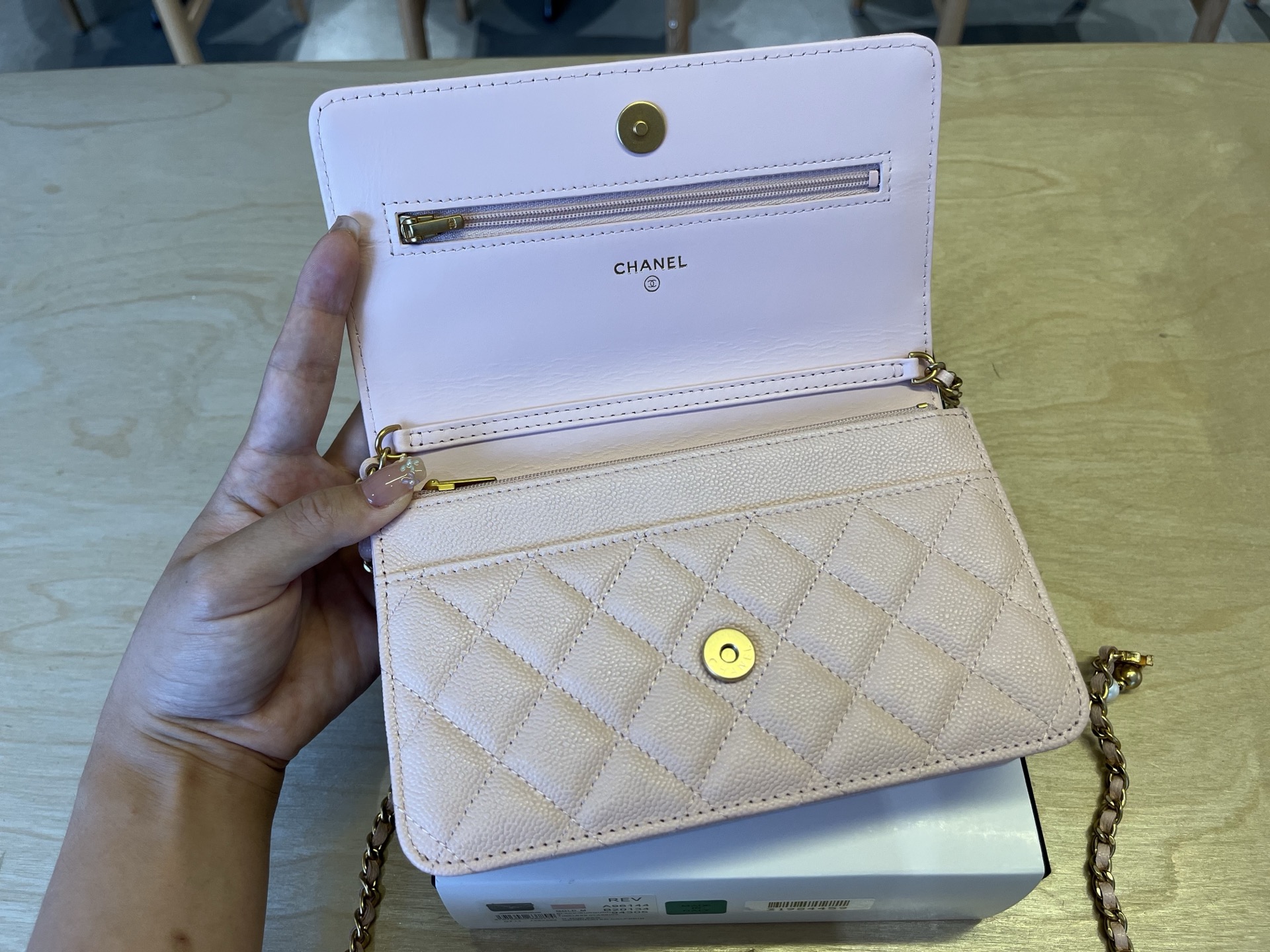 CHANEL Caviar Quilted Camellia Wallet On Chain WOC Light Pink
