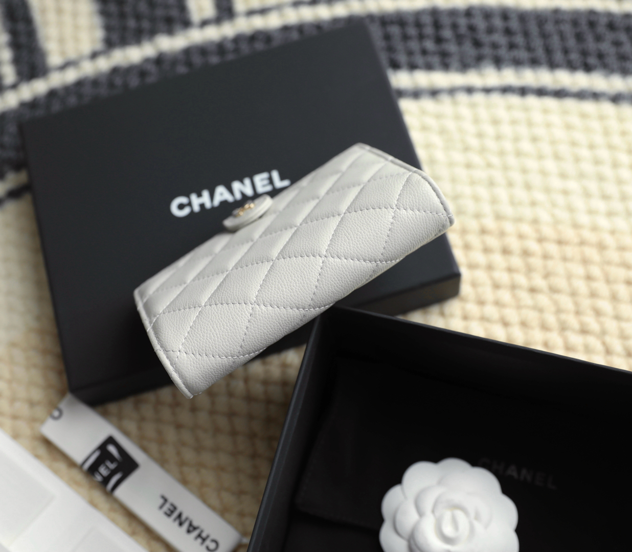 CHANEL Caviar Quilted CC French Wallet Light Gray 631987