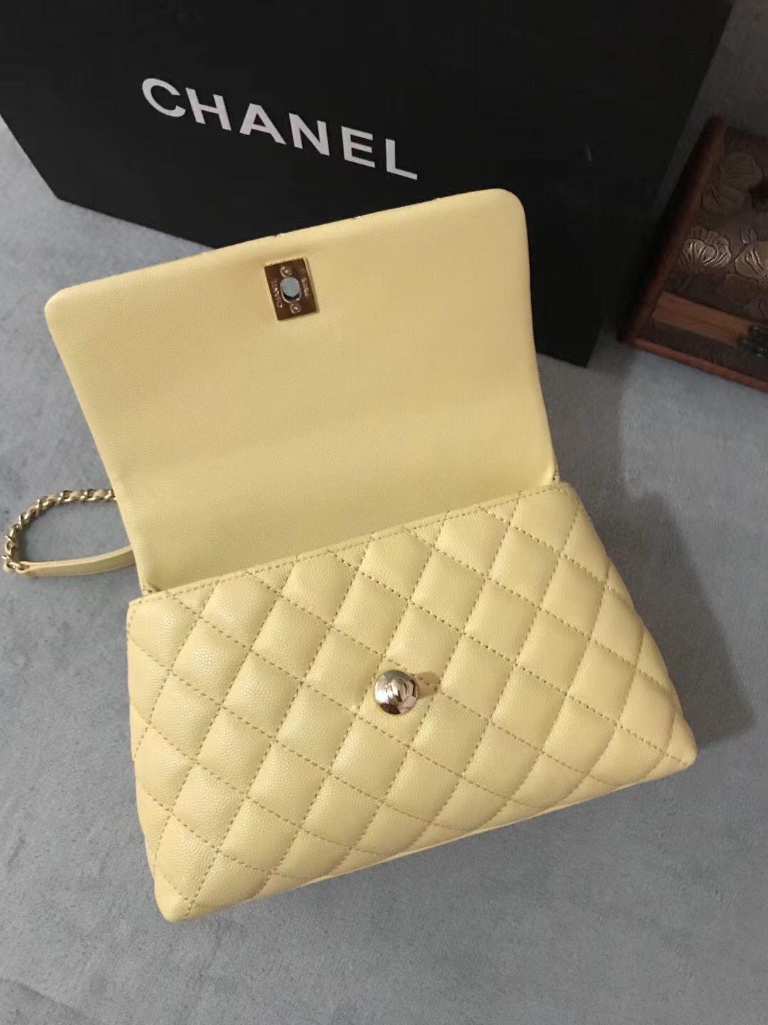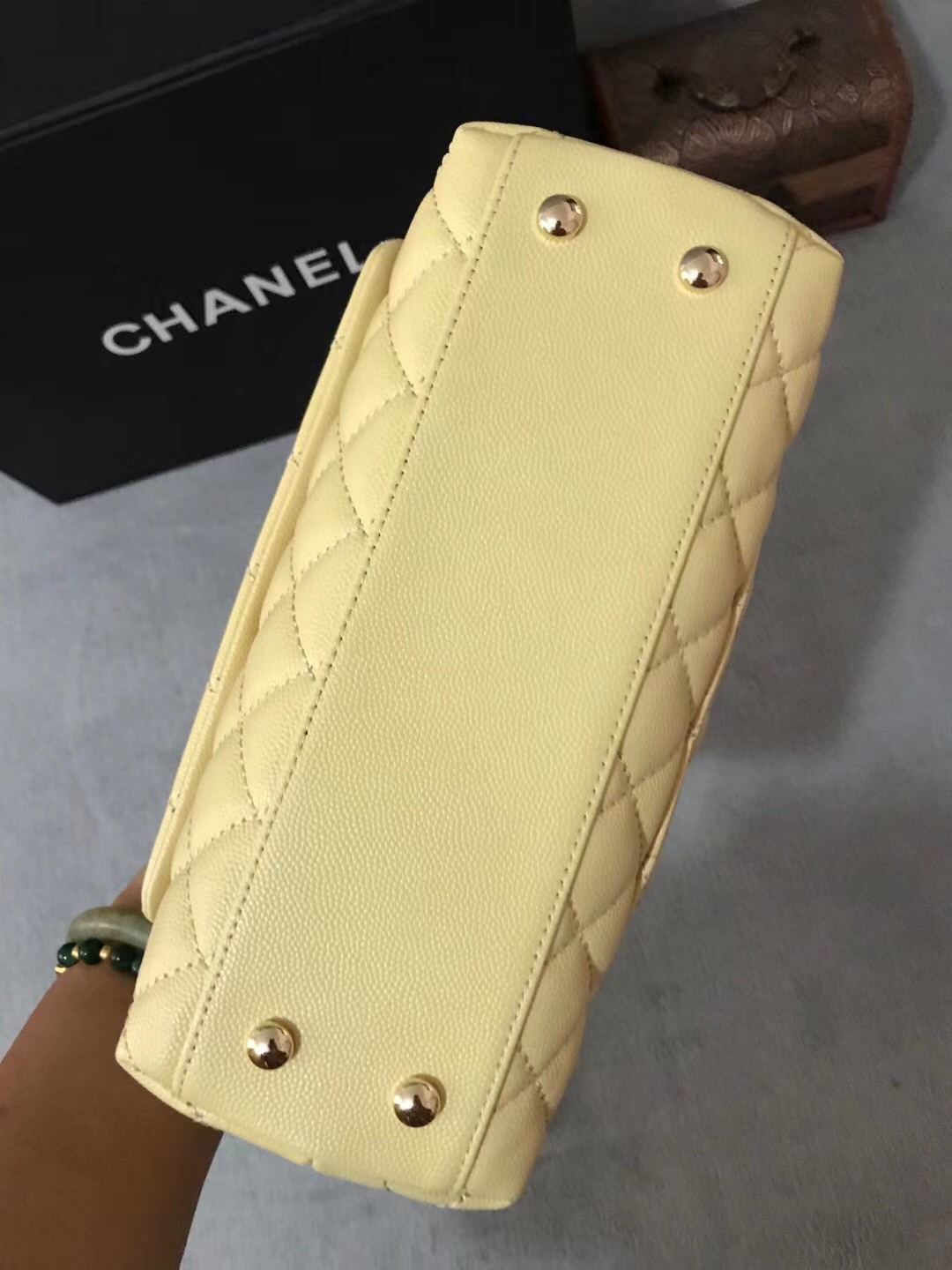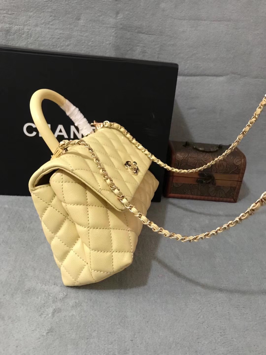 CHANEL Caviar Quilted Mini Coco Handle Flap Yellow