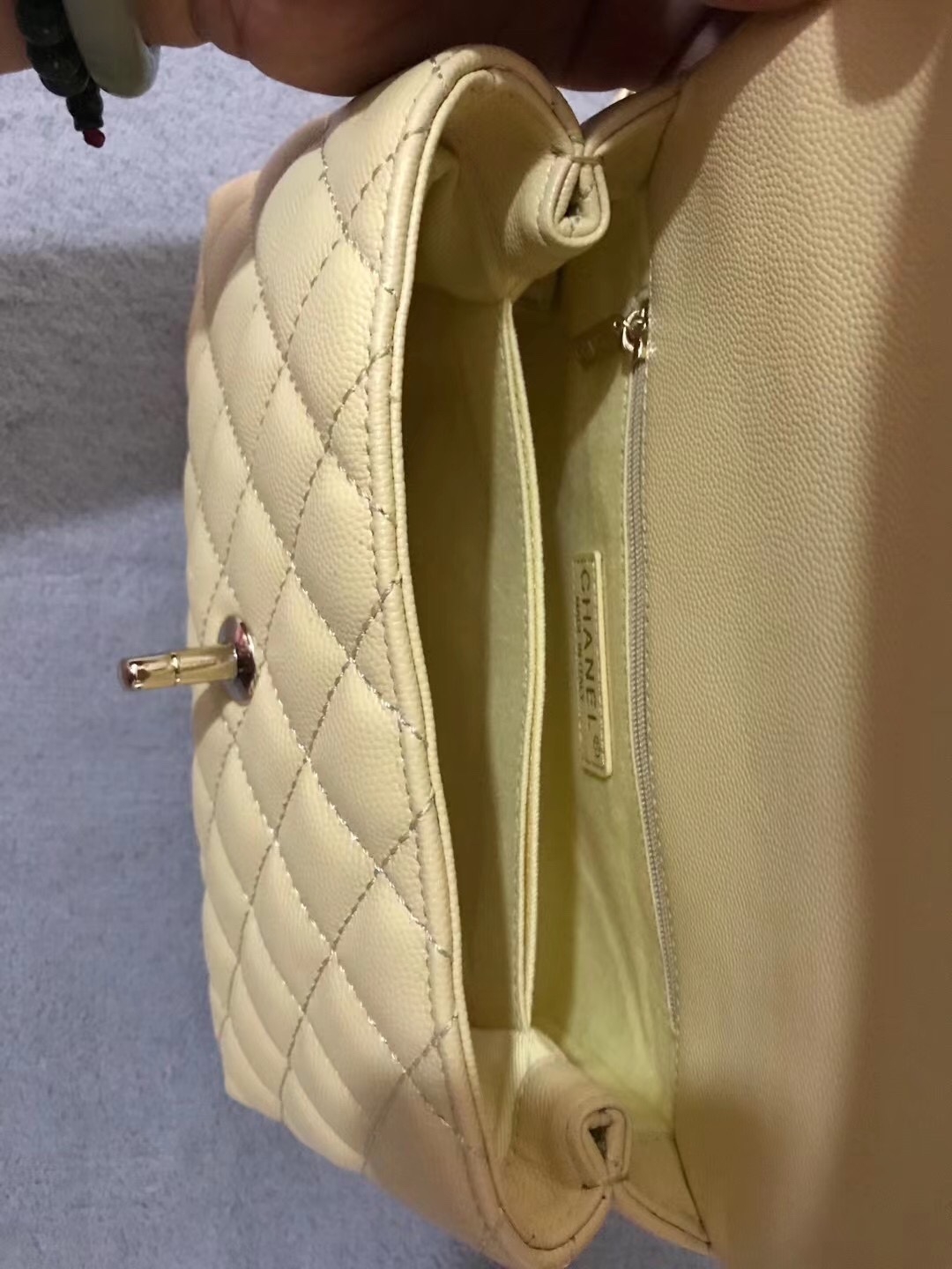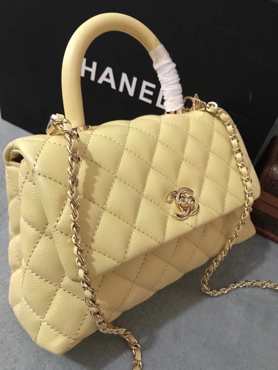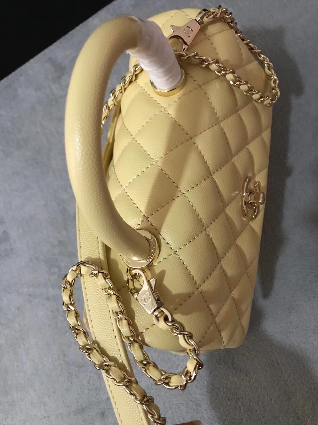 CHANEL Caviar Quilted Mini Coco Handle Flap Yellow