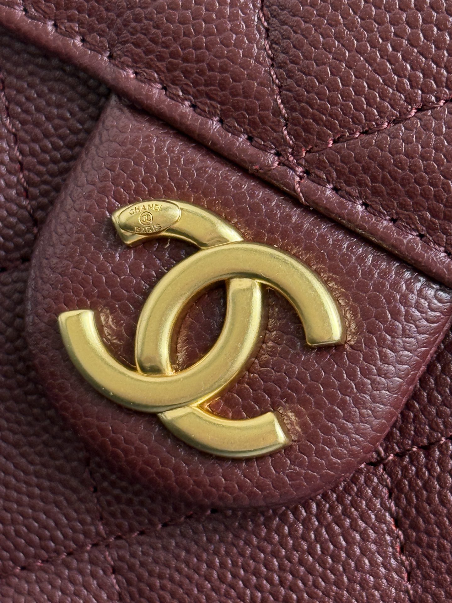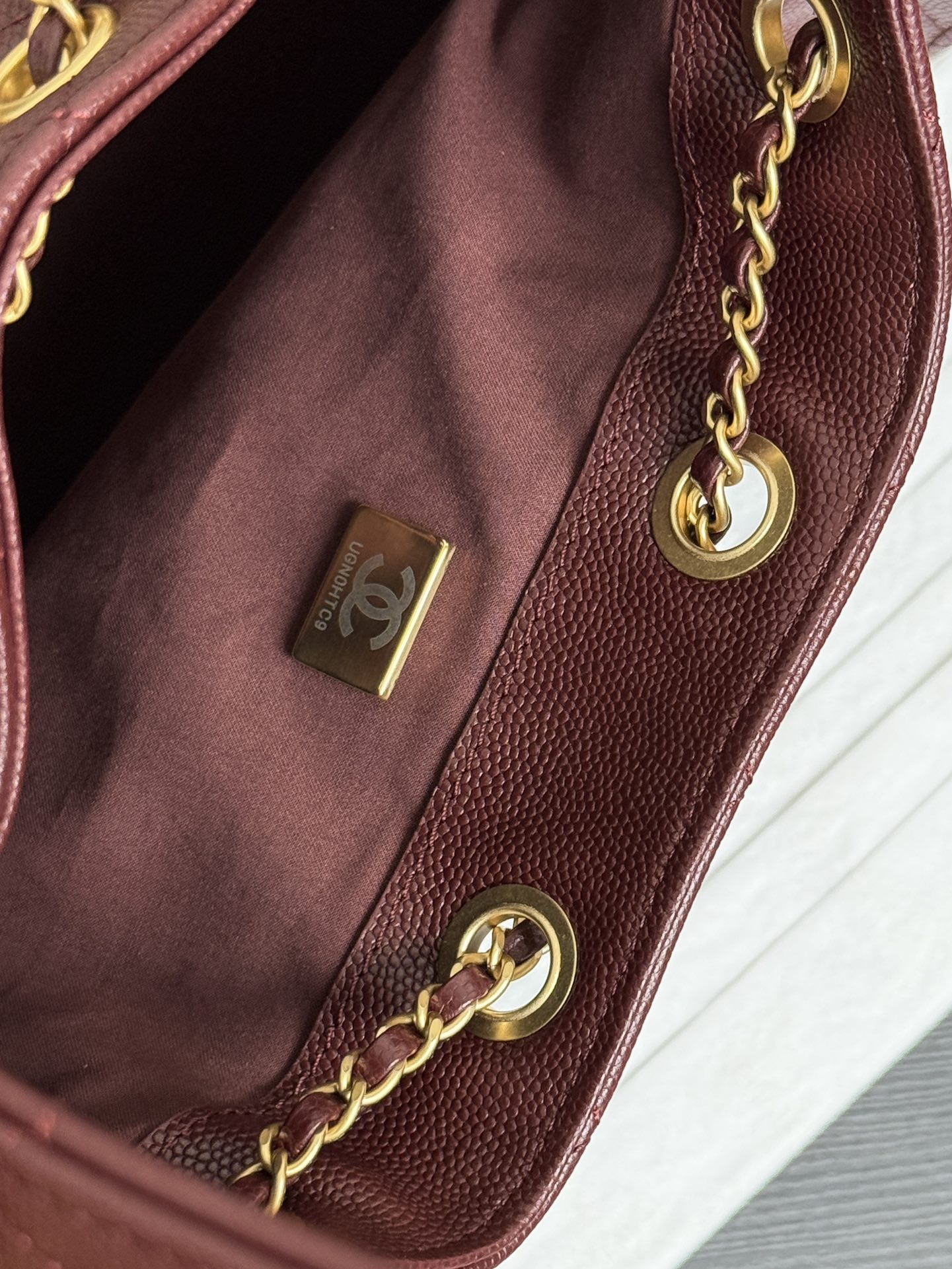 CHANEL Caviar Quilted Small Chanel 25 Handbag Burgundy
