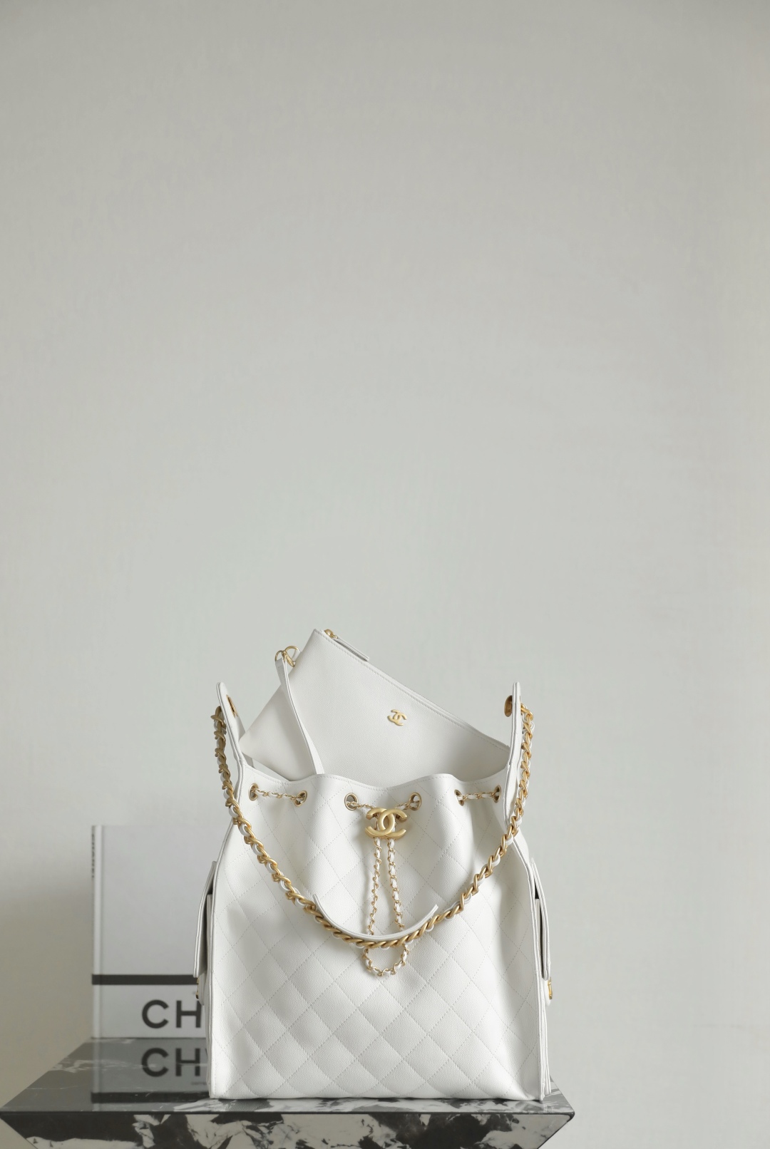 CHANEL Caviar Quilted Small Chanel 25 Handbag White