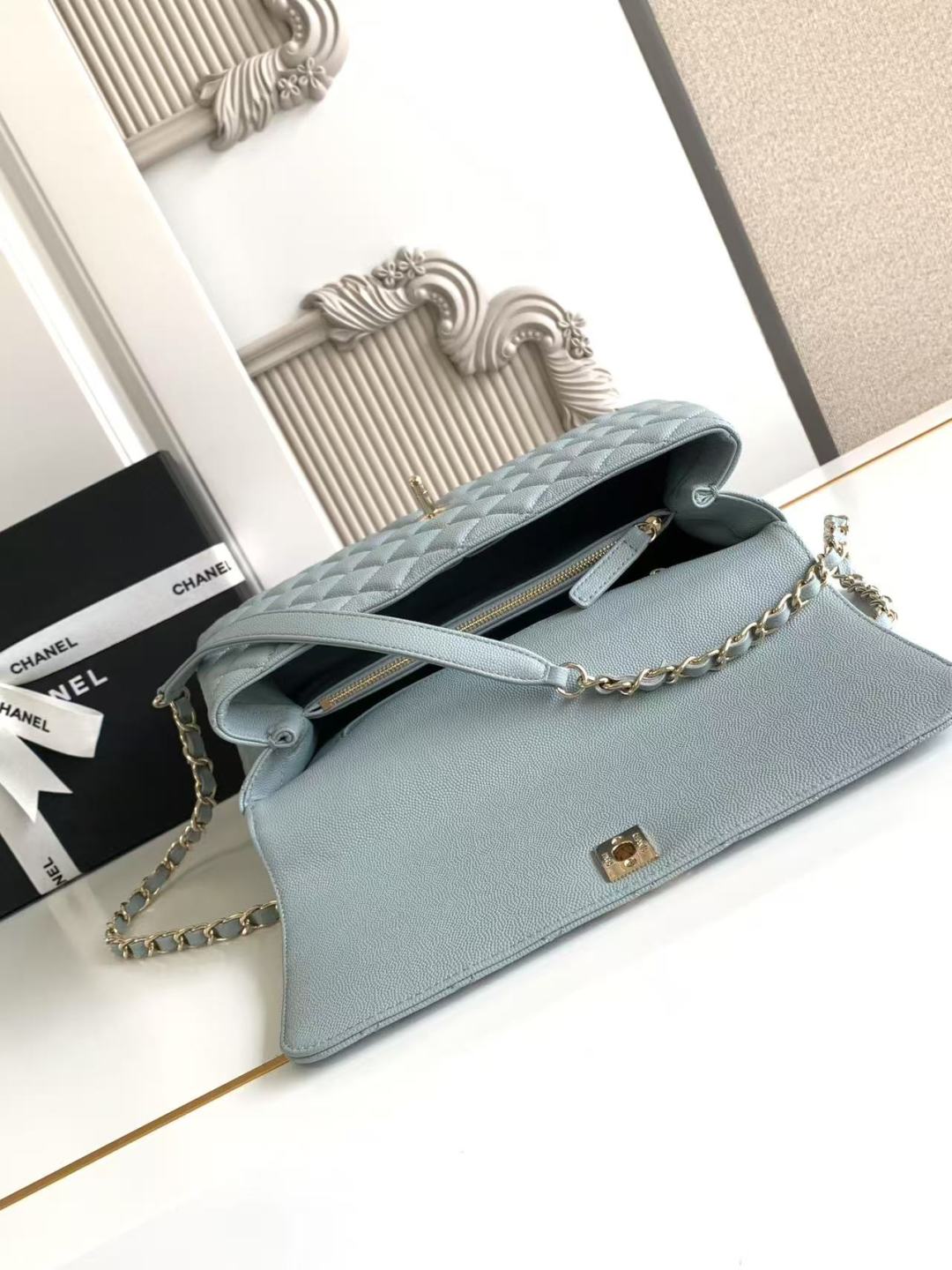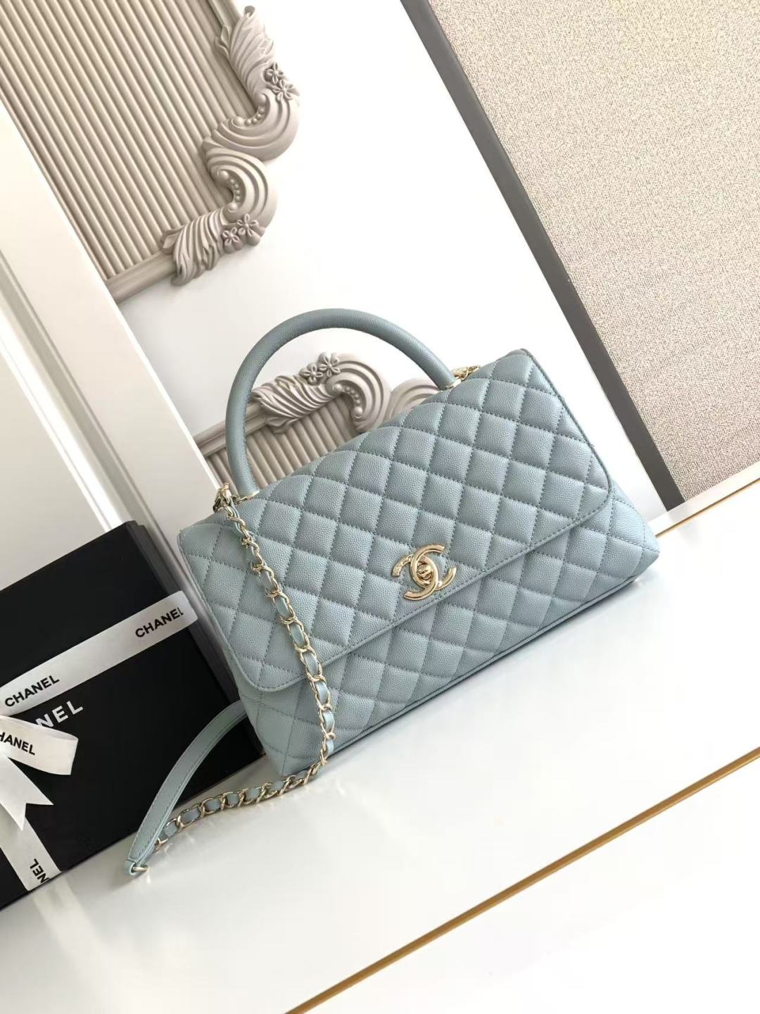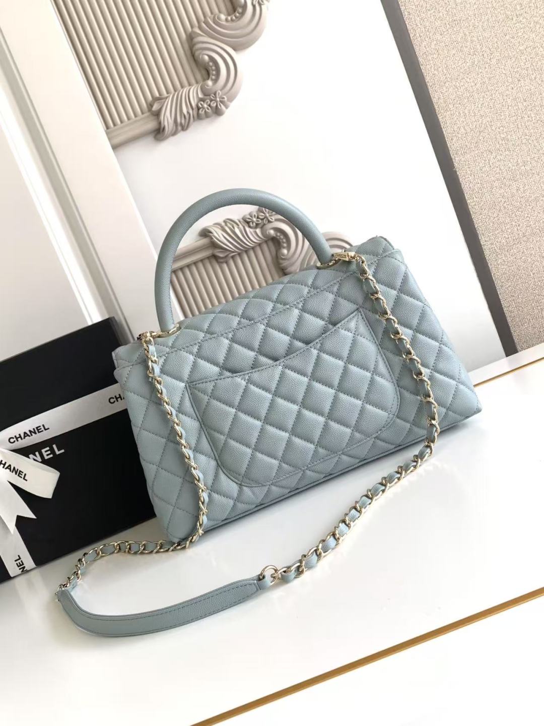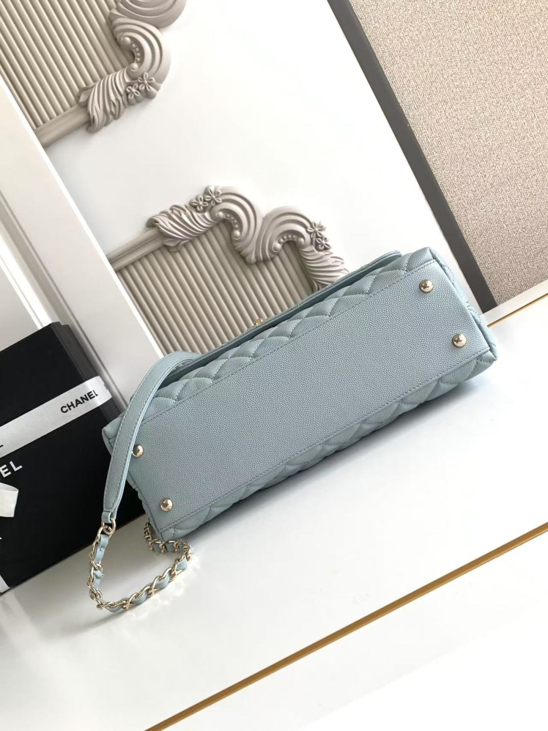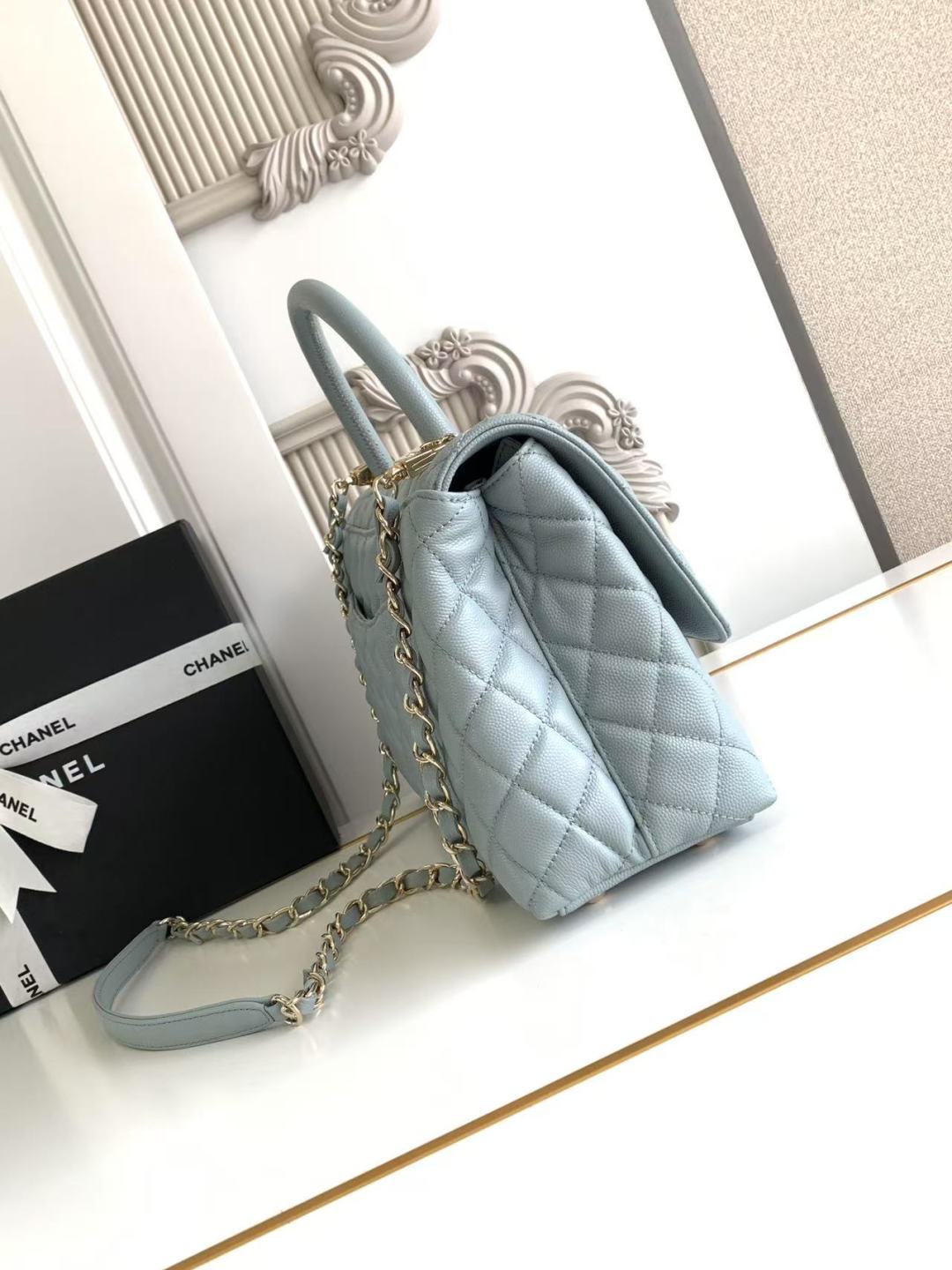 CHANEL Caviar Quilted Small Coco Handle Flap Light Blue 1047611