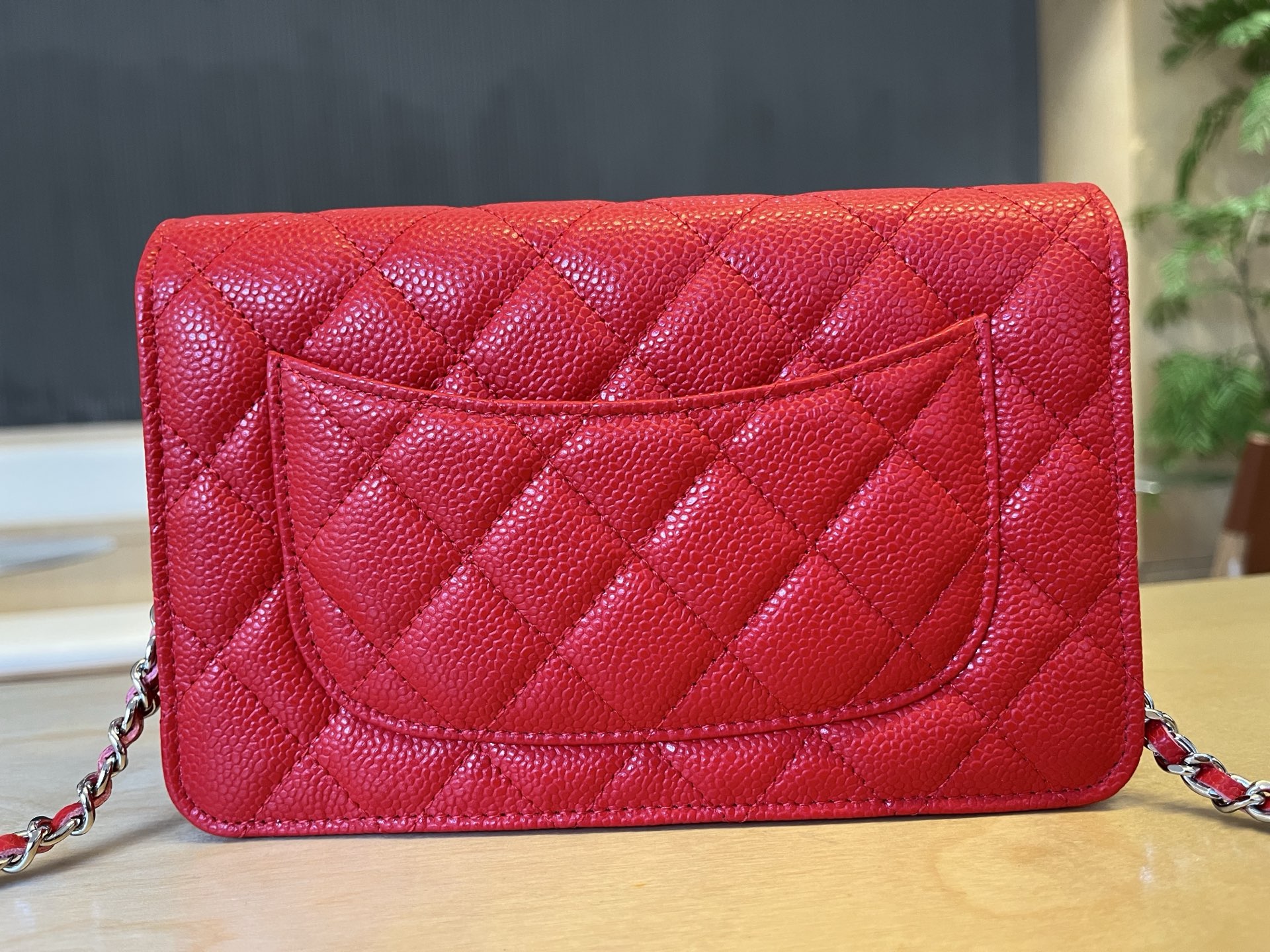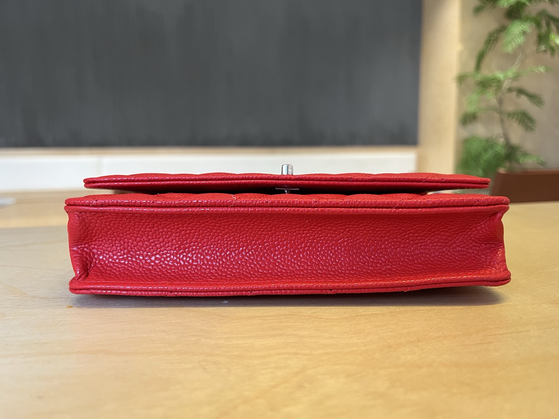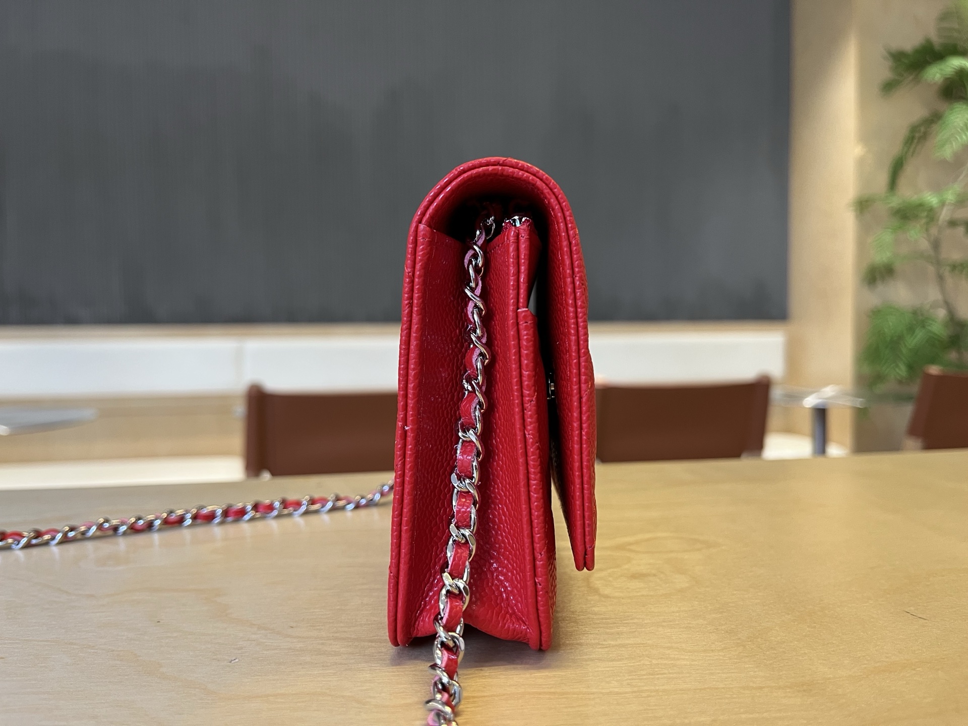 CHANEL Caviar Quilted Wallet On Chain WOC Dark Red