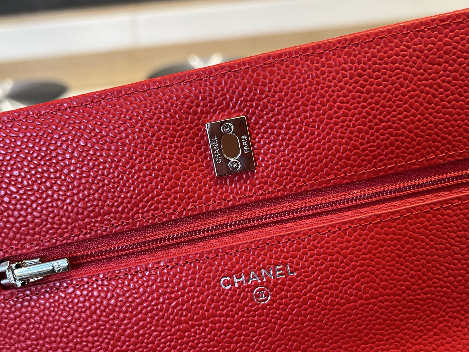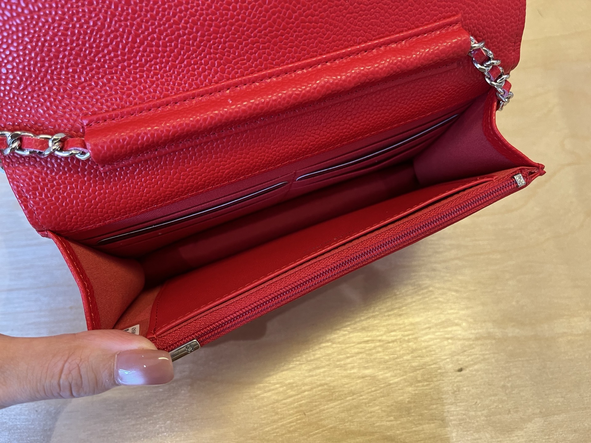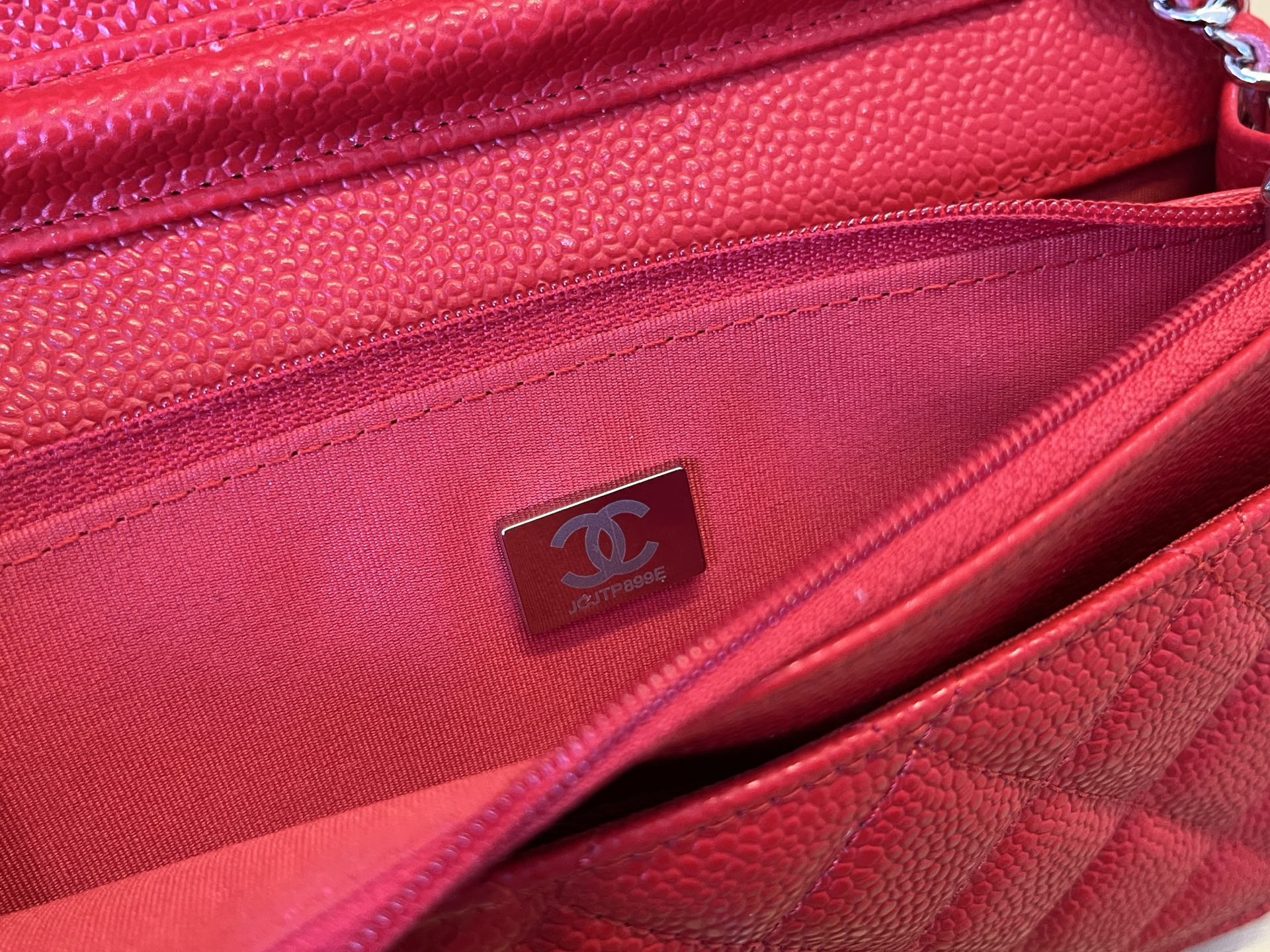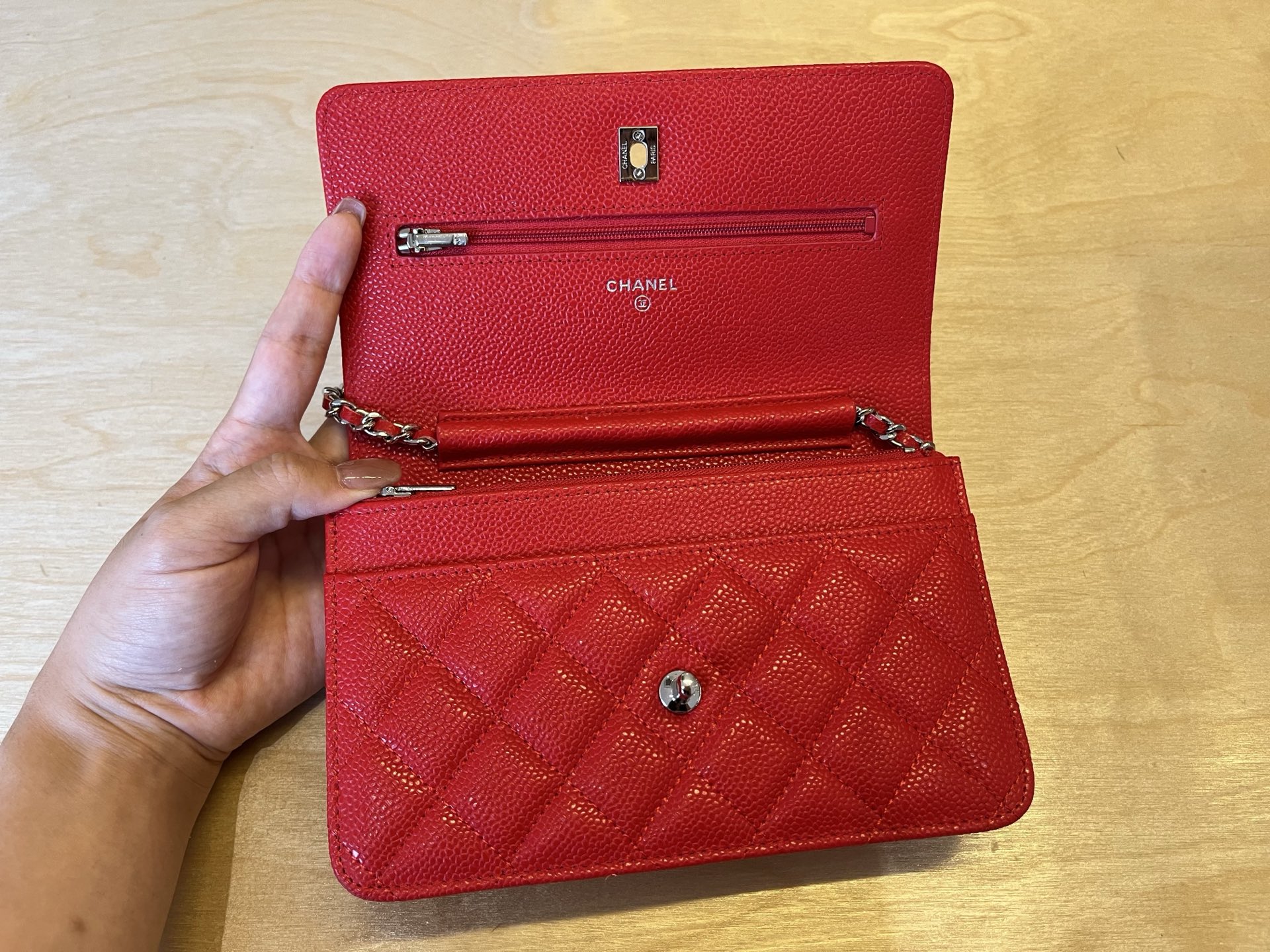 CHANEL Caviar Quilted Wallet On Chain WOC Dark Red