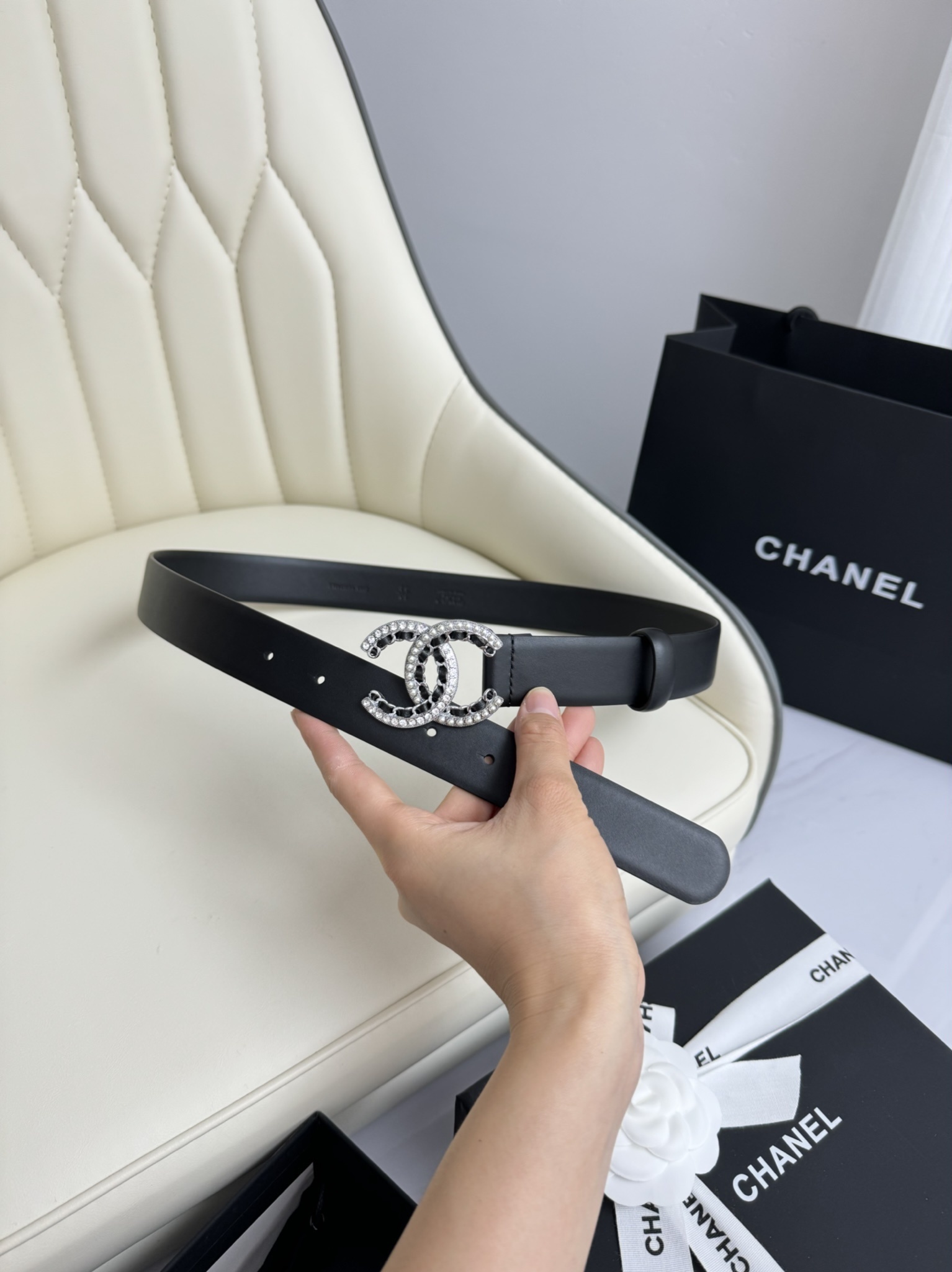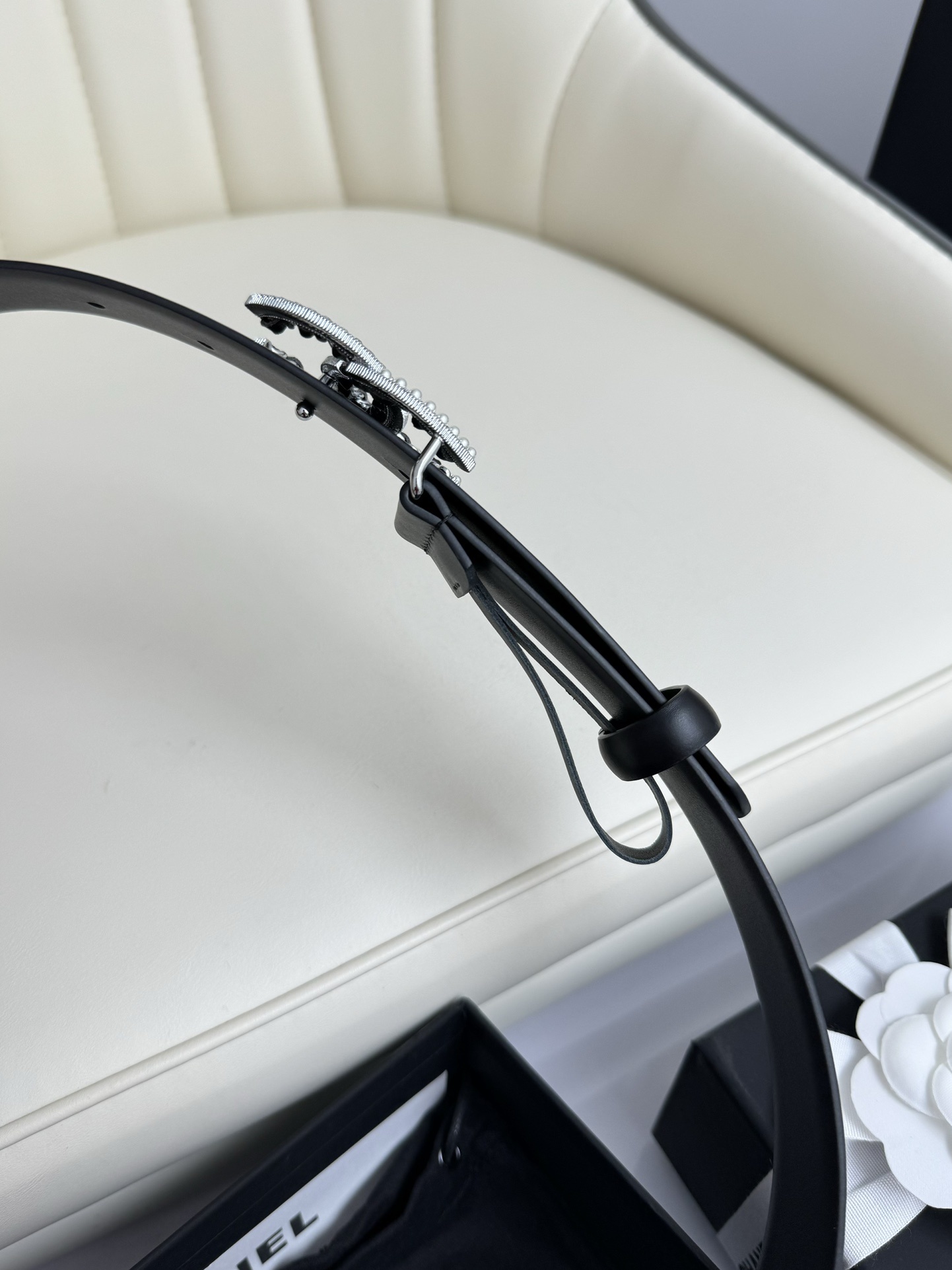 Chanel CC Crystal Buckle Leather Belt - Elegant Black