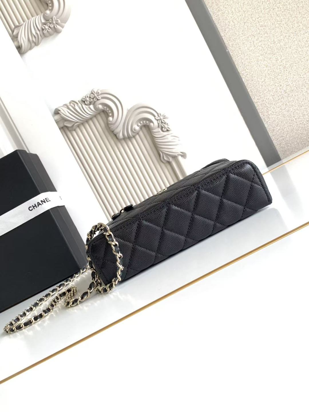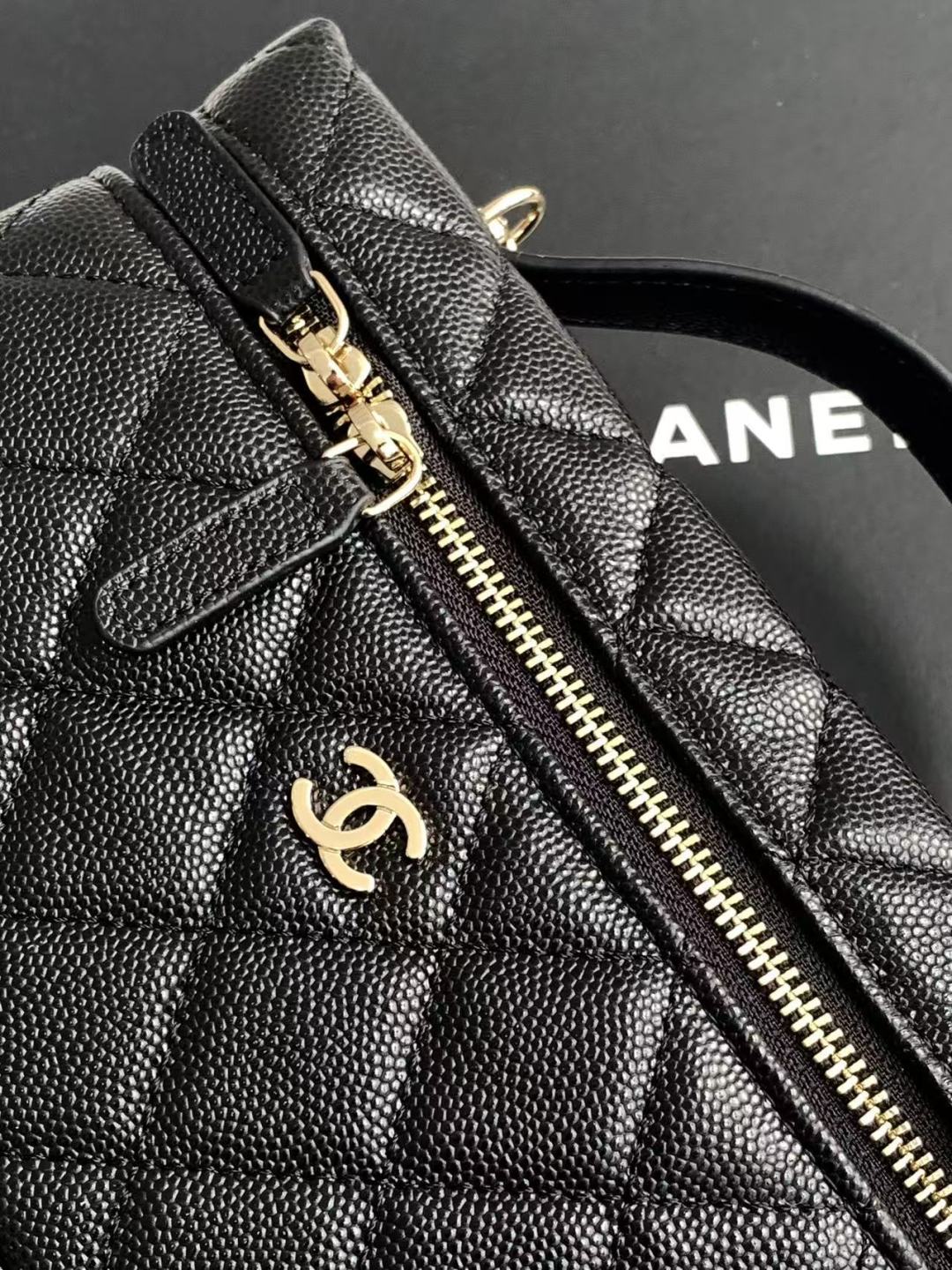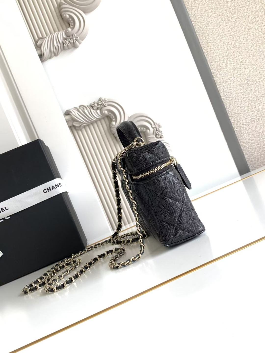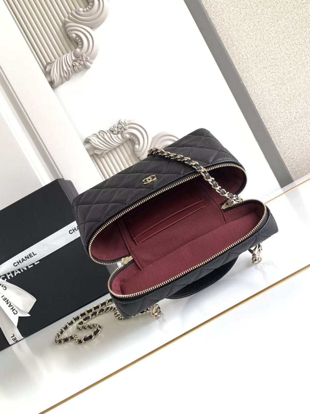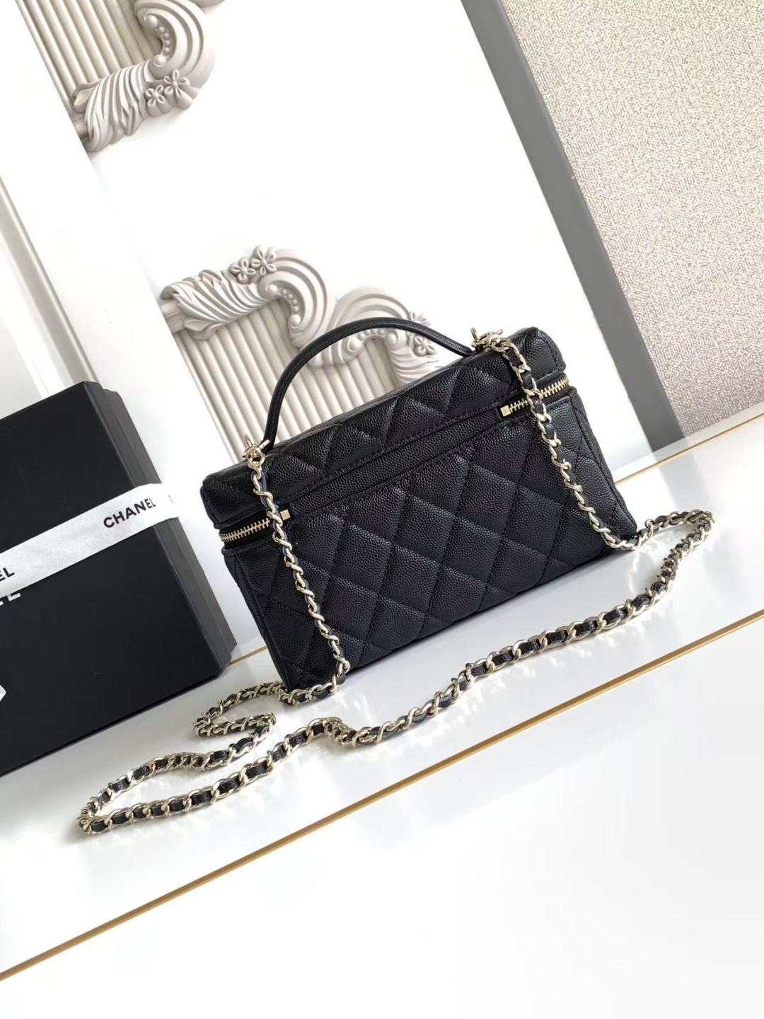 Chanel CC Top Handle Long Vanity Case With Chain Black