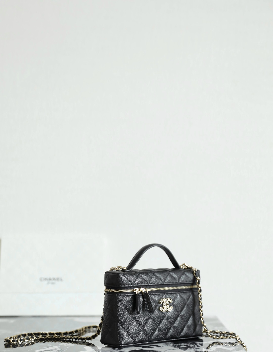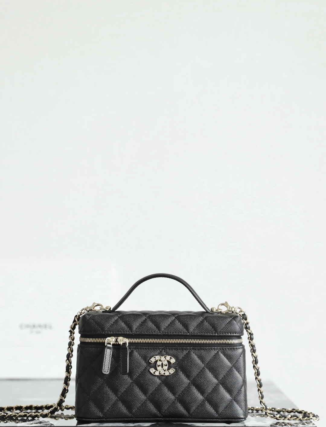 Chanel CC Top Handle Long Vanity Case With Chain Black