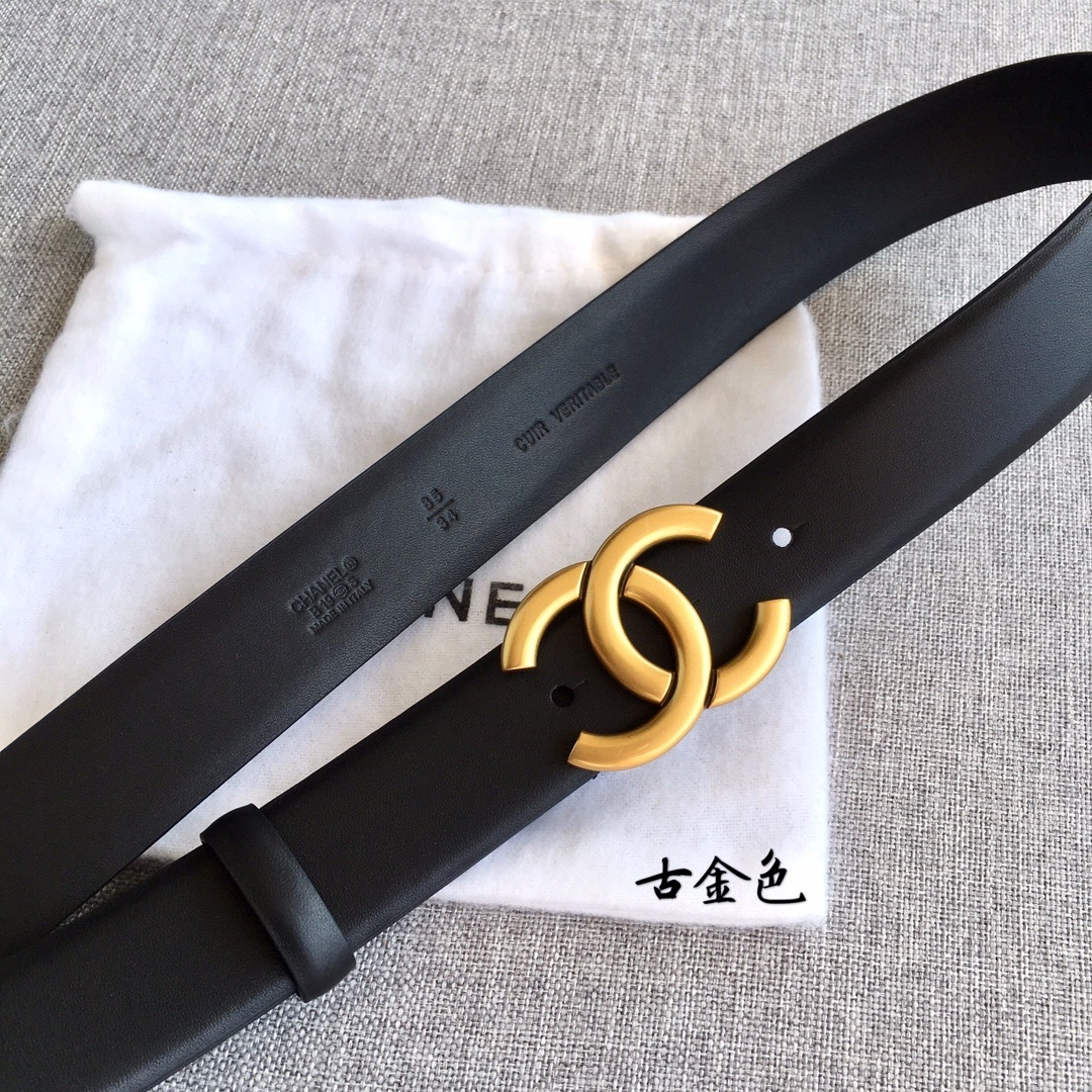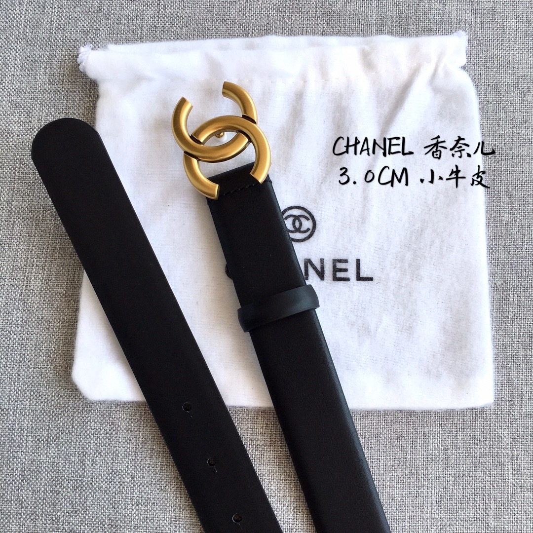 Chanel Classic CC Logo Belt 3.0cm - Premium Black Calfskin
