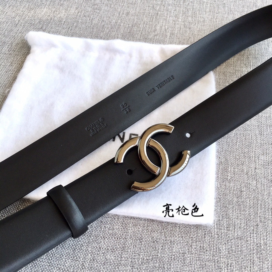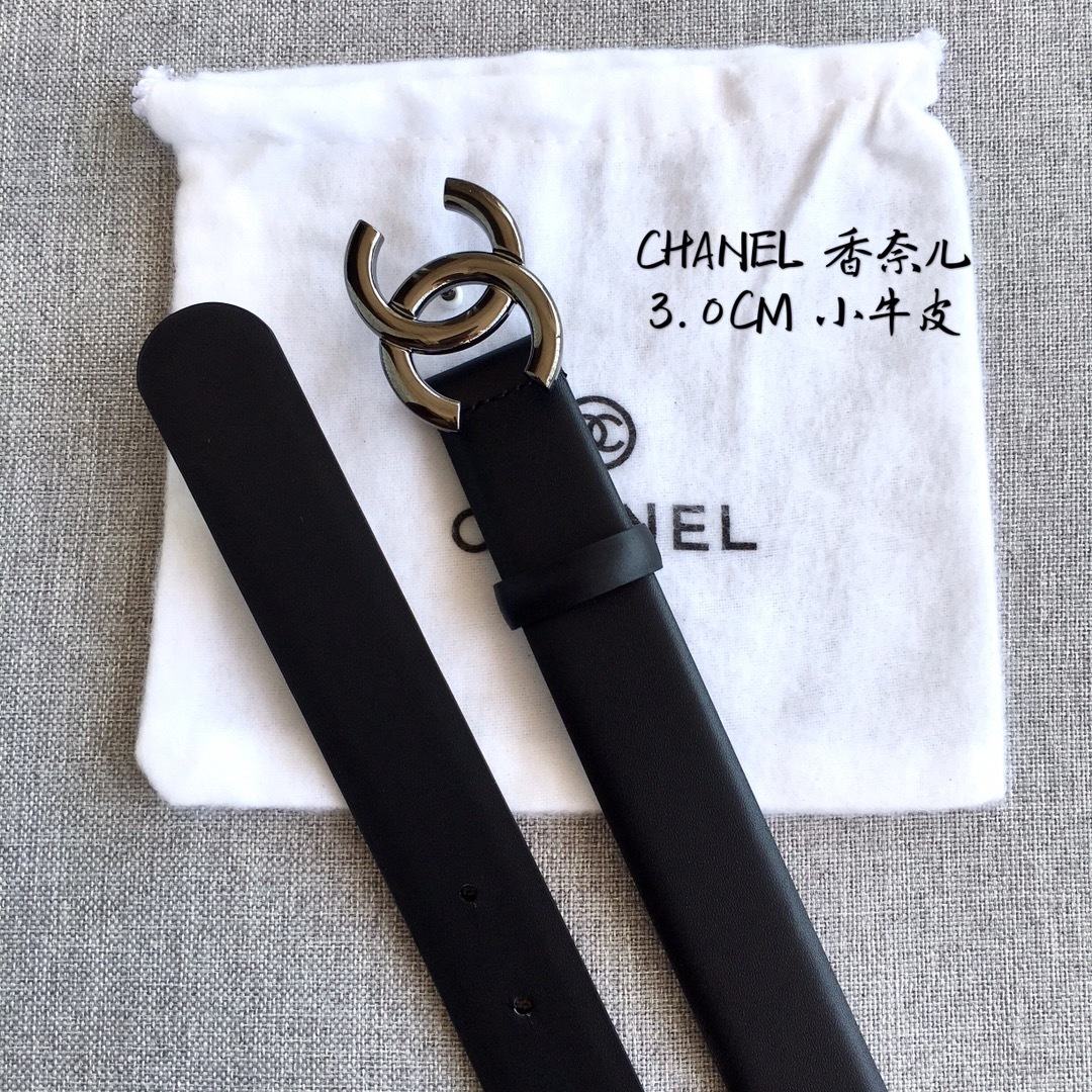 Chanel Classic CC Logo Calfskin Belt - 3.0cm Black Leather