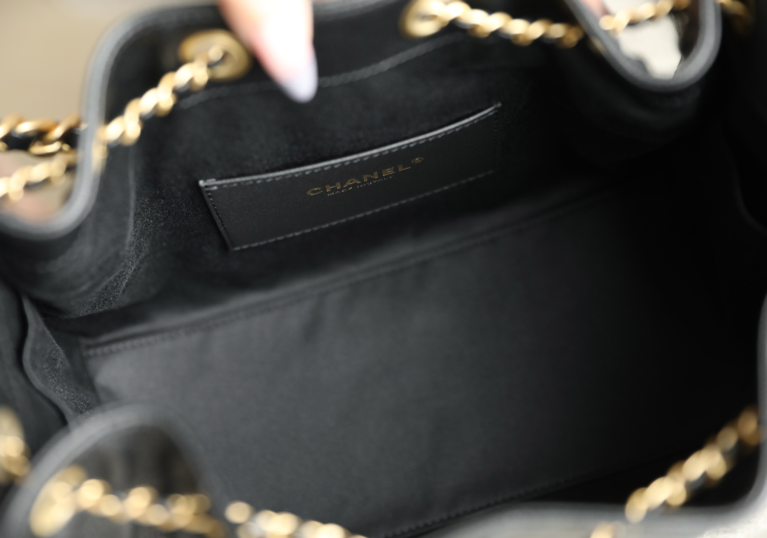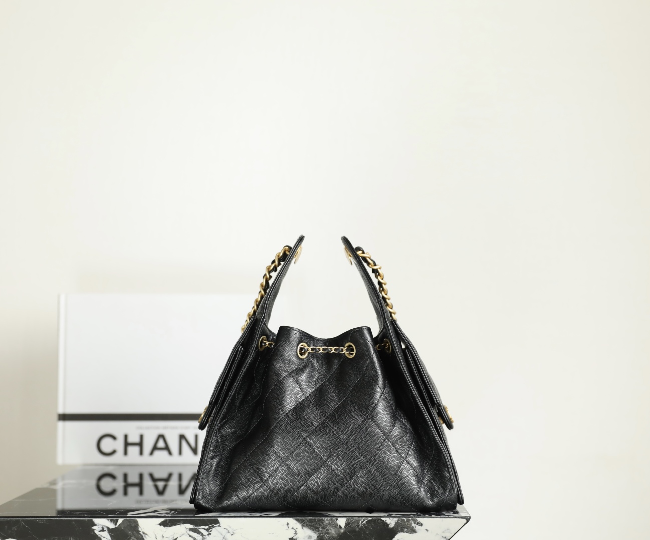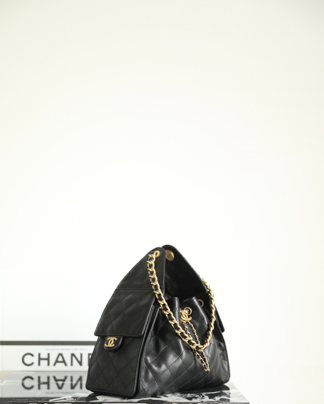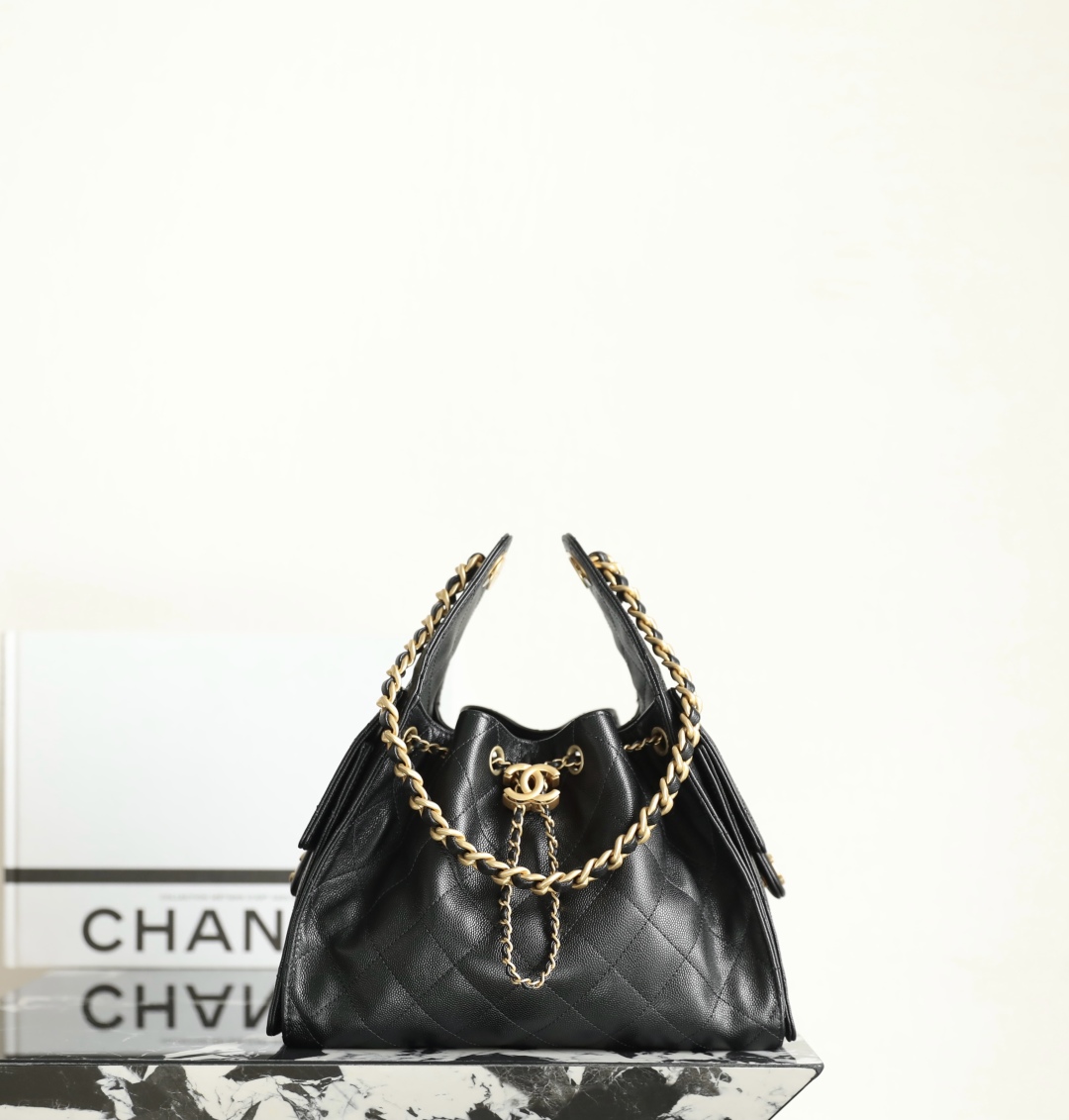 Chanel Clutch with chain - Mesh, shiny lambskin & gold-tone metal, black