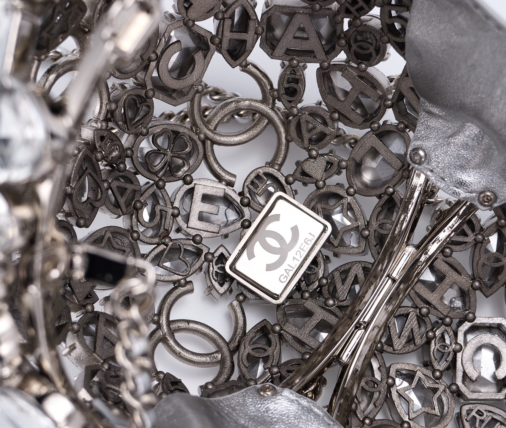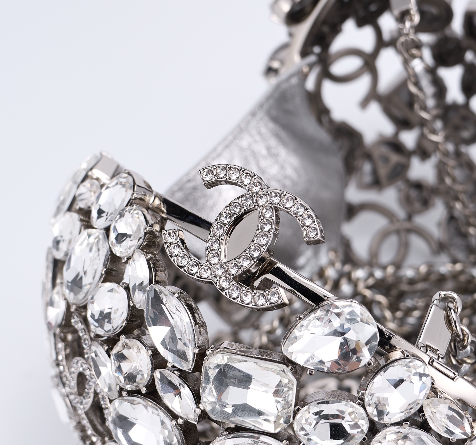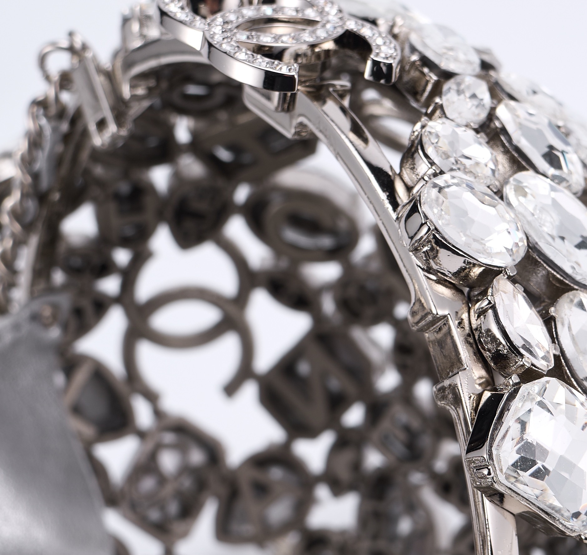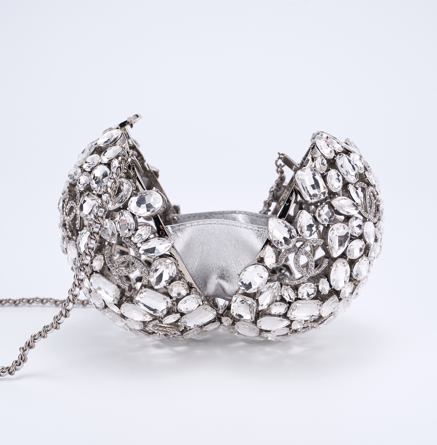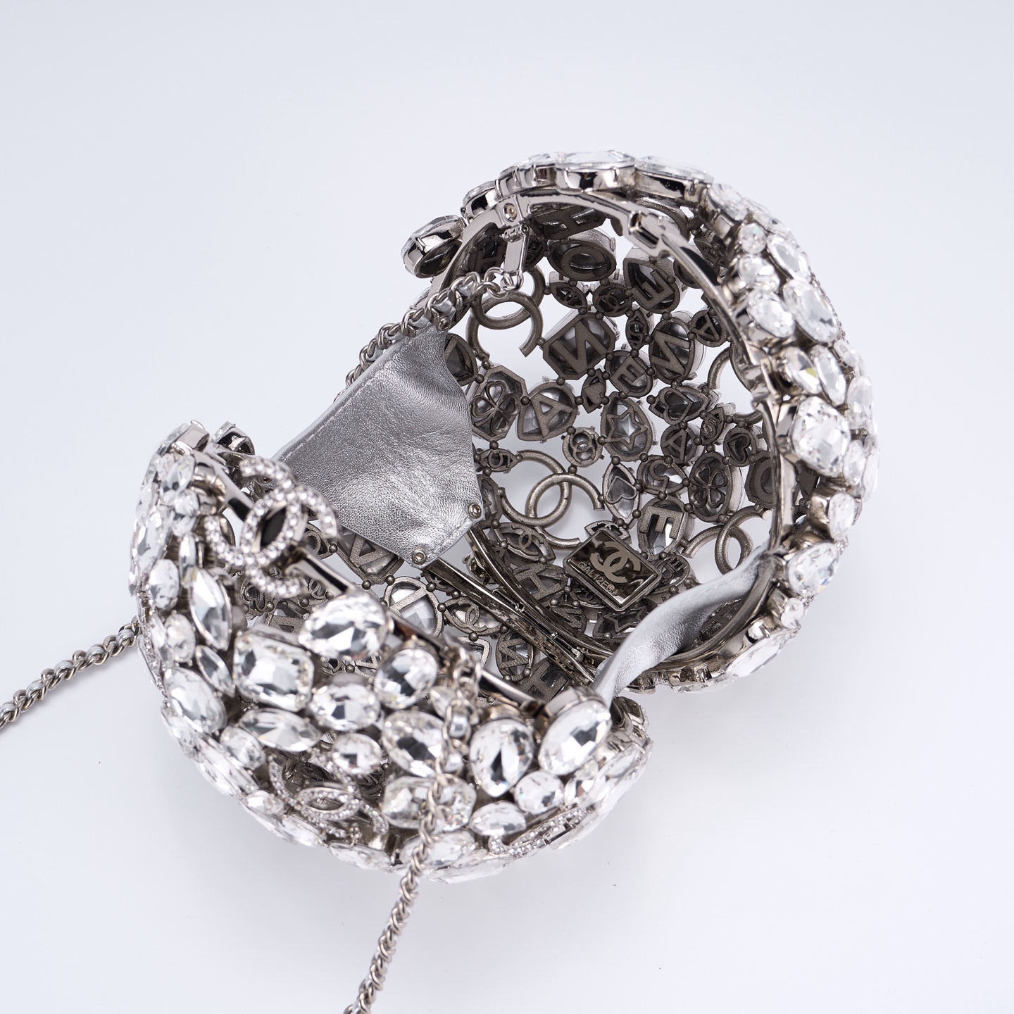 CHANEL Crystal Ball CC Necklace Silver 75072