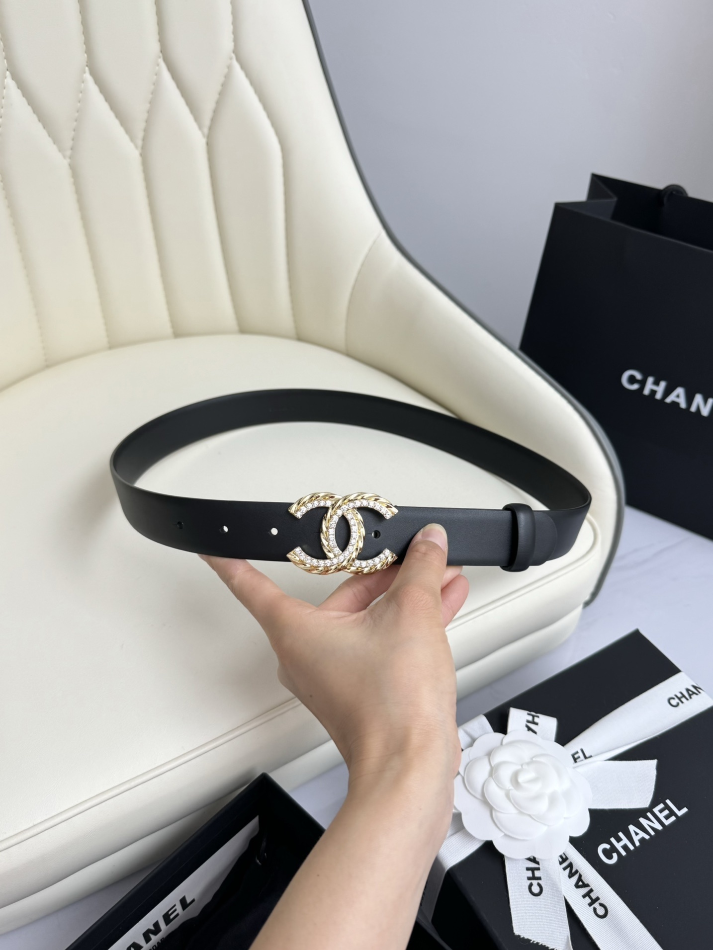 Chanel Crystal CC Buckle Black Leather Belt for Women