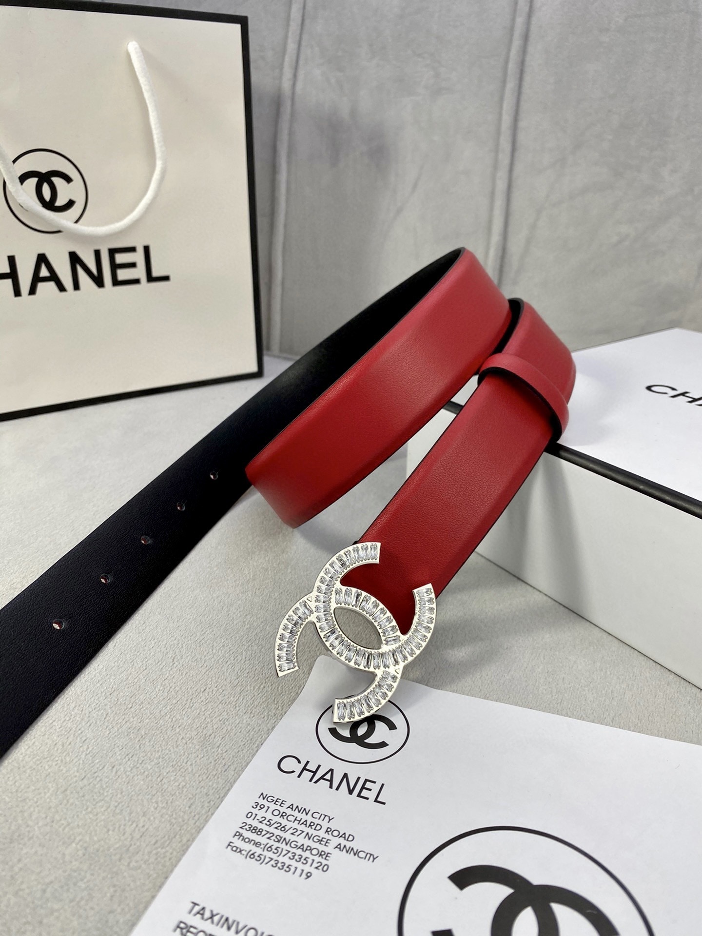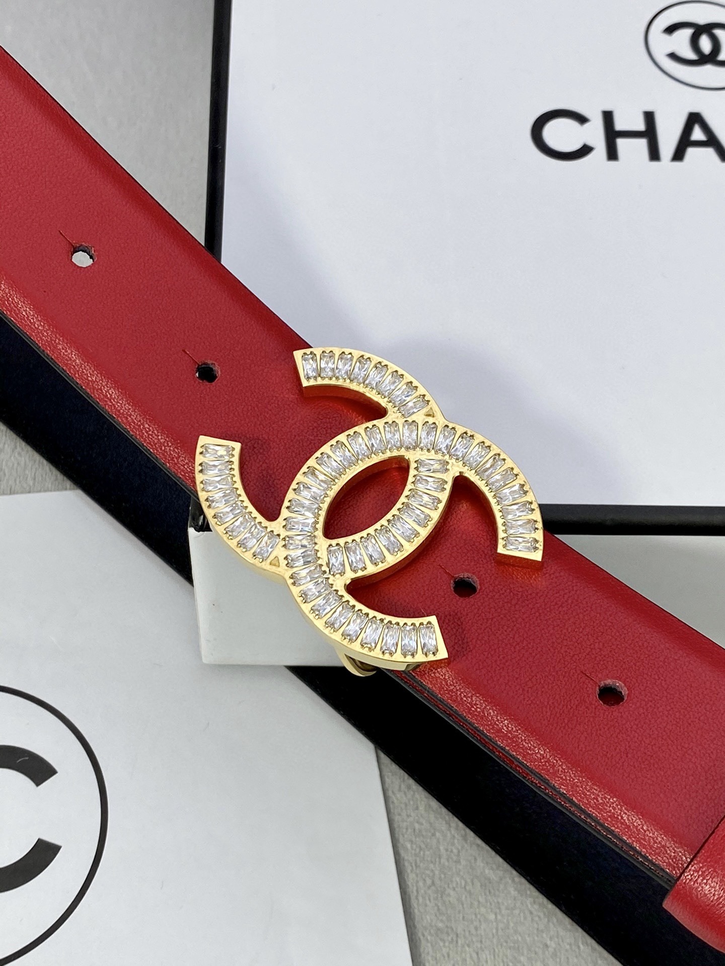 Experience the pinnacle of luxury fashion. Order your Chanel Crystal CC Buckle Red Leather Belt today and redefine your style.