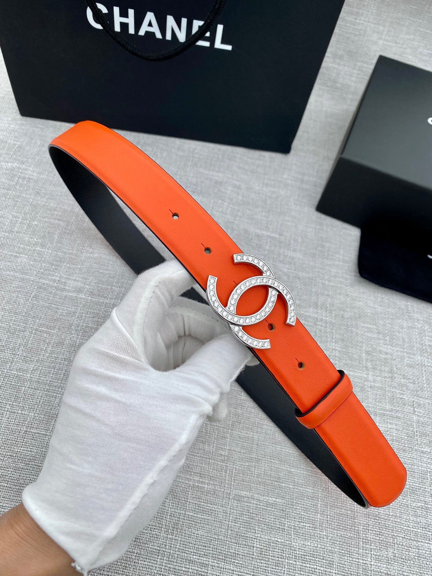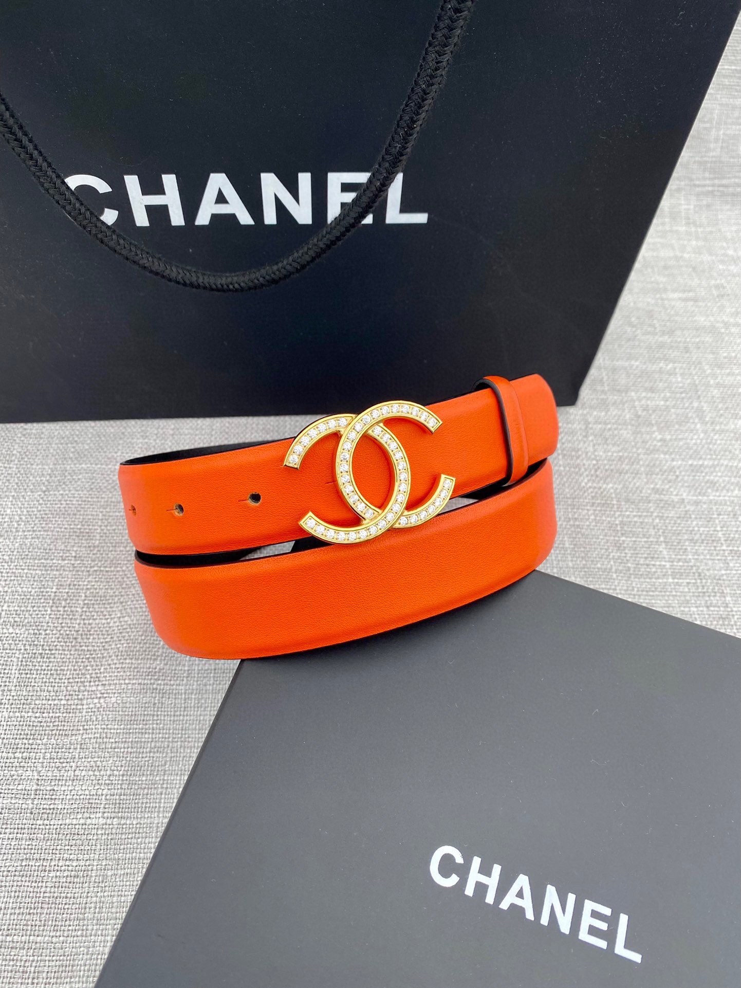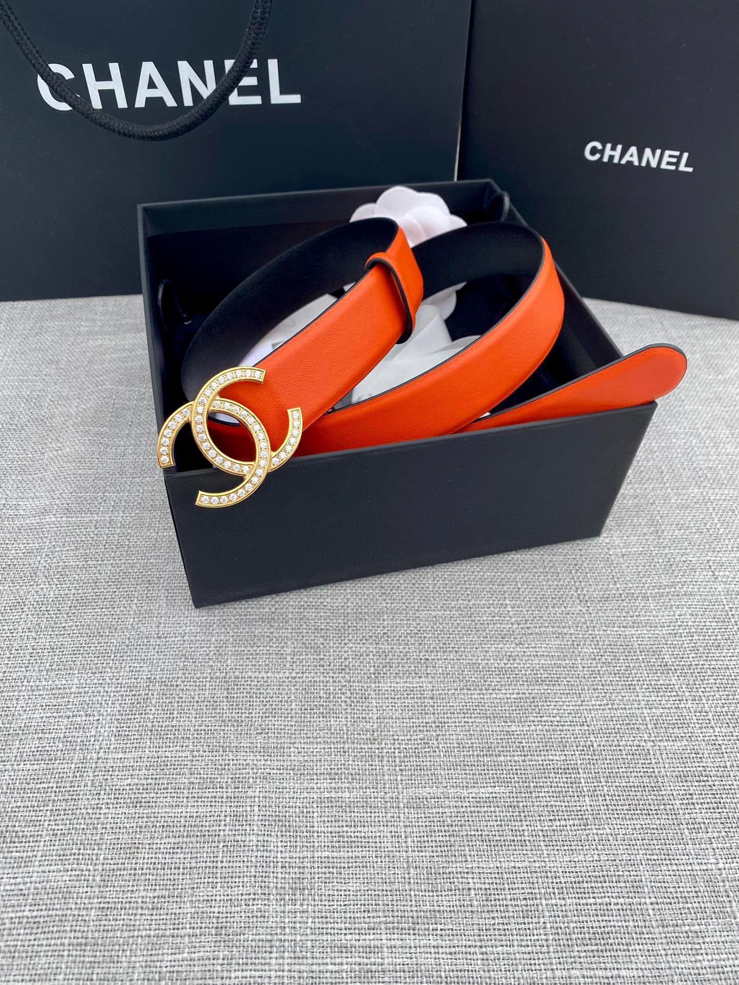 Exquisite Elegance: The Chanel Crystal CC Orange Leather Belt