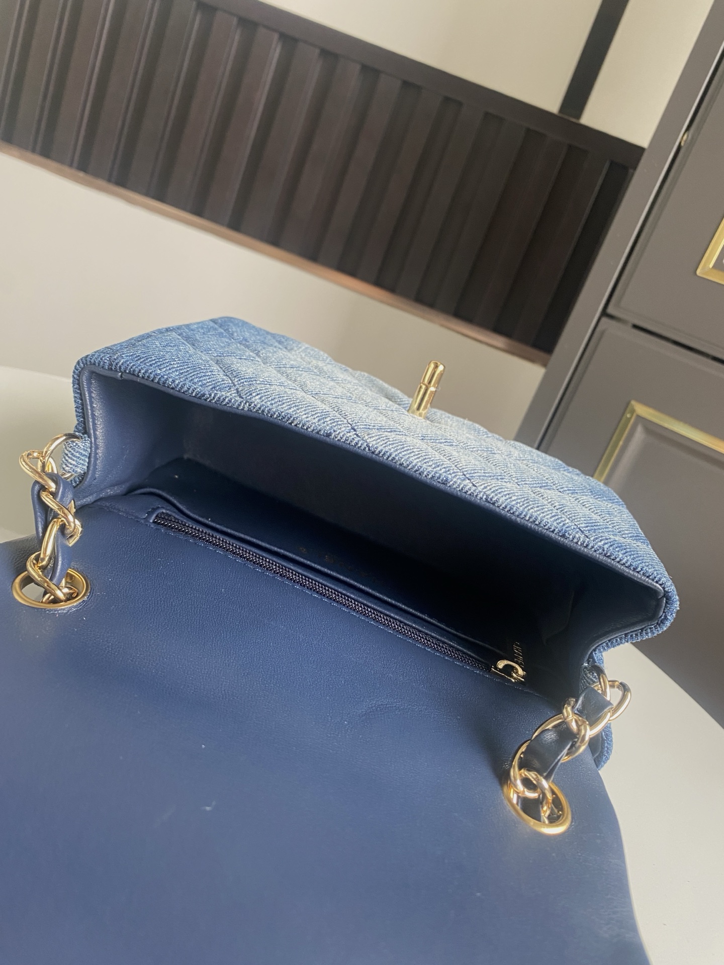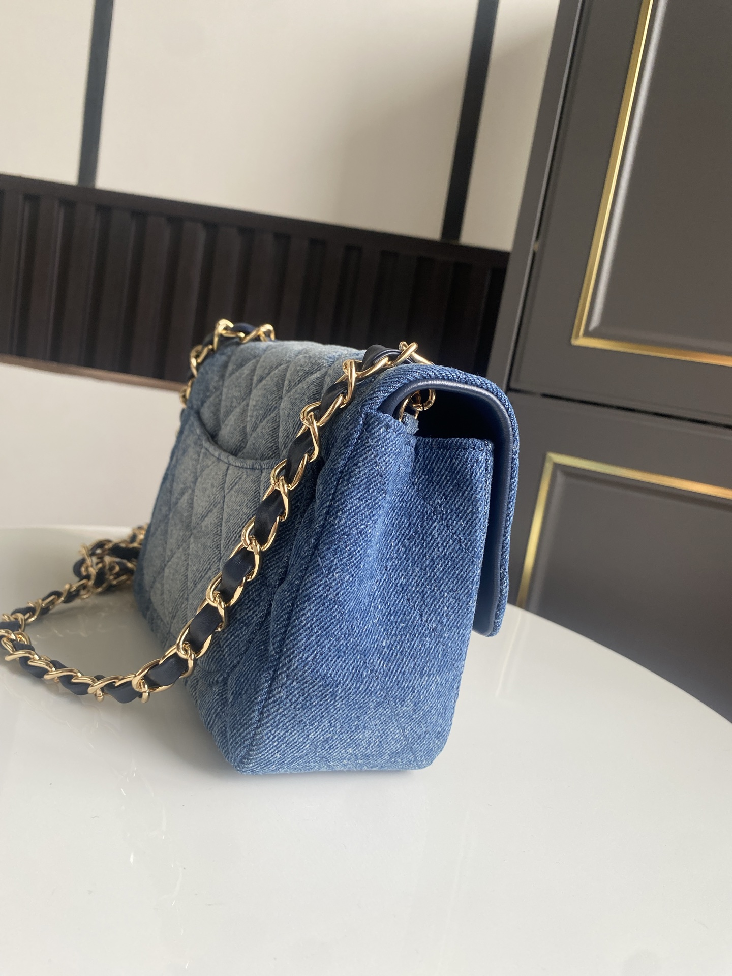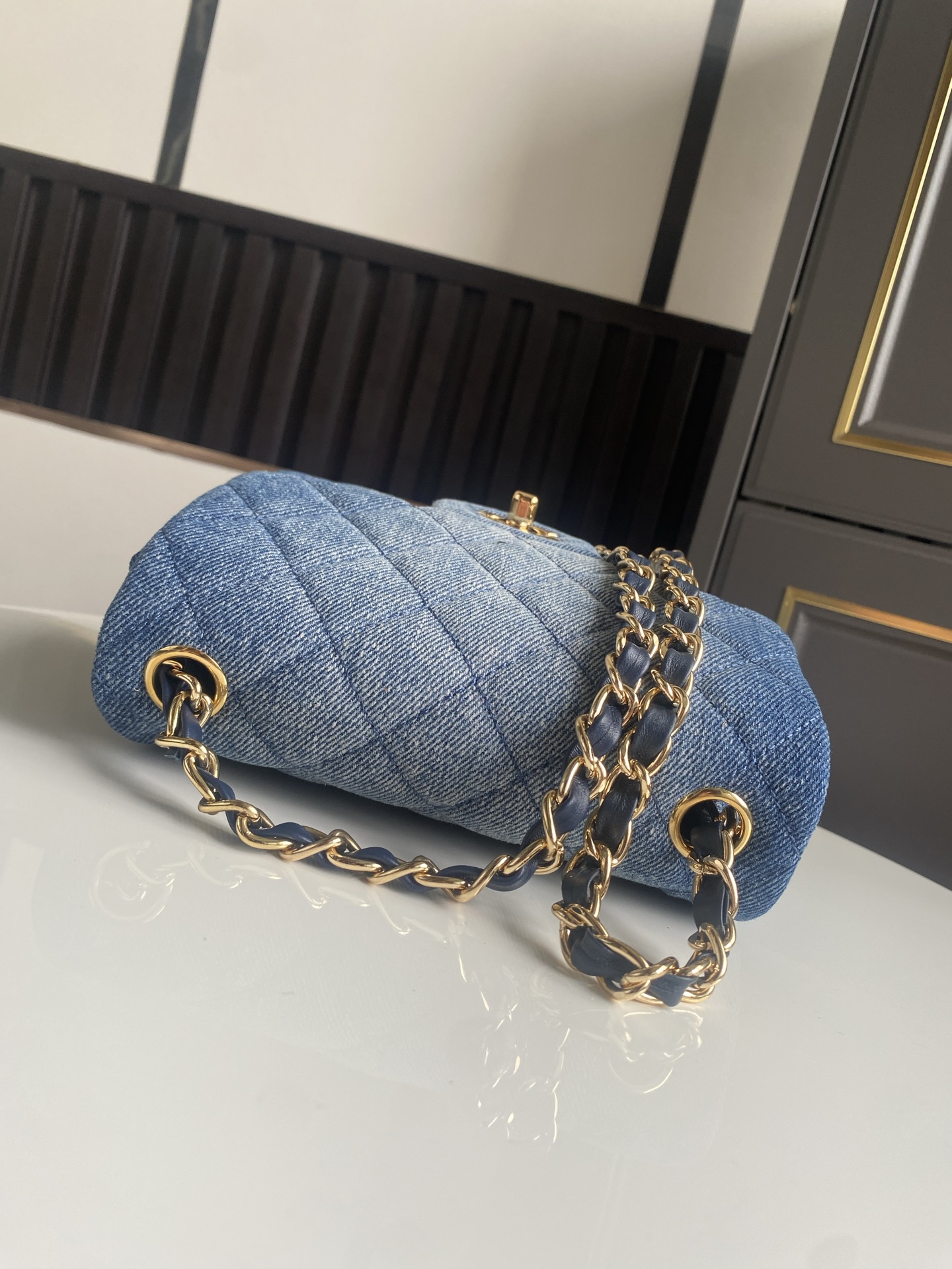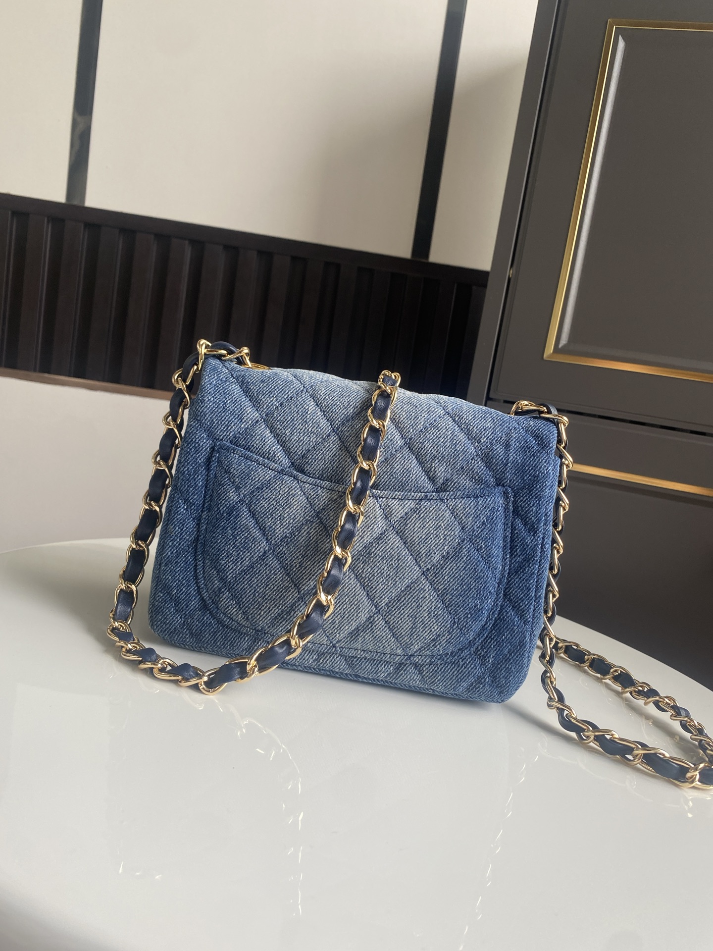 CHANEL Denim Quilted Mini Pearl Crush Flap Blue 1599473 |