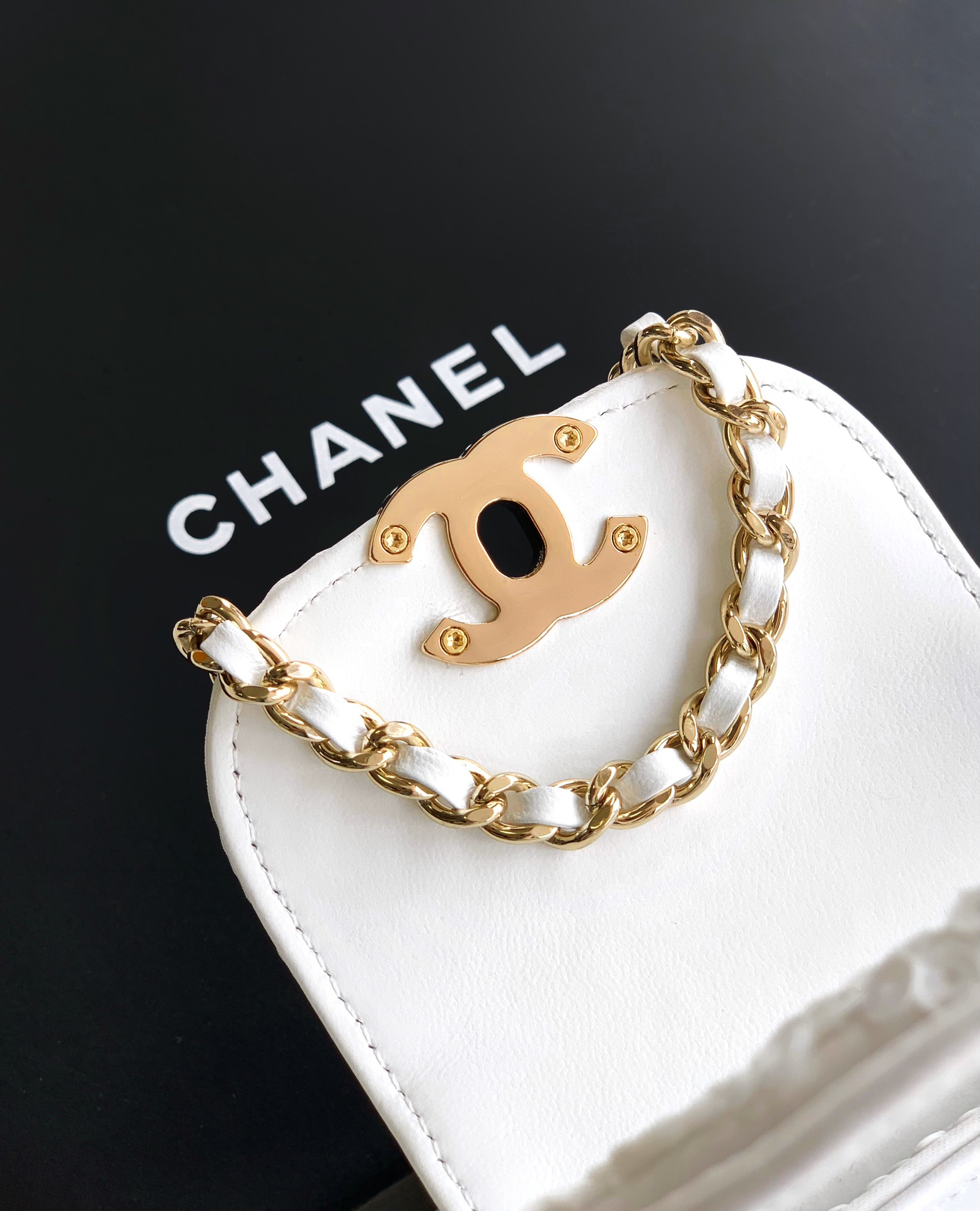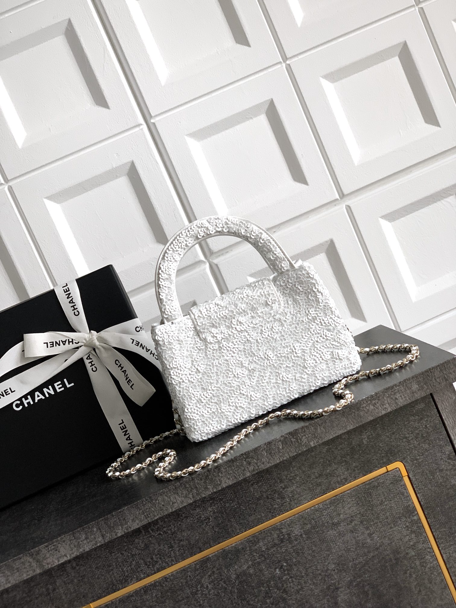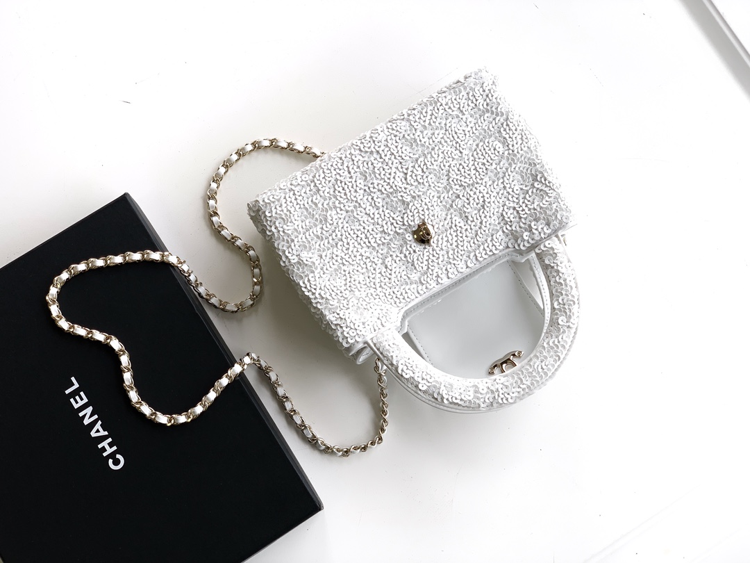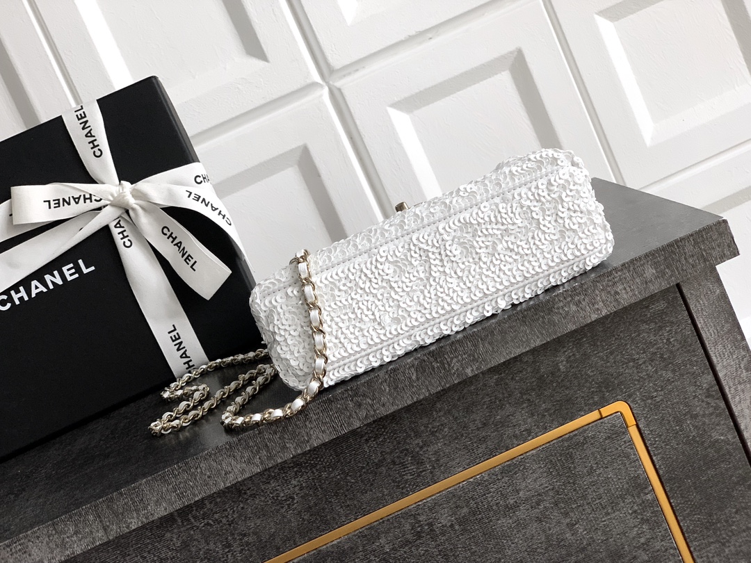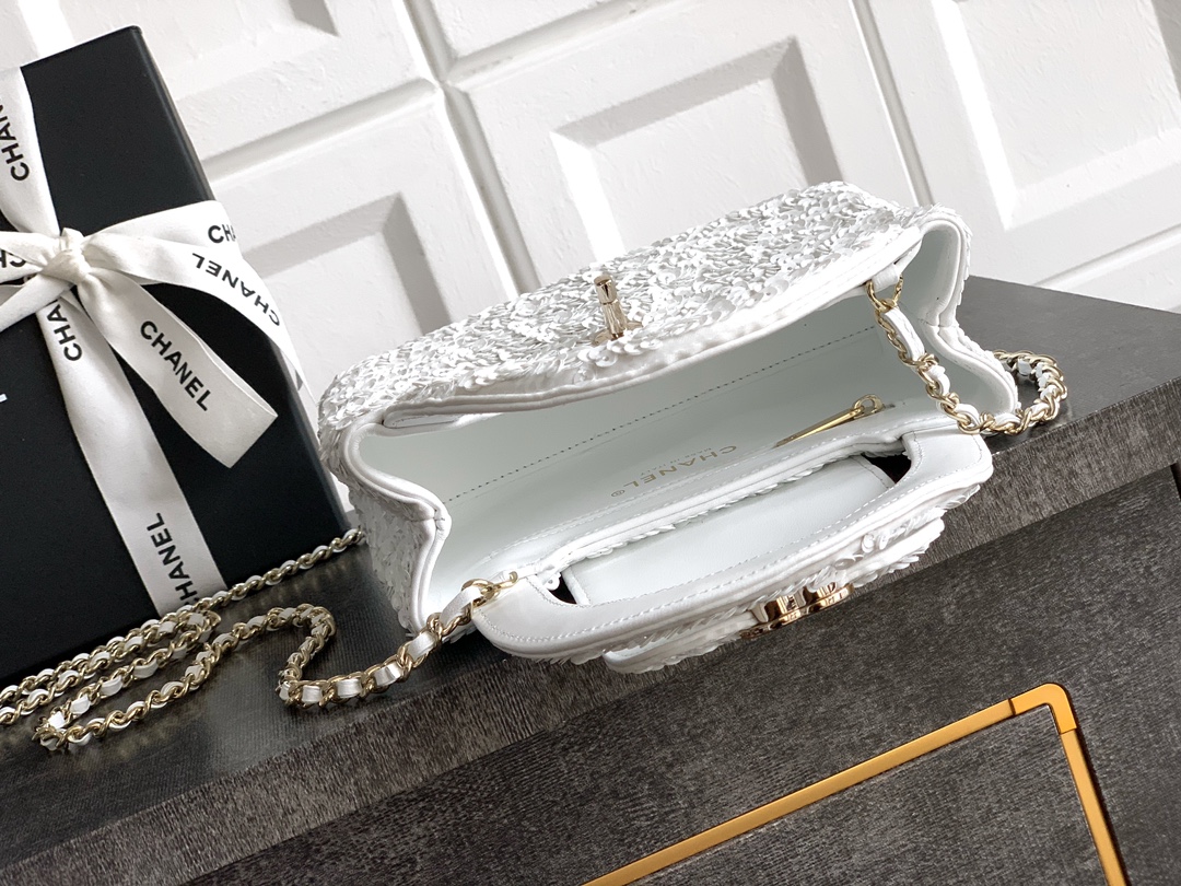 Chanel Flap bag, Quilted sequins & gold-tone metal, white