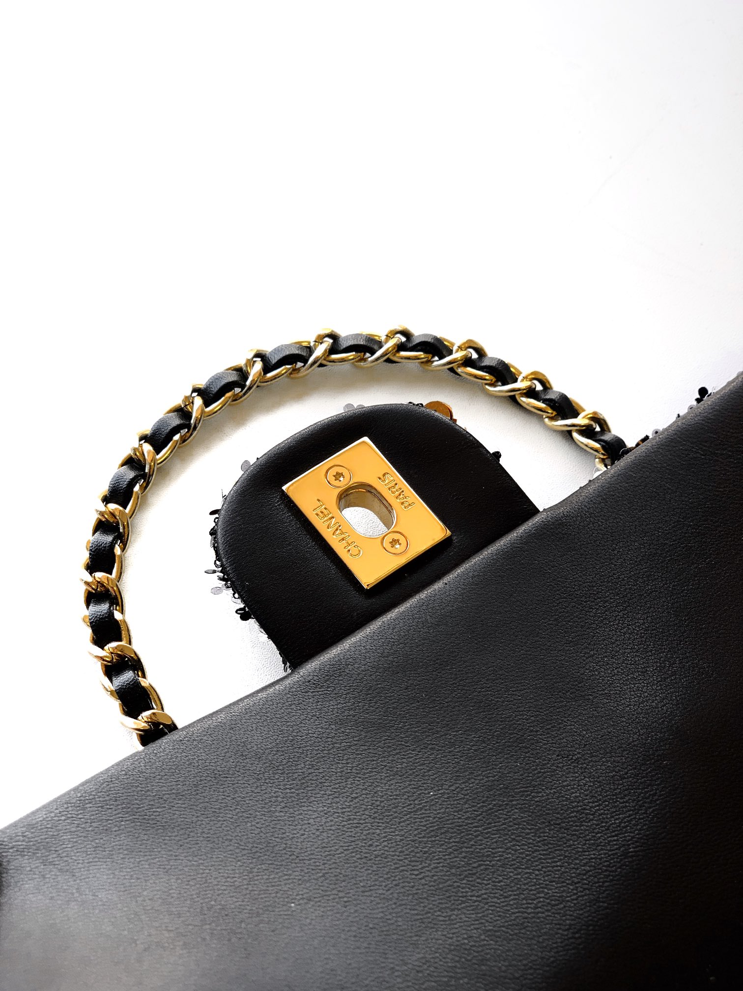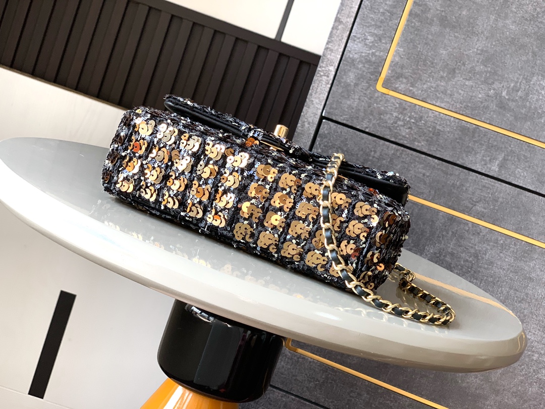 Chanel Flap bag, Sequins & gold-tone metal, golden & black