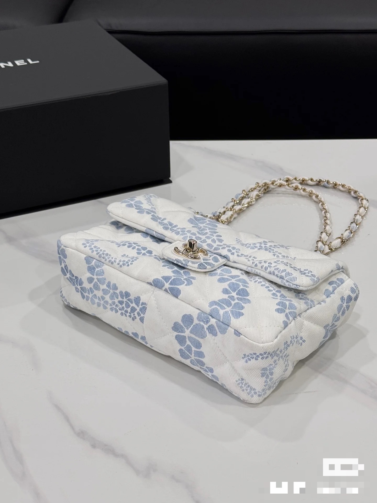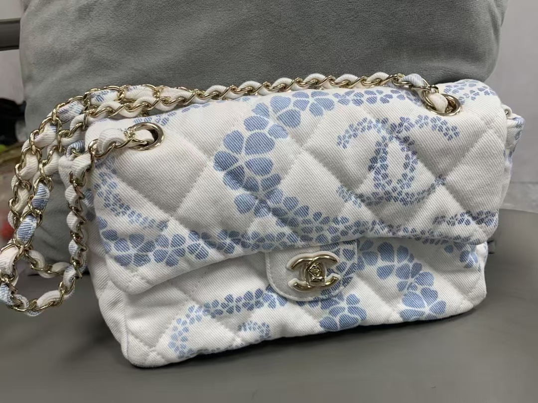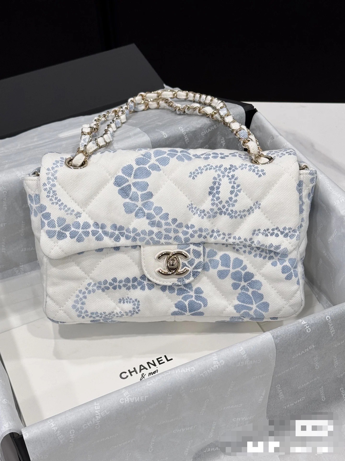 Chanel Headband - Printed denim, white & blue