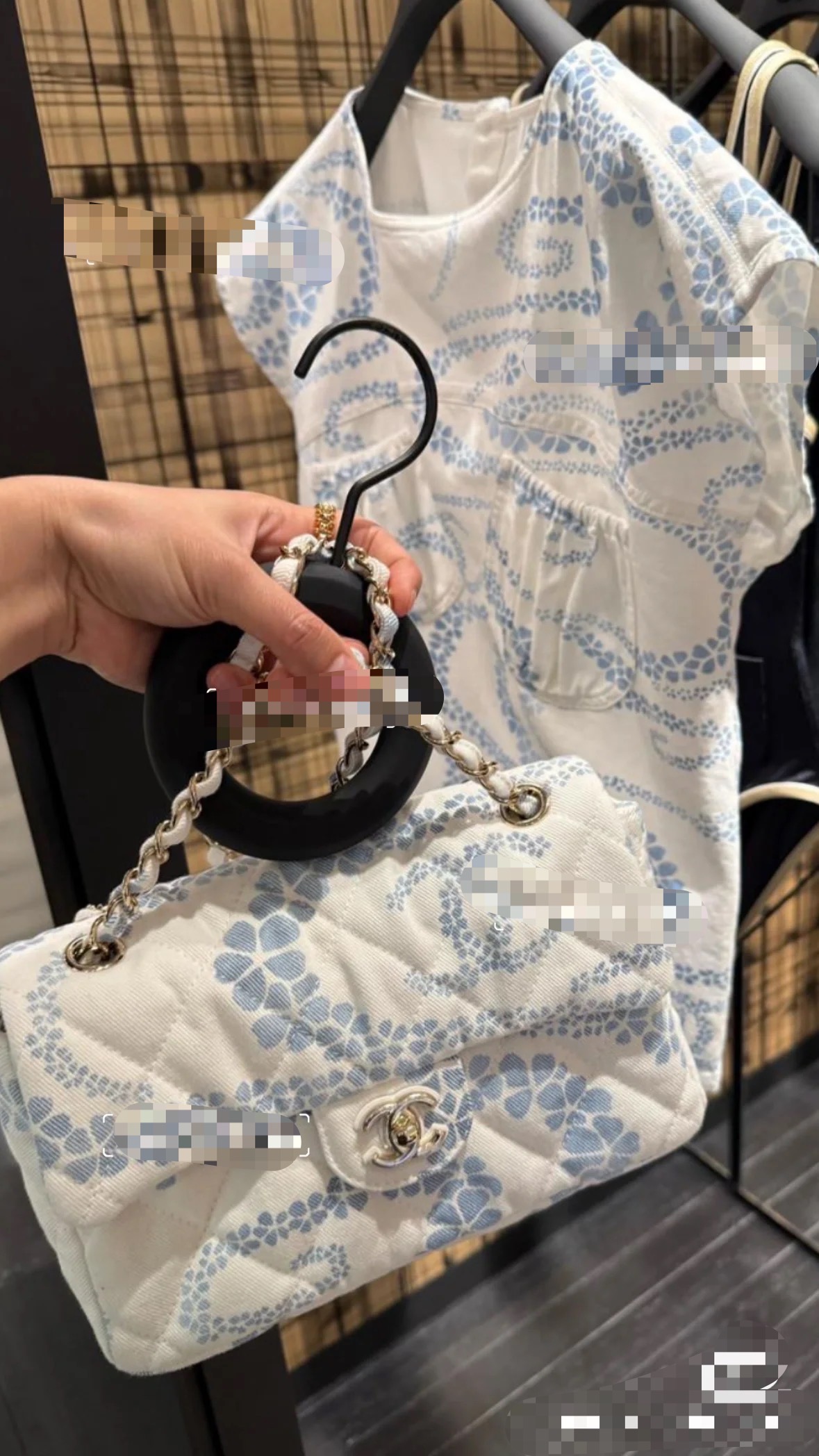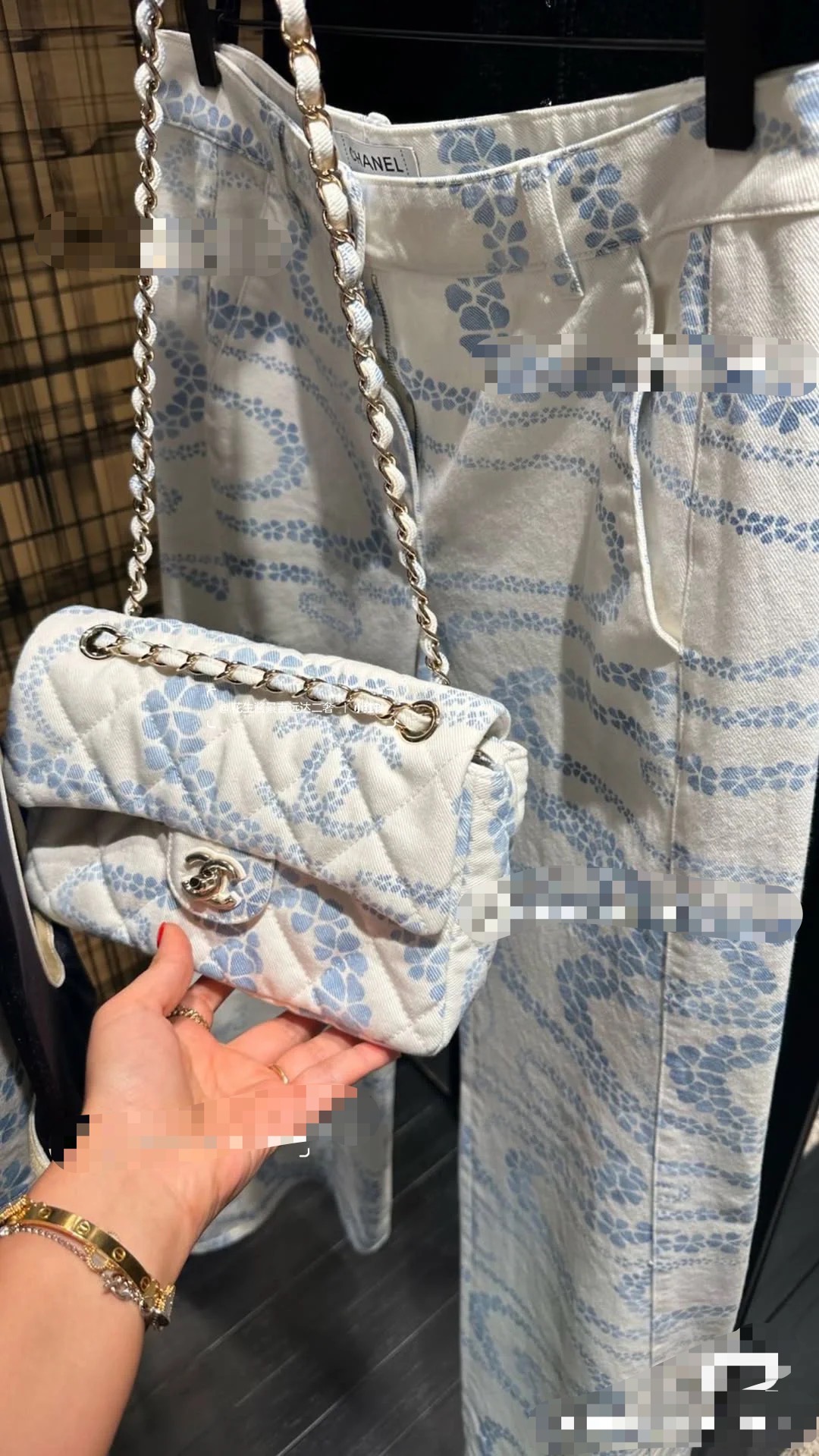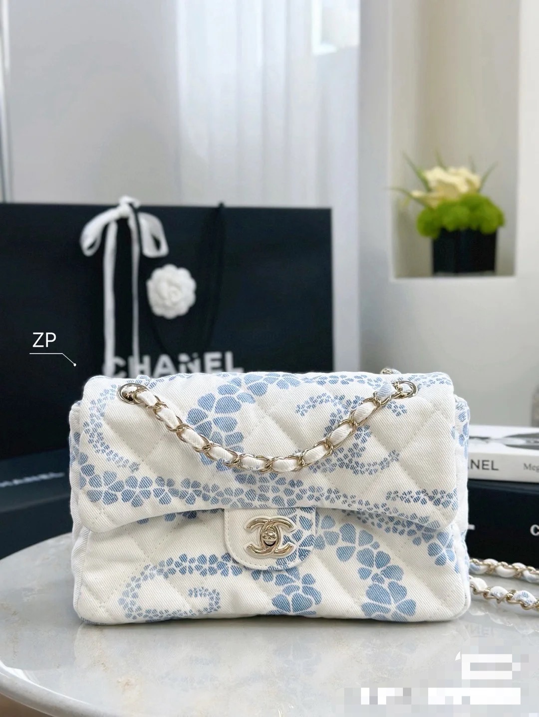 Chanel Headband - Printed denim, white & blue