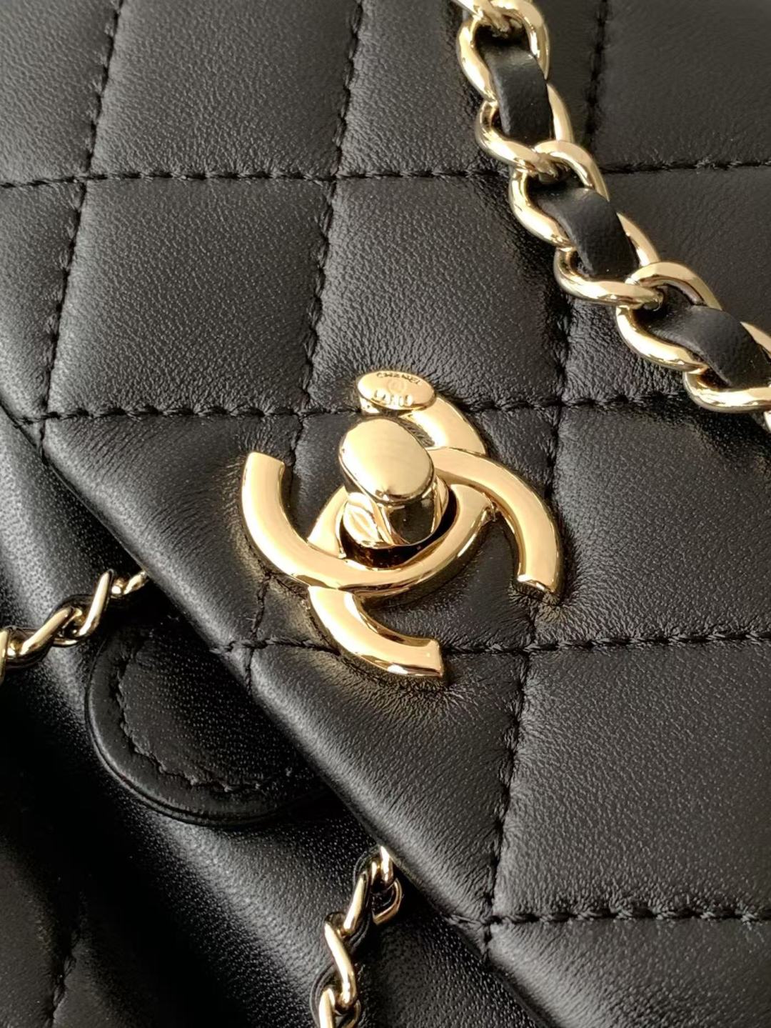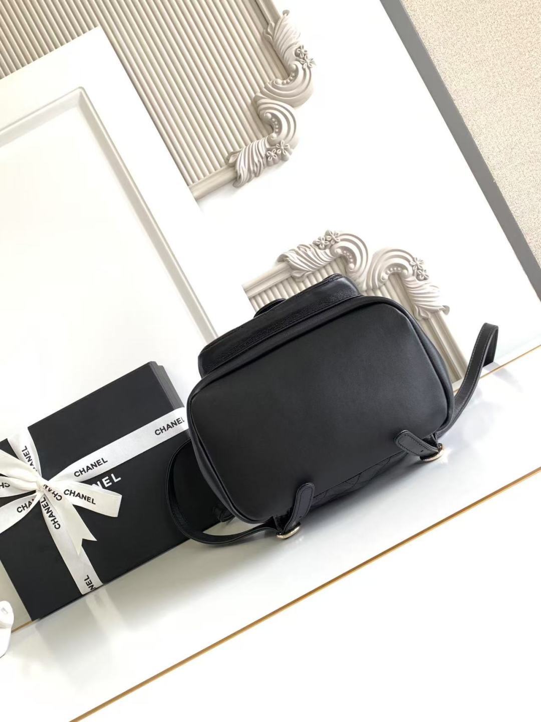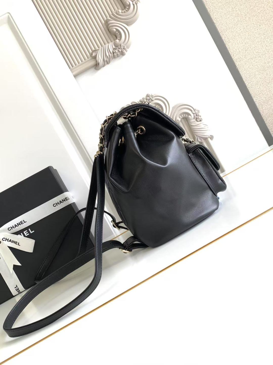 CHANEL Lambskin Quilted Small Duma Drawstring black