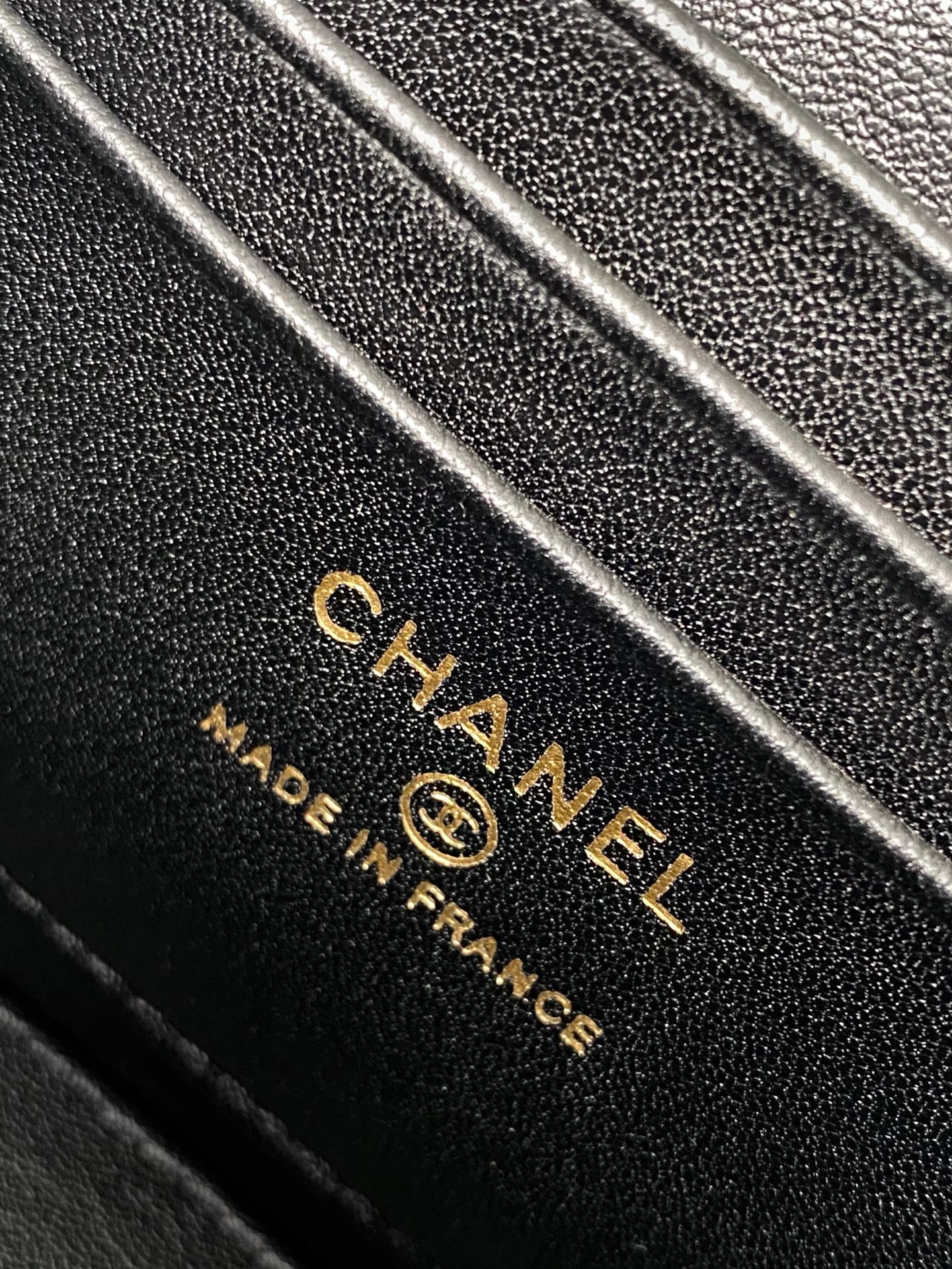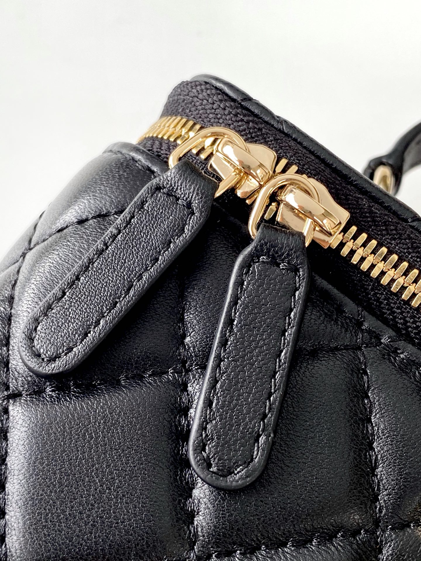 CHANEL Lambskin Quilted Small Top Handle Vanity Case With Chain Black 1388561