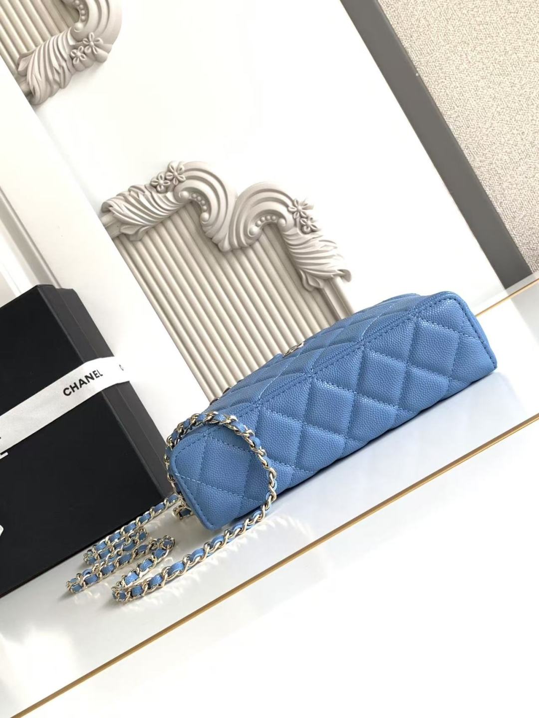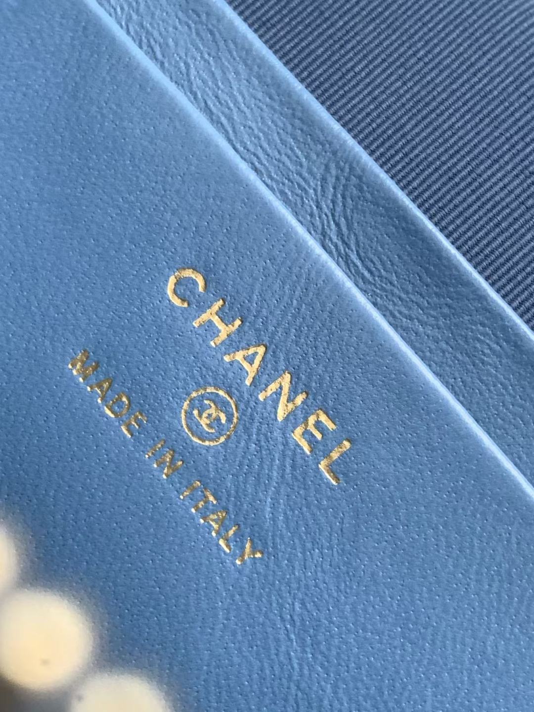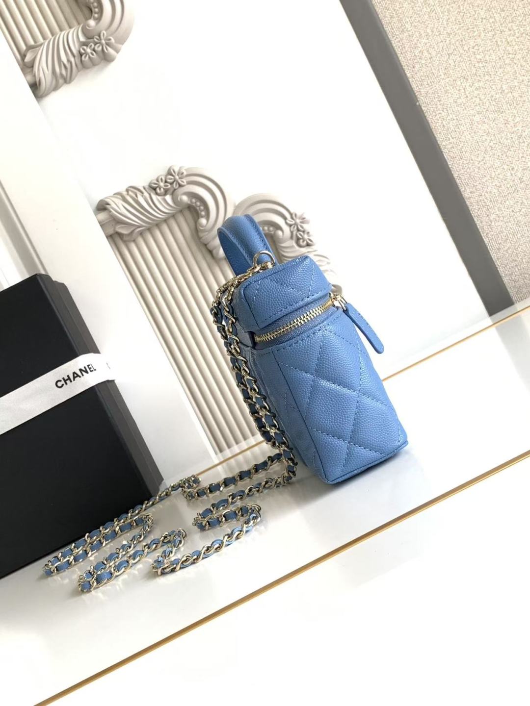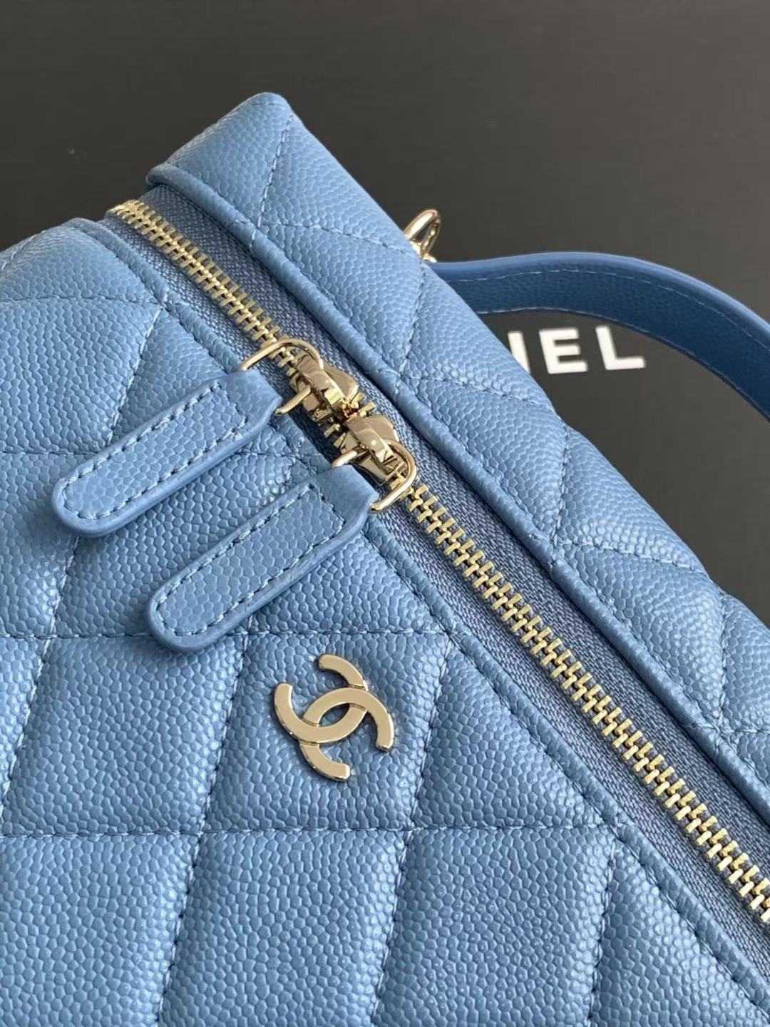 Chanel Lambskin Quilted Small Top Handle Vanity Case With Chain Blue