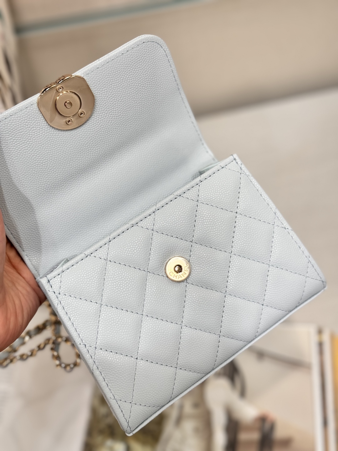 CHANEL Lambskin Quilted Small Trendy CC Flap Dual Handle Bag Light Blue 16655