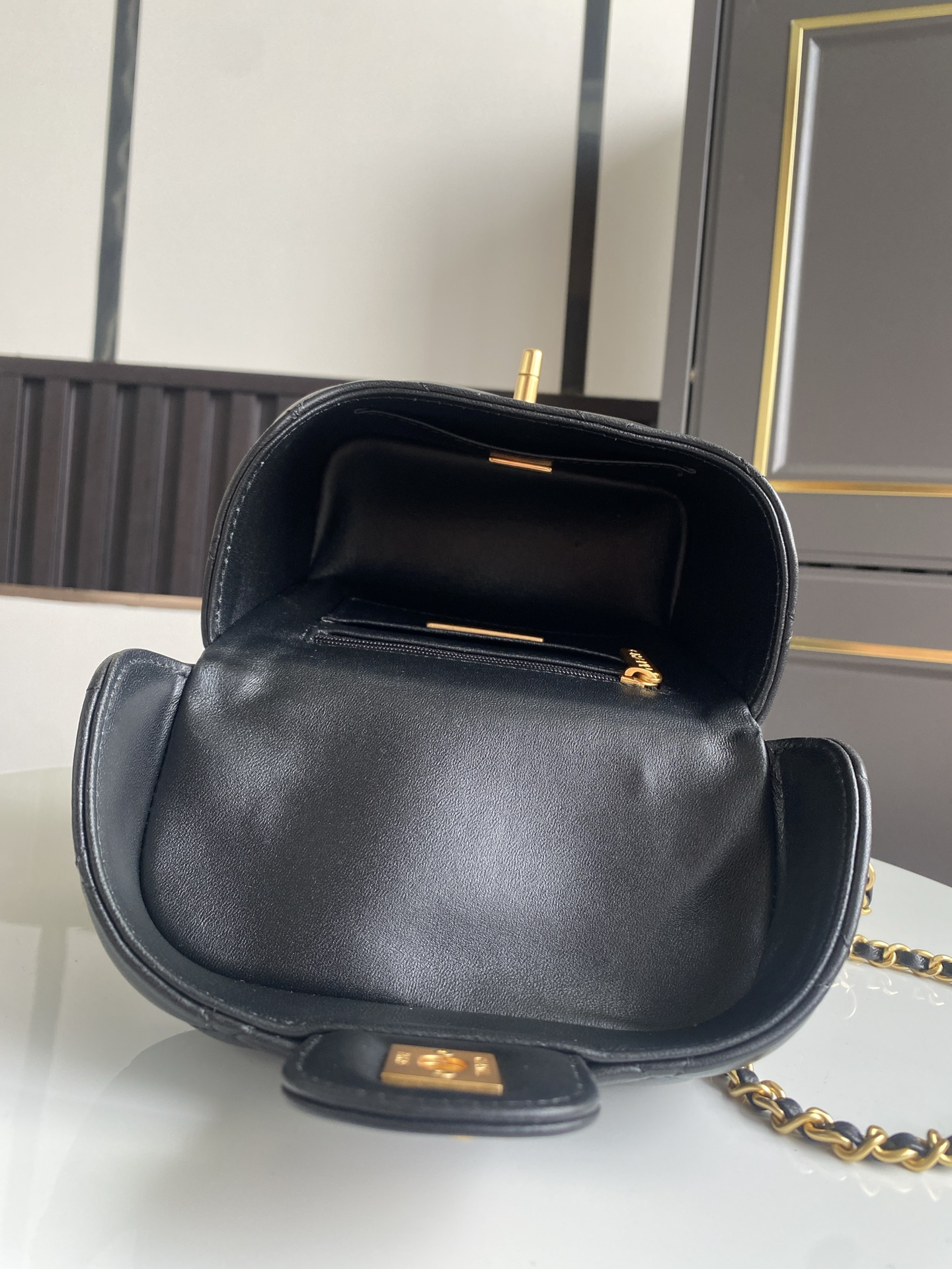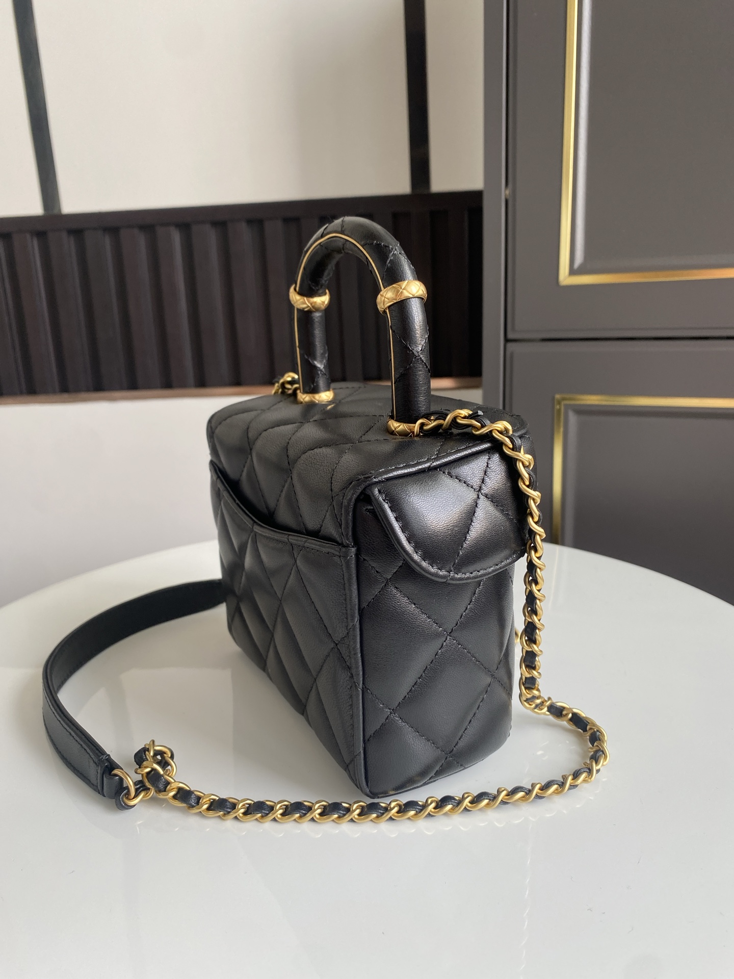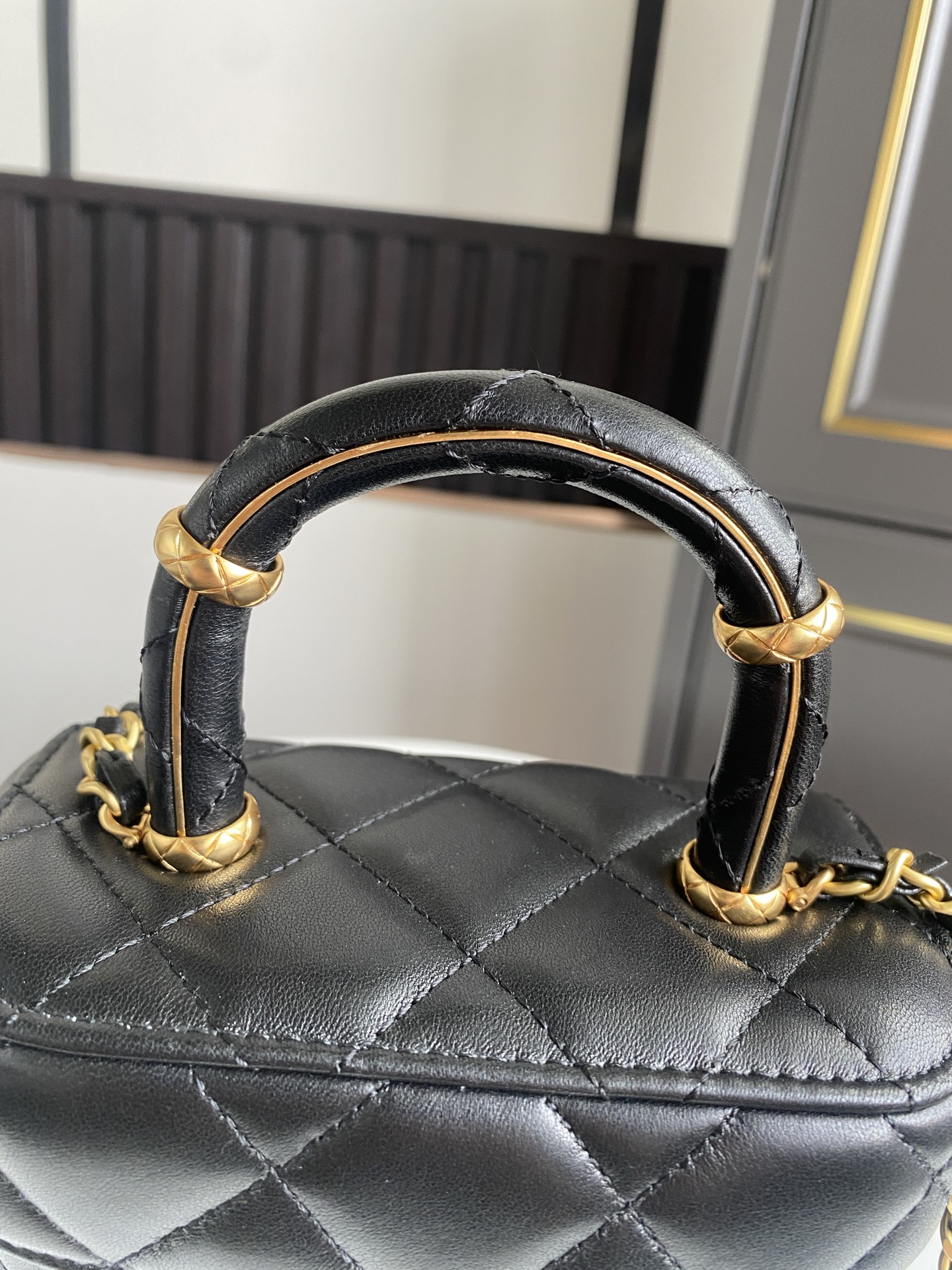 CHANEL Lambskin Quilted Top Handle Mini Vanity Case