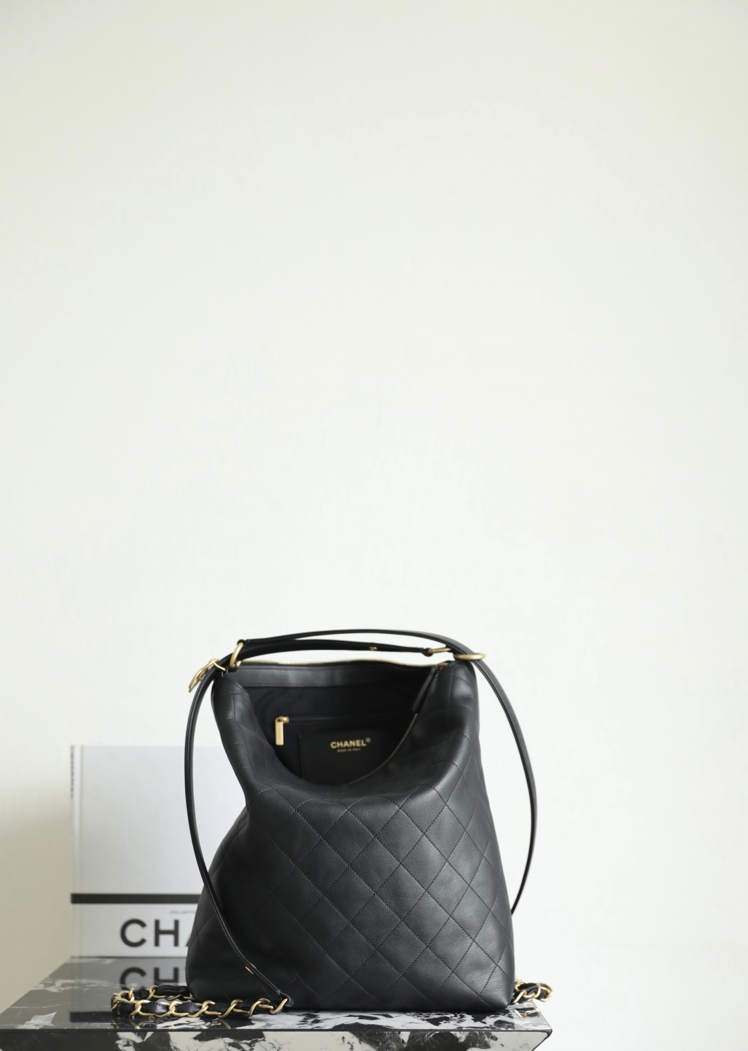 Chanel Large backpack, Calfskin & gold-tone metal, black